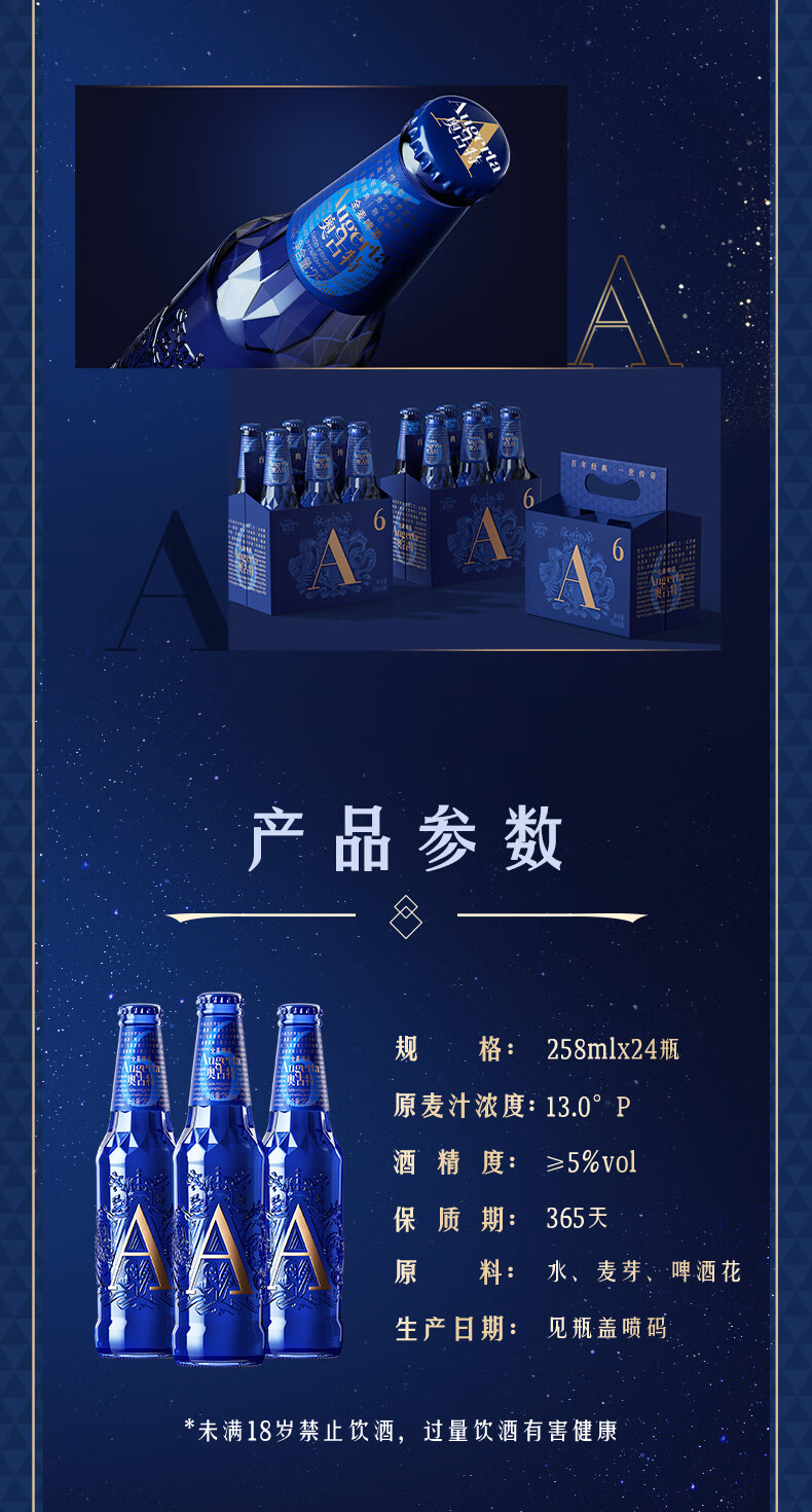 青岛啤酒(TsingTao)奥古特A6 全麦精酿啤酒 258ml*24瓶 整箱装 年货送礼