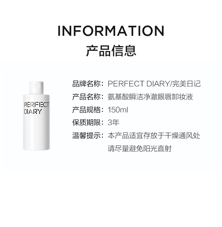 完美日记白胖子氨基酸瞬洁净澈眼唇卸妆液旅行便携150ml新年礼物送女生