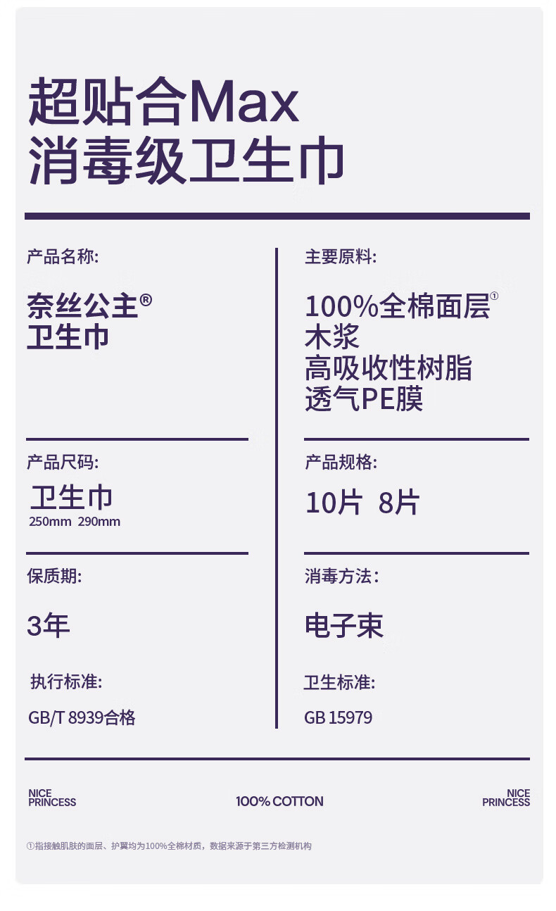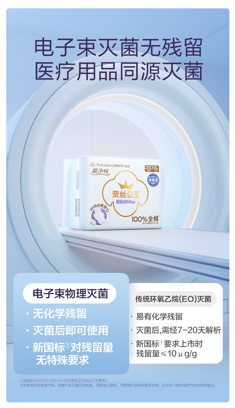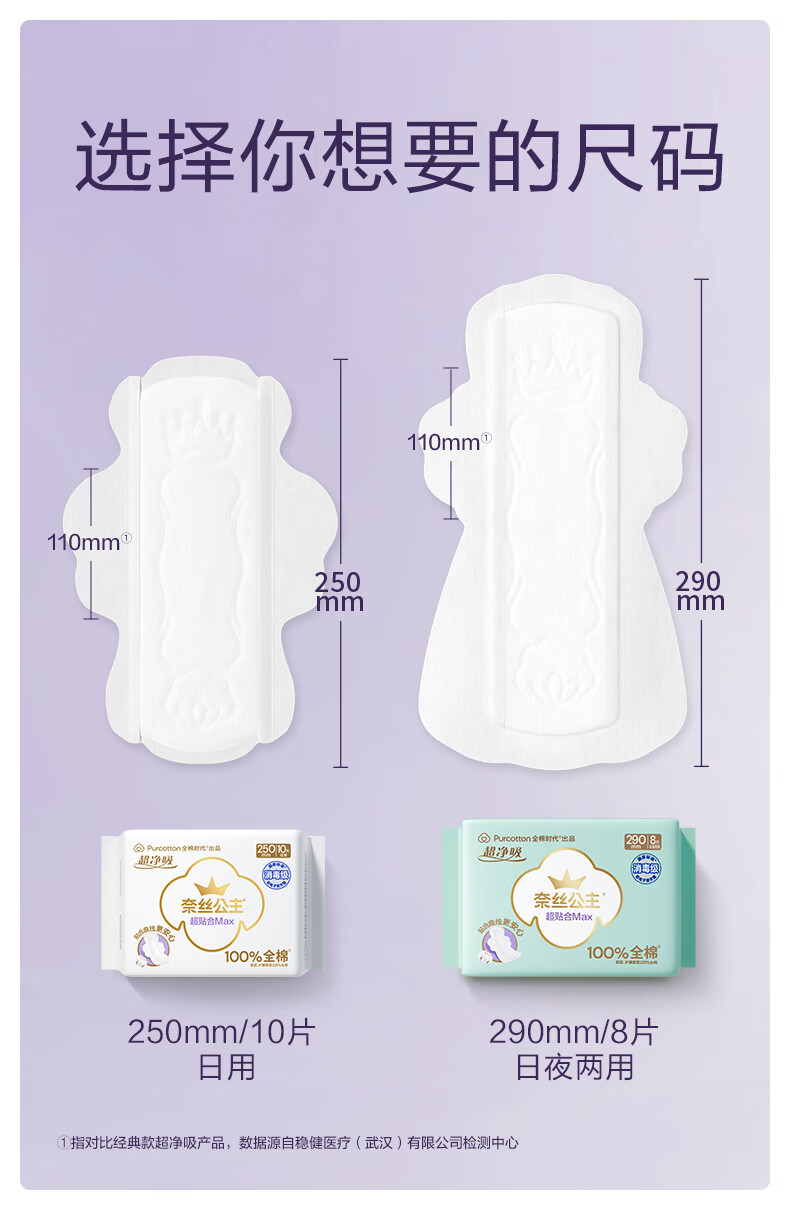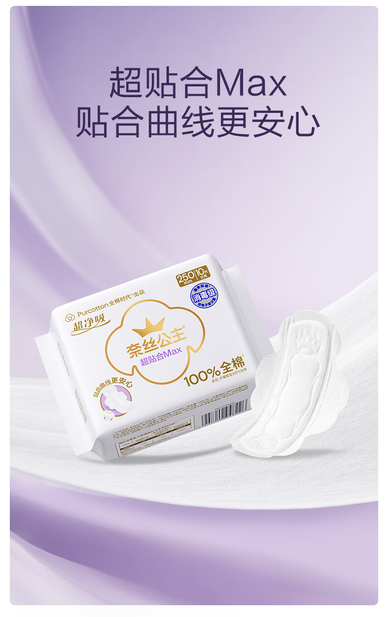 全棉时代奈丝公主纯棉超净吸超贴合MAX消毒级卫生巾290mm*24p京东自营