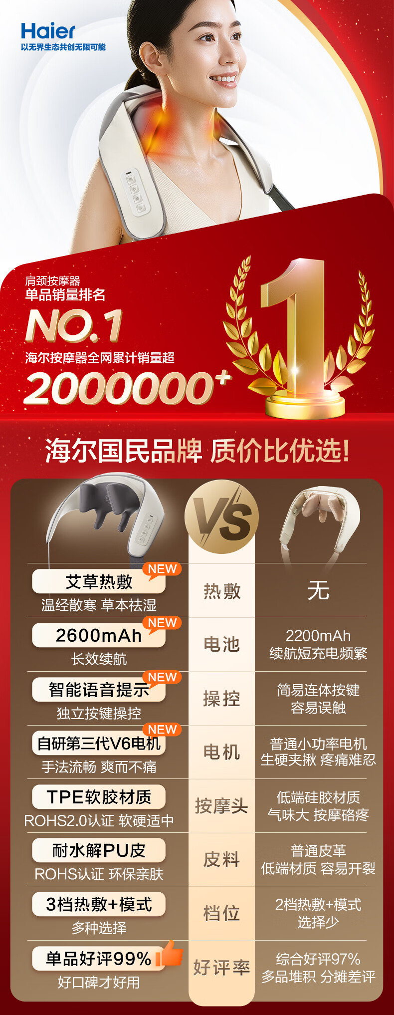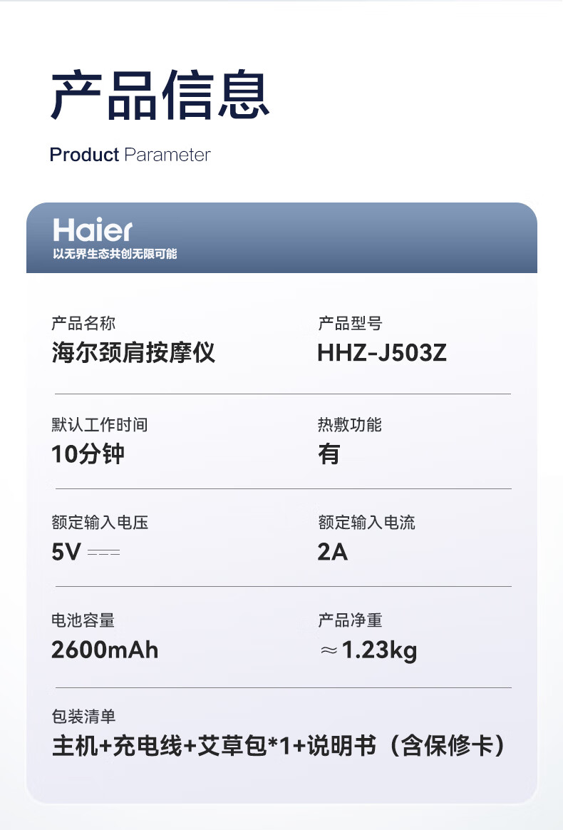 海尔(Haier)颈椎按摩器按摩披肩按摩仪颈椎肩颈斜方肌腰颈部按摩器生日新年礼物实用送爸妈男女朋友HHZ-J503Z