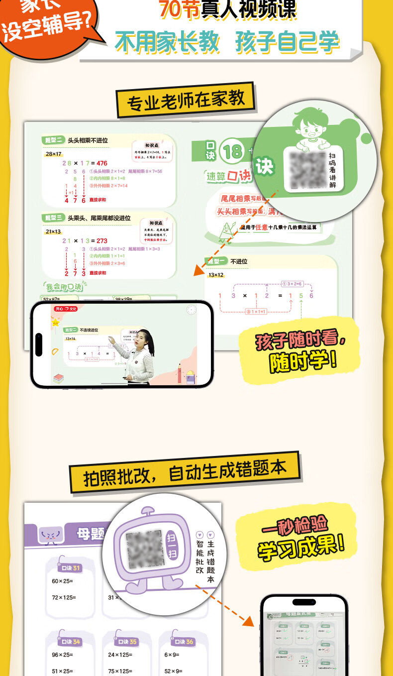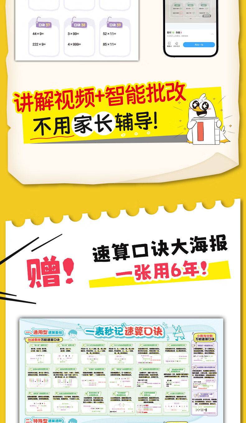 【开心】70个口诀速算练习册小学数学速算技巧一本通必背模板一二三四五六年级小学生数学知识点汇总大全同步教材全国通用口诀图解专项训练书 开心口诀速算练习册(赠口诀海报+视频课)