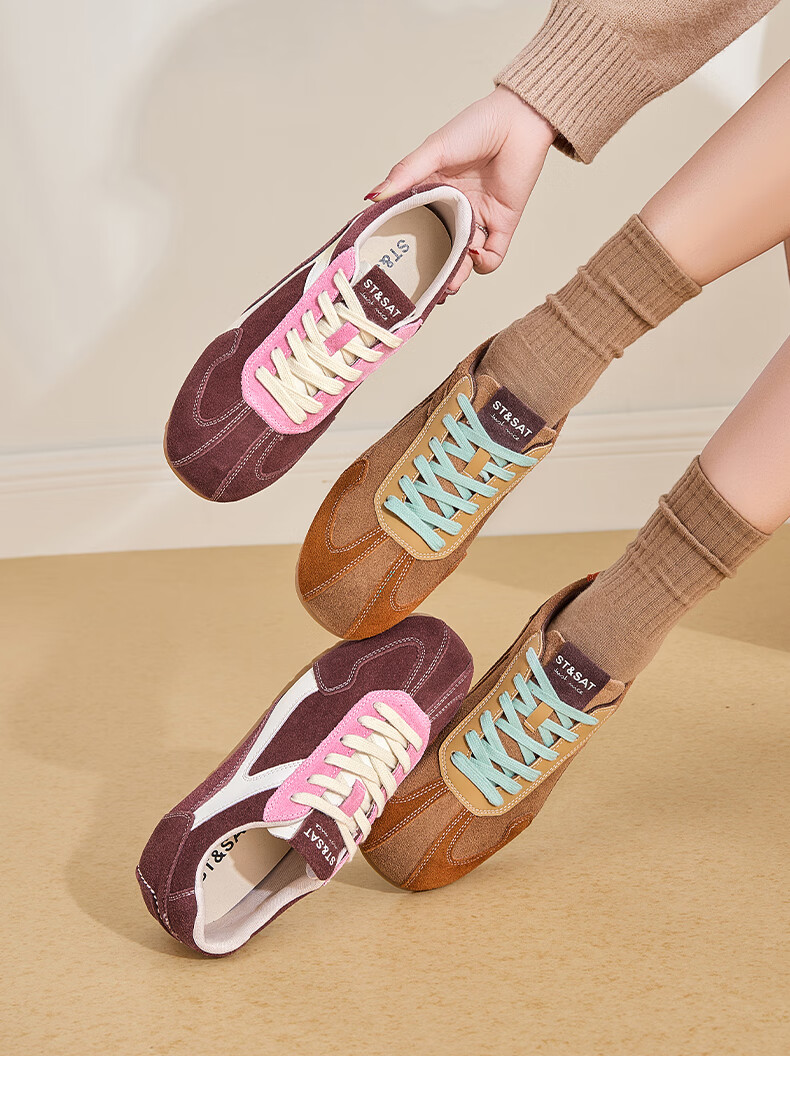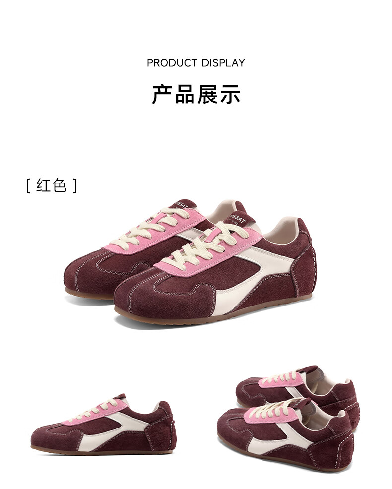 星期六(St&Sat)星期六红色德训鞋女鞋春秋款2024新款美式复古百搭chic鞋子运动鞋 红色 37