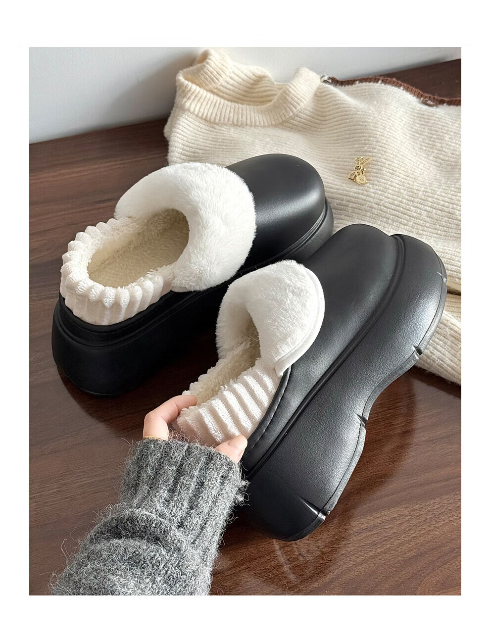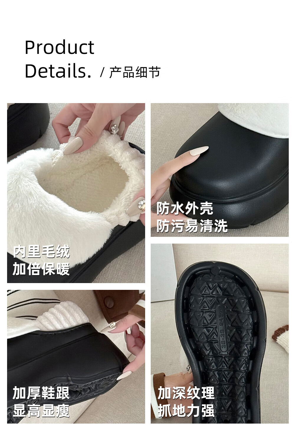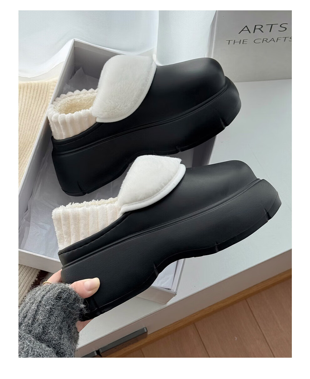 FZT防水厚底棉拖鞋女秋冬季新款室内居家加绒防滑全包保暖棉鞋女外穿 黑色 40-41 标准码