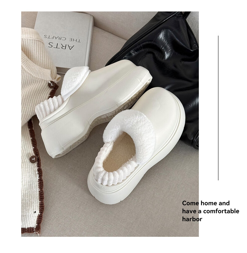 朴西女士防水棉拖鞋秋冬季居家室内保暖可拆卸毛绒厚底增高男士拖鞋 树莓红 36-37