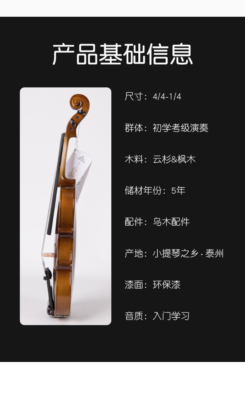 莱斯曼德(Angel violin)小提琴实木考级专业儿童入门初学手工意大利工艺成人L003A4/4