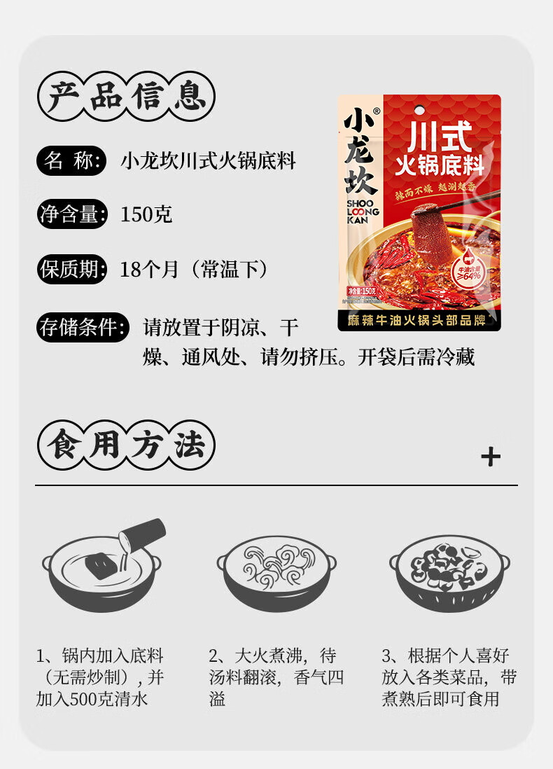 小龙坎川式火锅底料150g 牛油麻辣四川特产老火锅