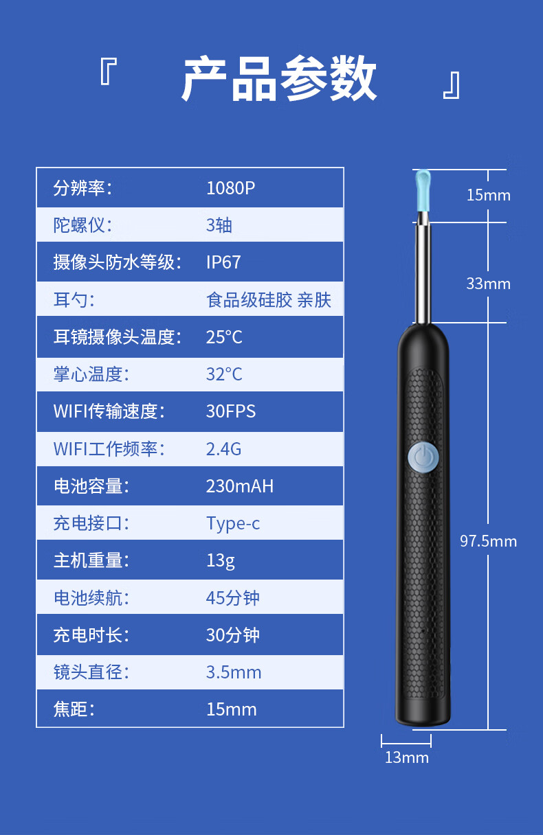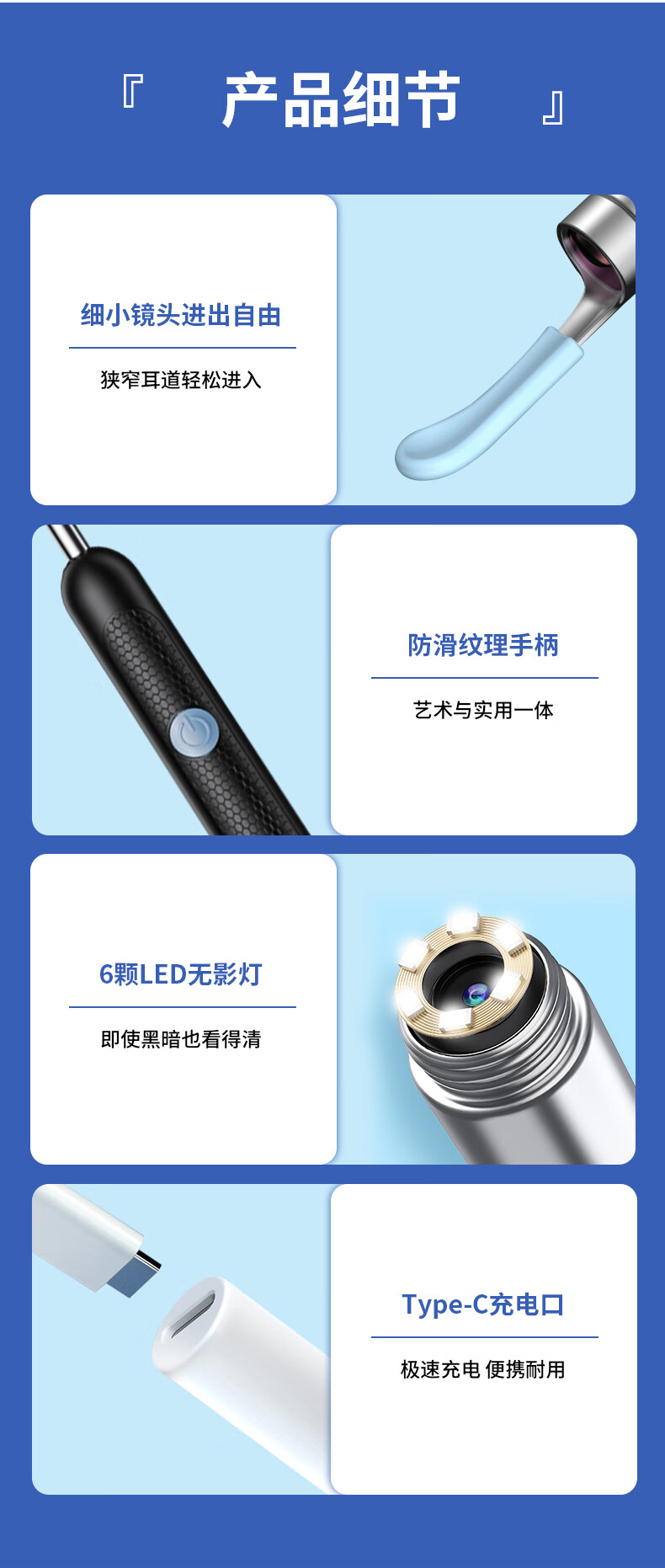 佩奇妈妈(PEIQIMAMA)智能可视耳勺高清挖耳勺神器充电款发光掏耳勺采耳可视挖耳朵套装