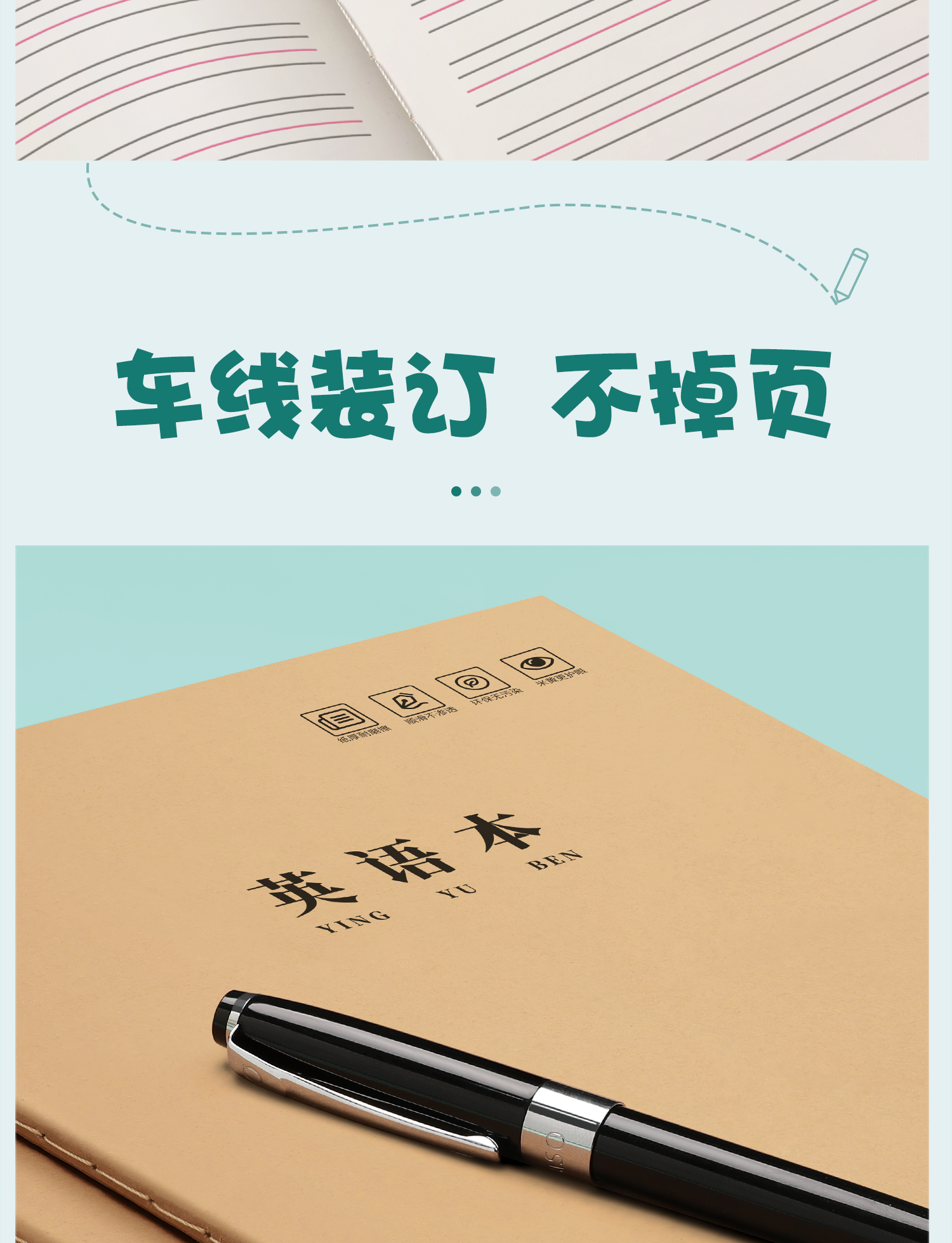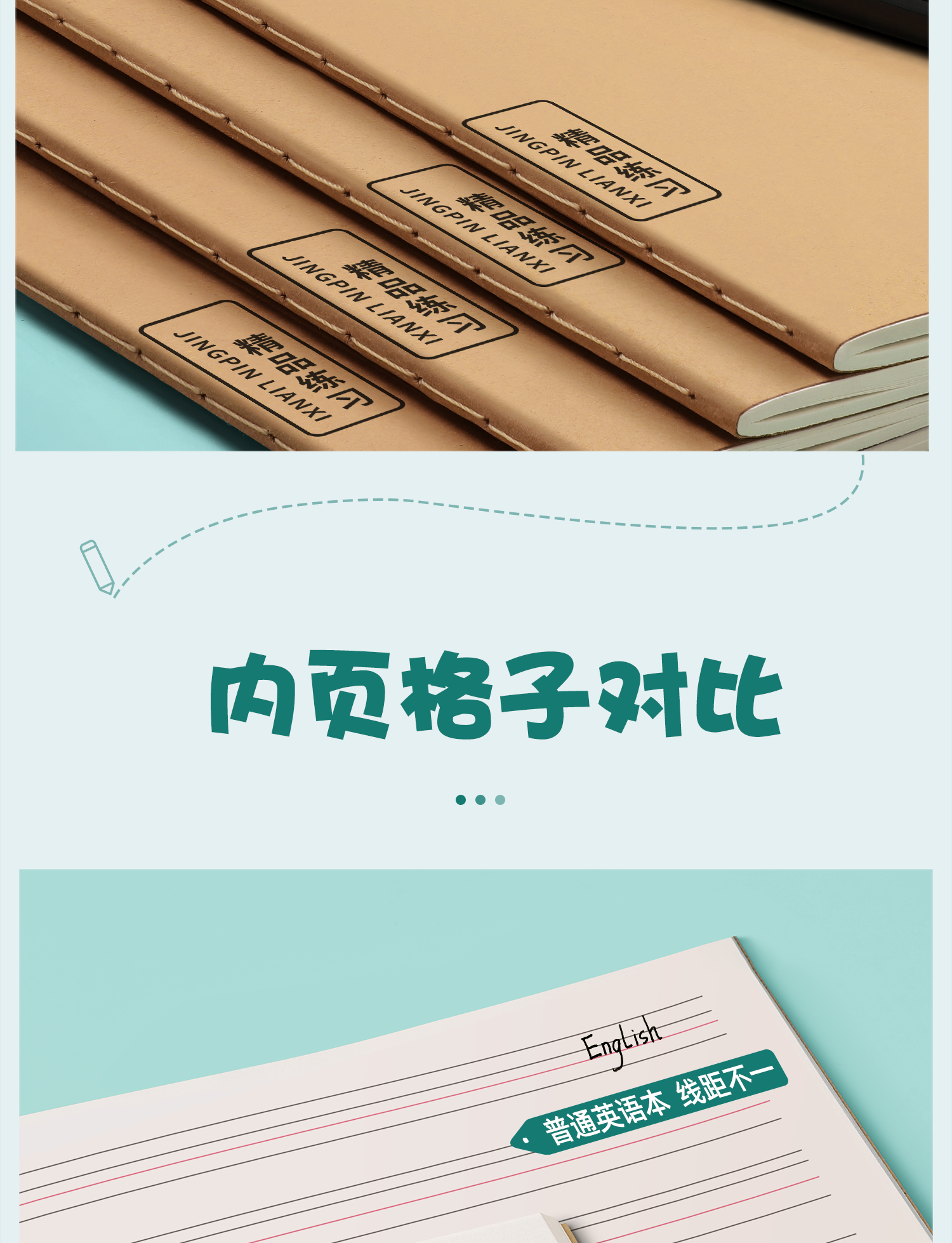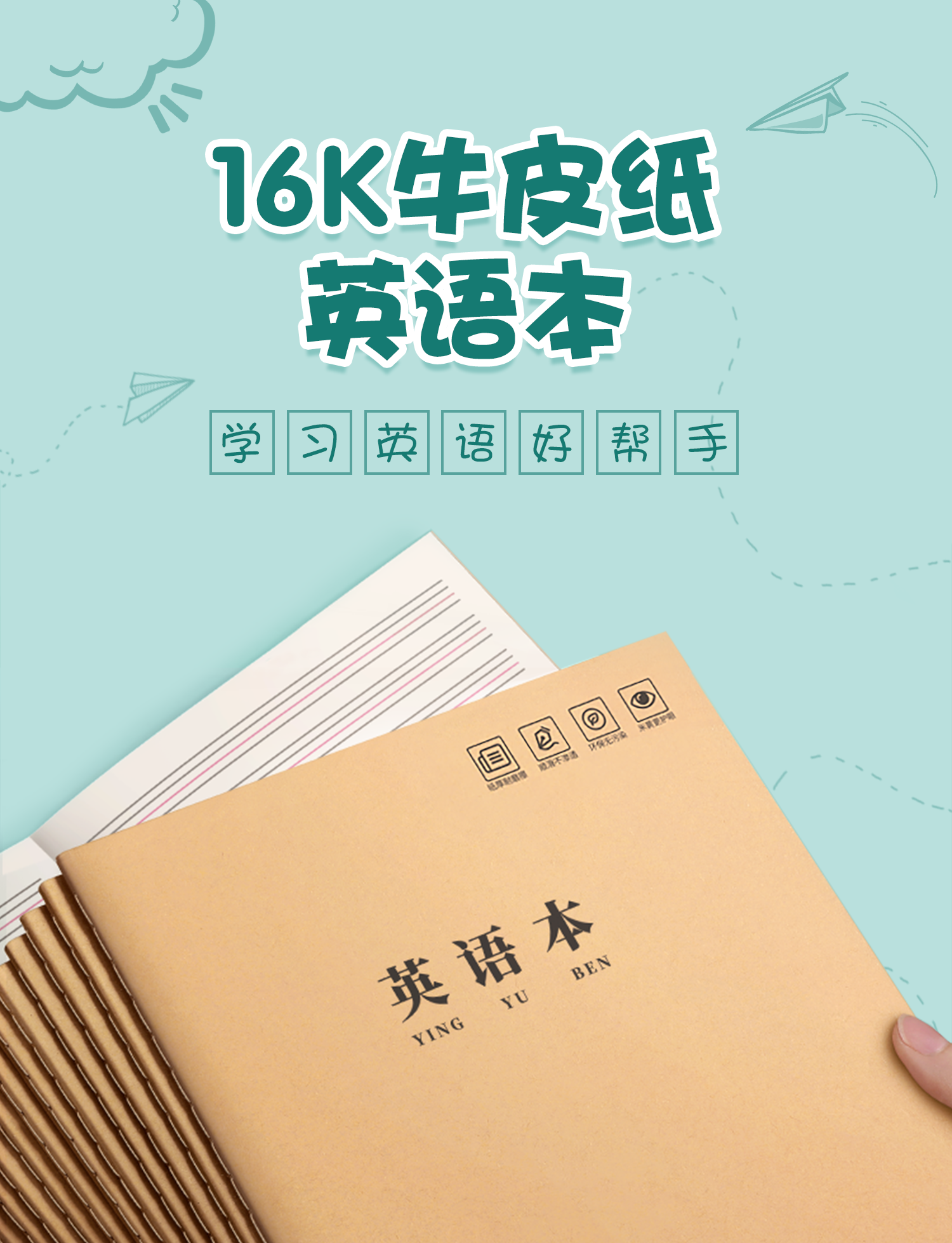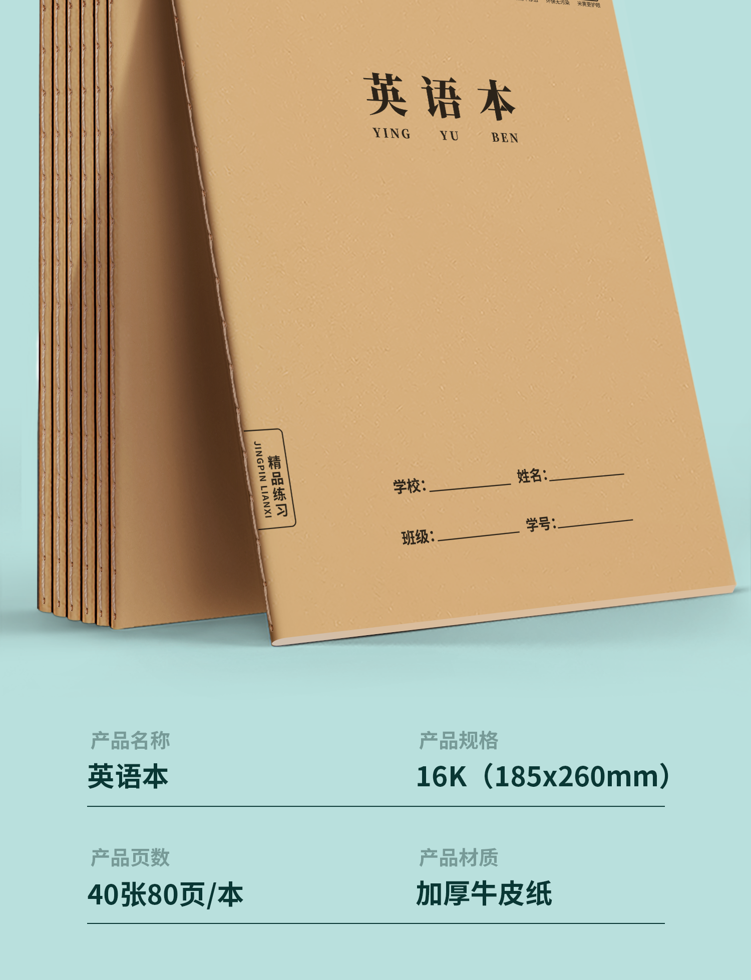 汉状元英语本16k小学生作业本3-6年级初中高中软抄缝线笔记本子全套牛皮纸加厚练习本 【5本装】英语本