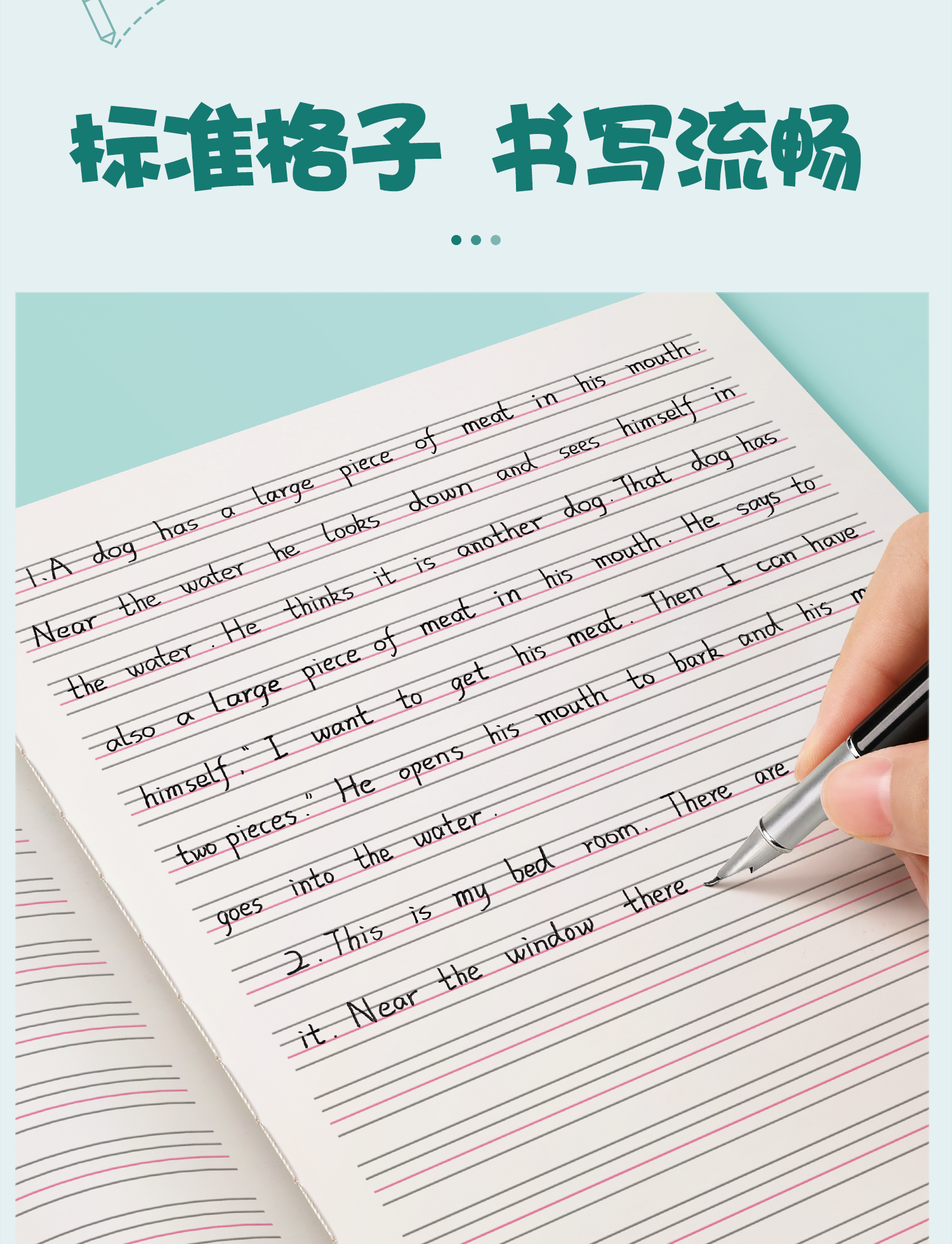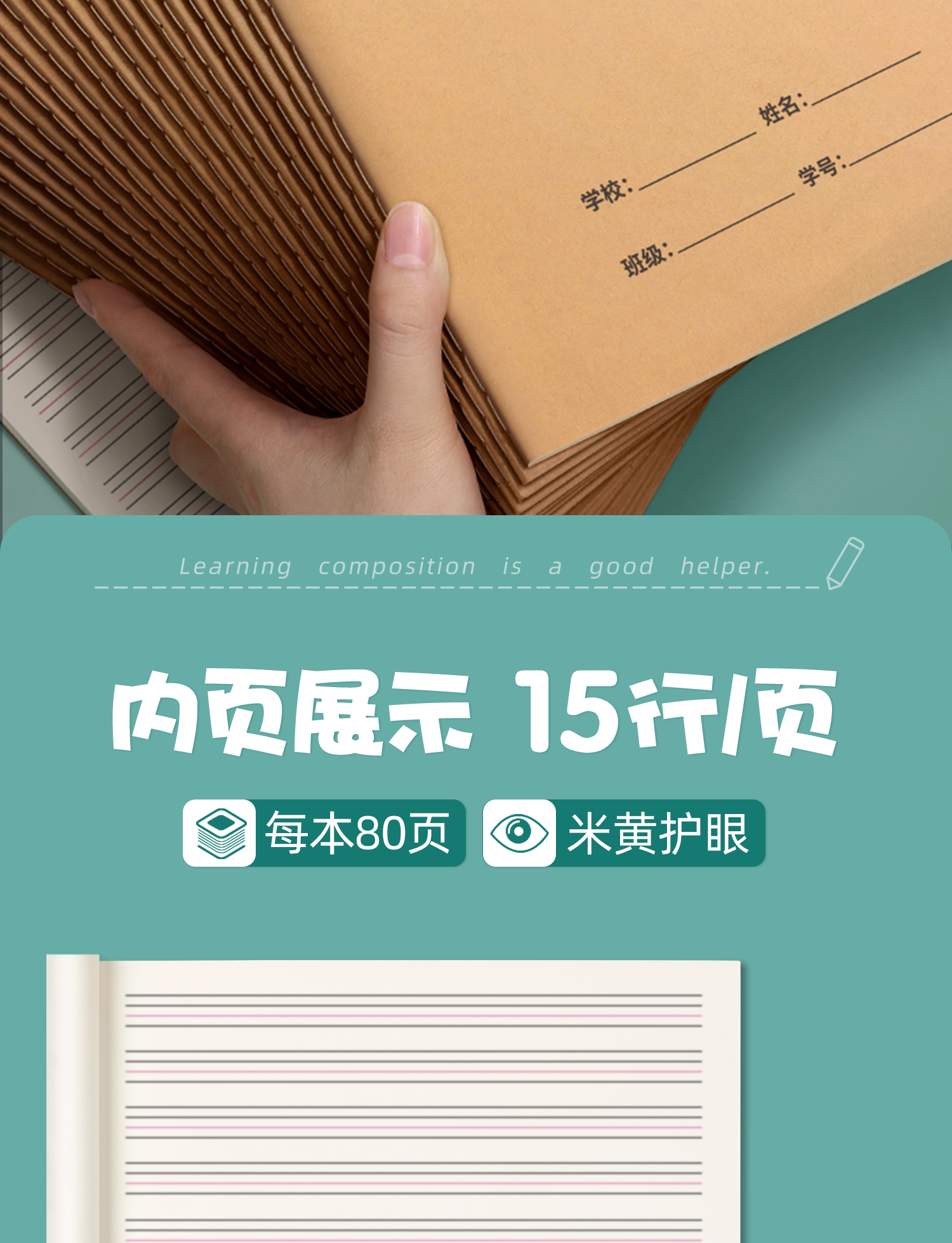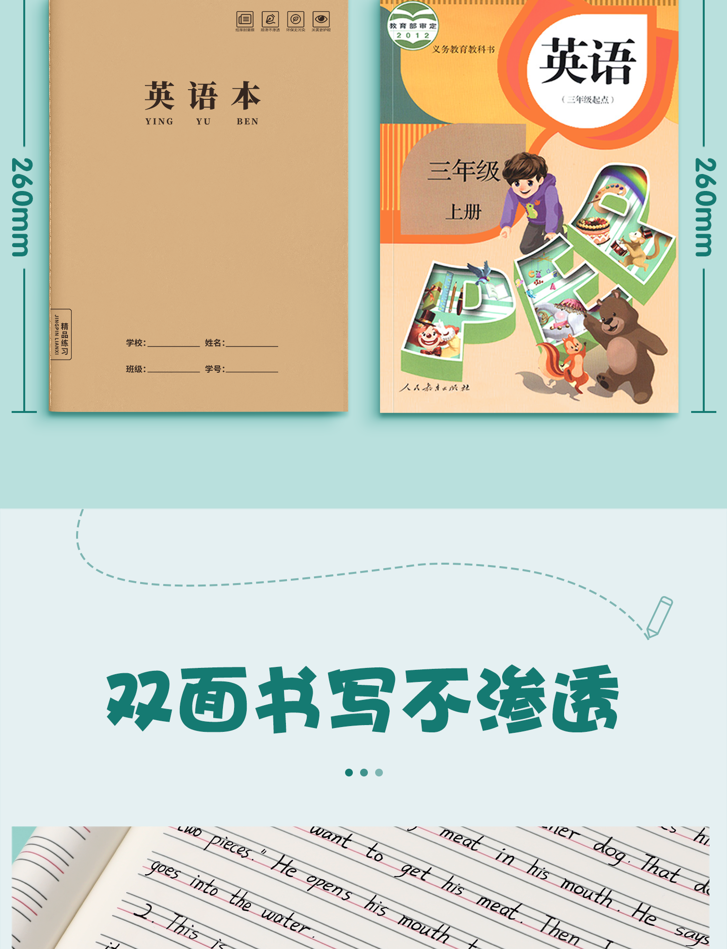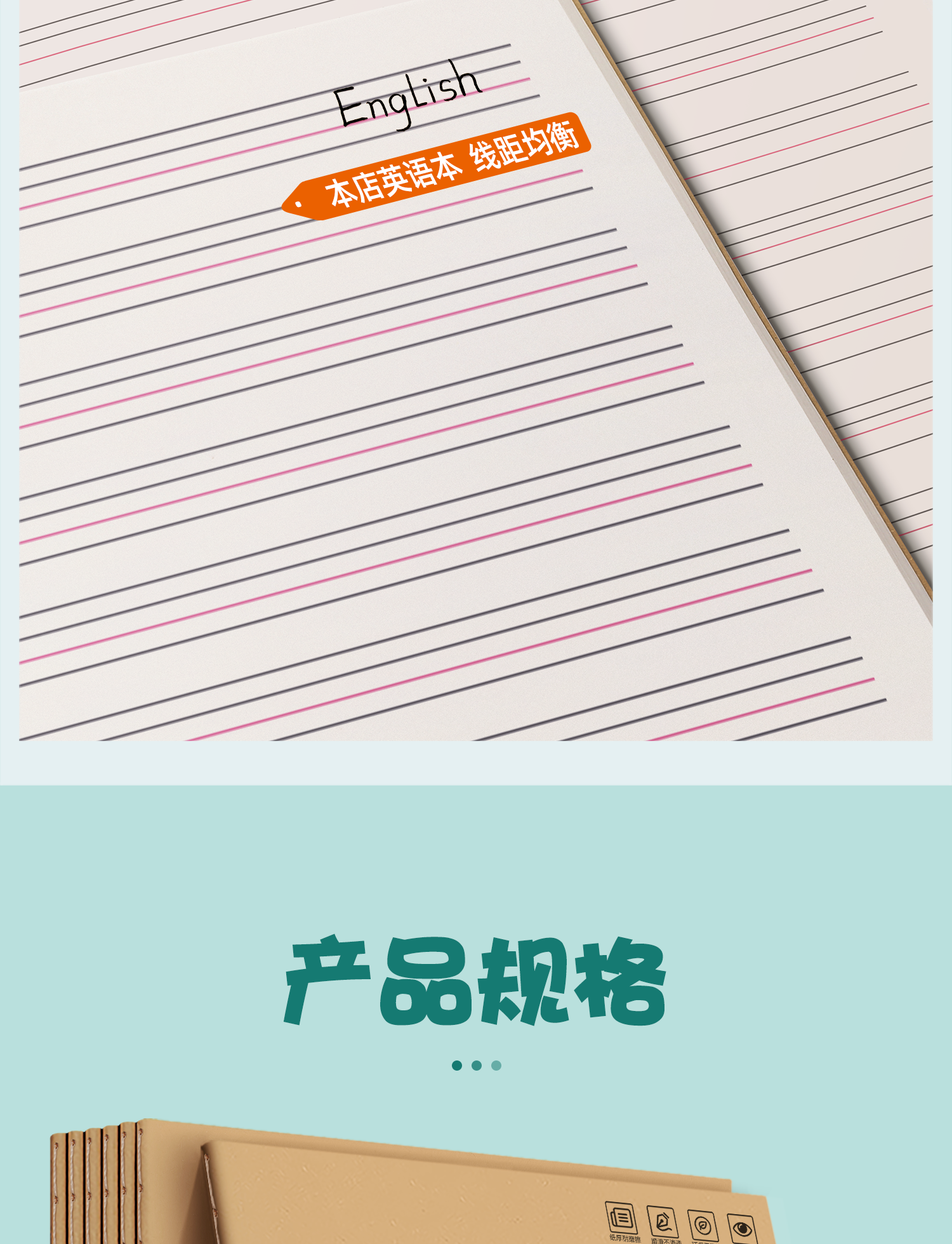 汉状元英语本16k小学生作业本3-6年级初中高中软抄缝线笔记本子全套牛皮纸加厚练习本 【5本装】英语本