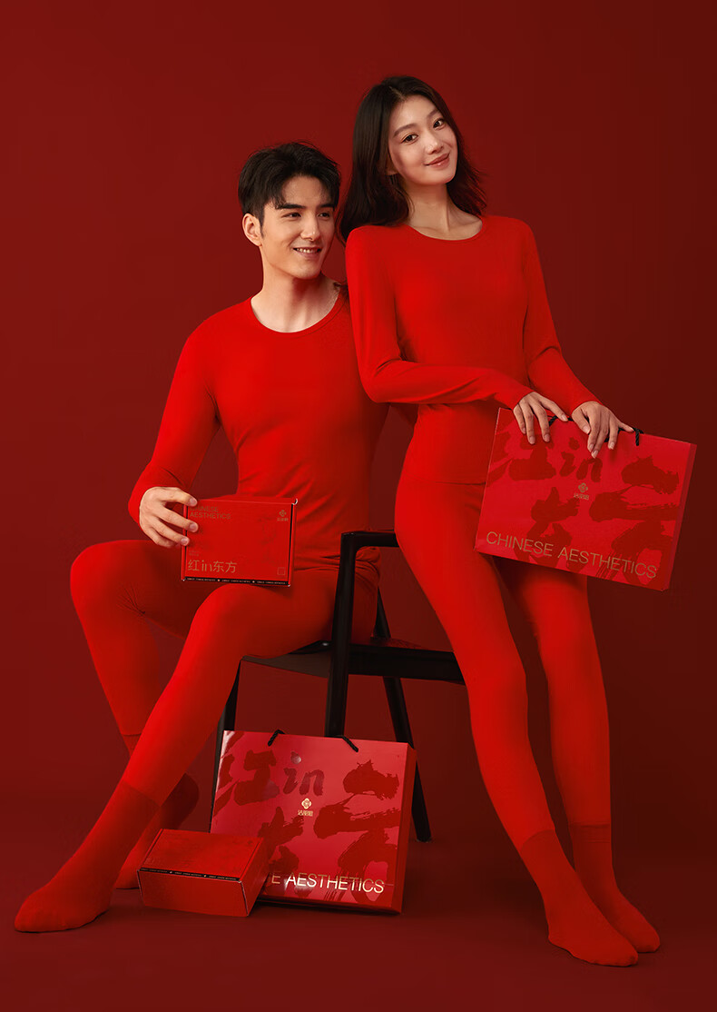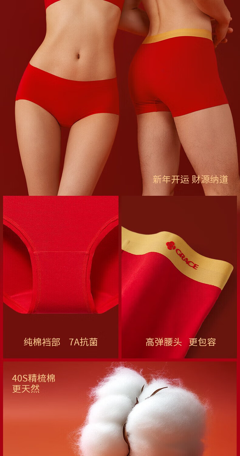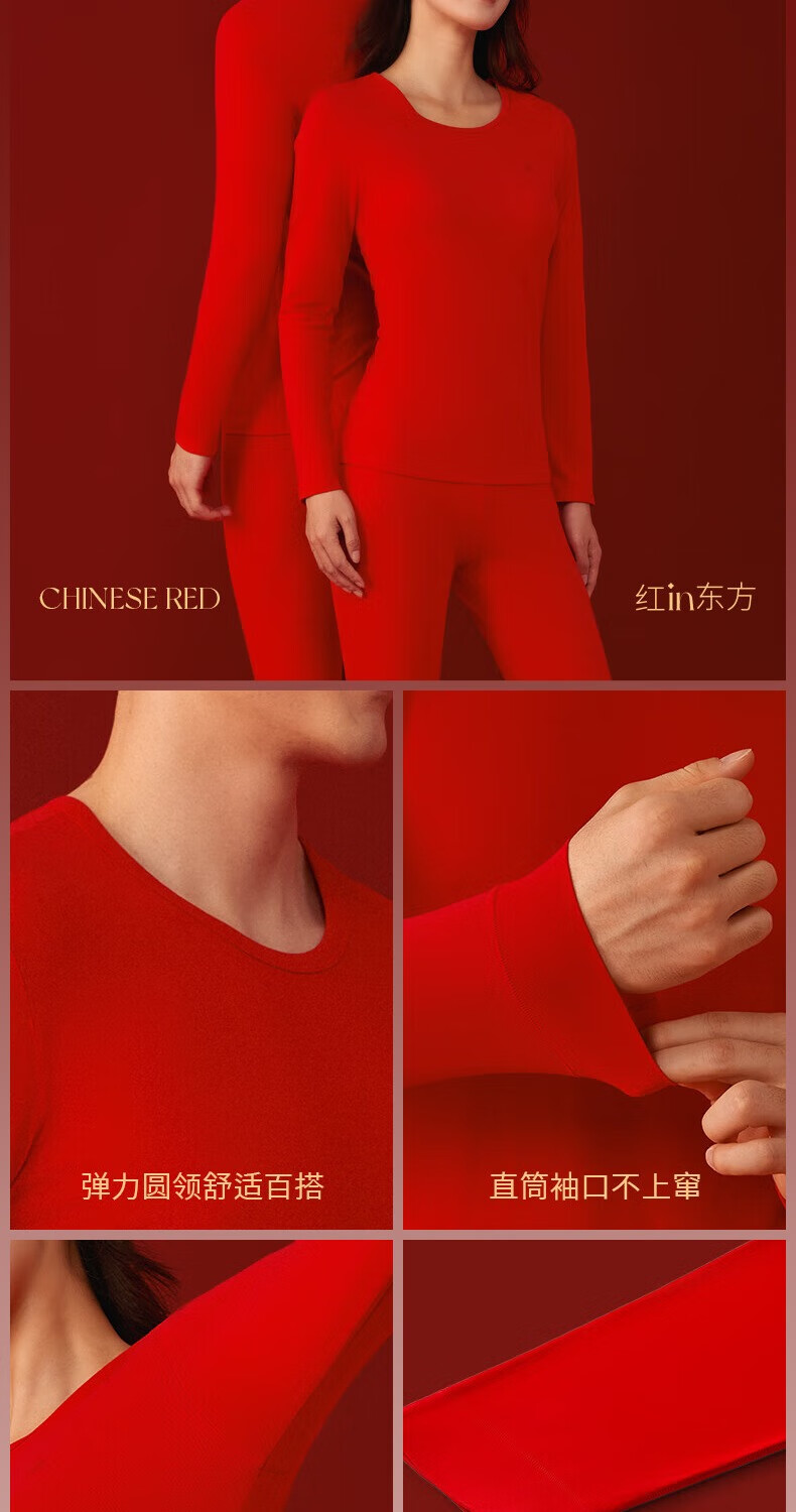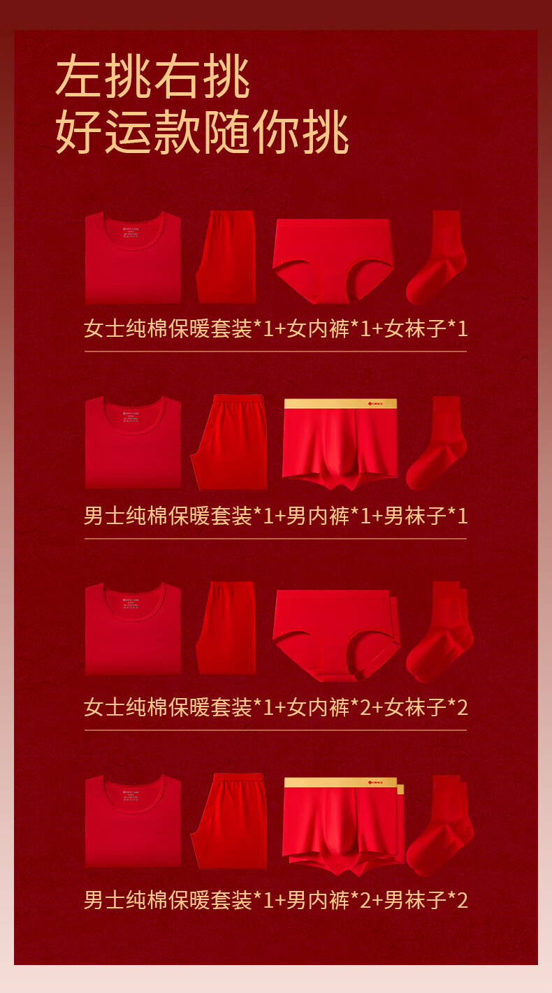 洁丽雅本命年大红色结婚男女士保暖内衣内衣内裤袜子纯棉套装礼盒送礼 【女士】纯棉保暖套装 +内裤1条+袜子1双 L