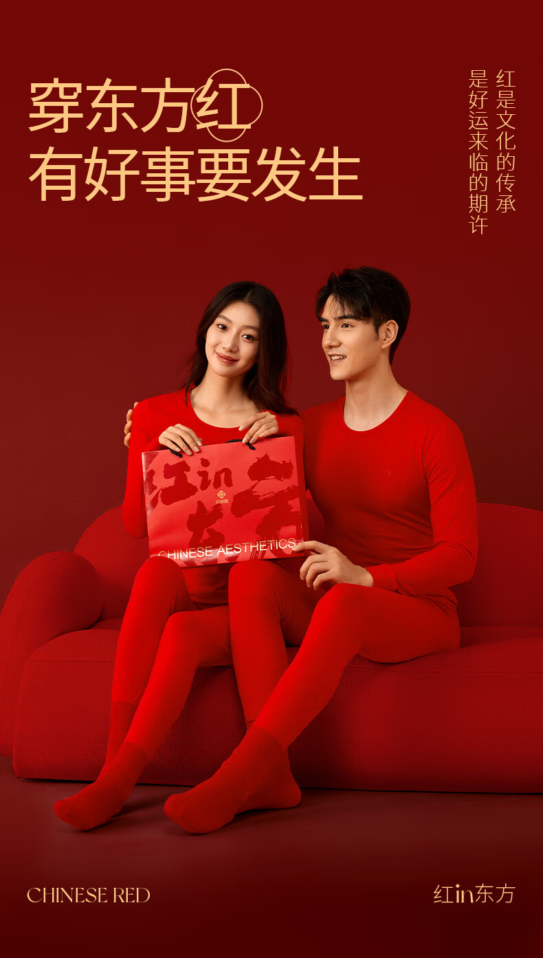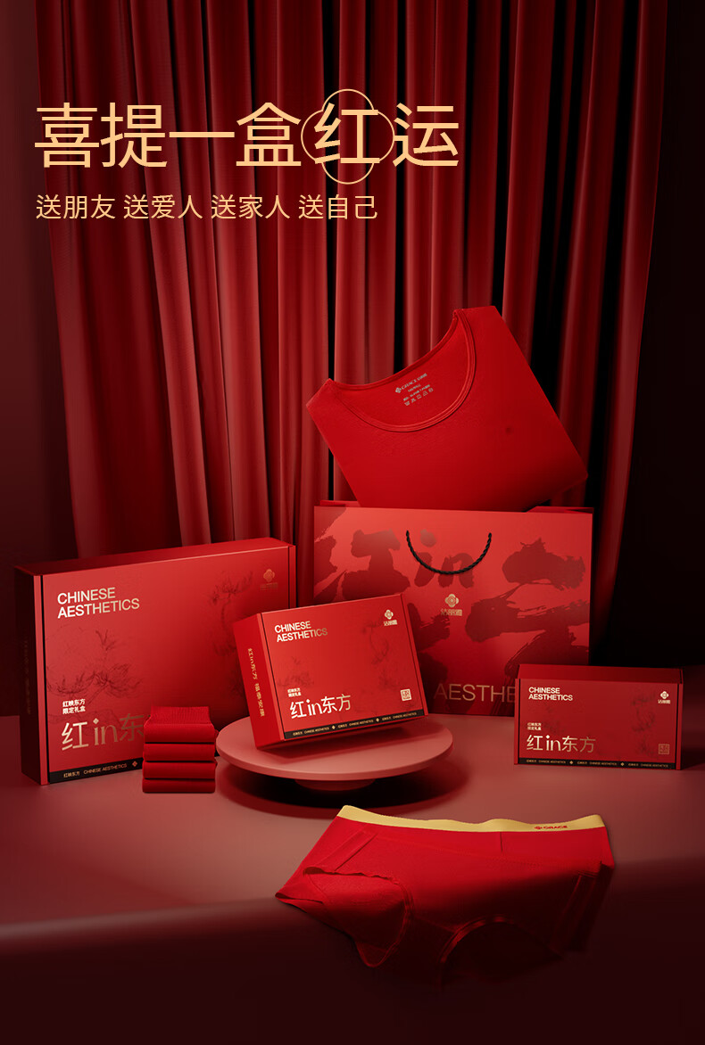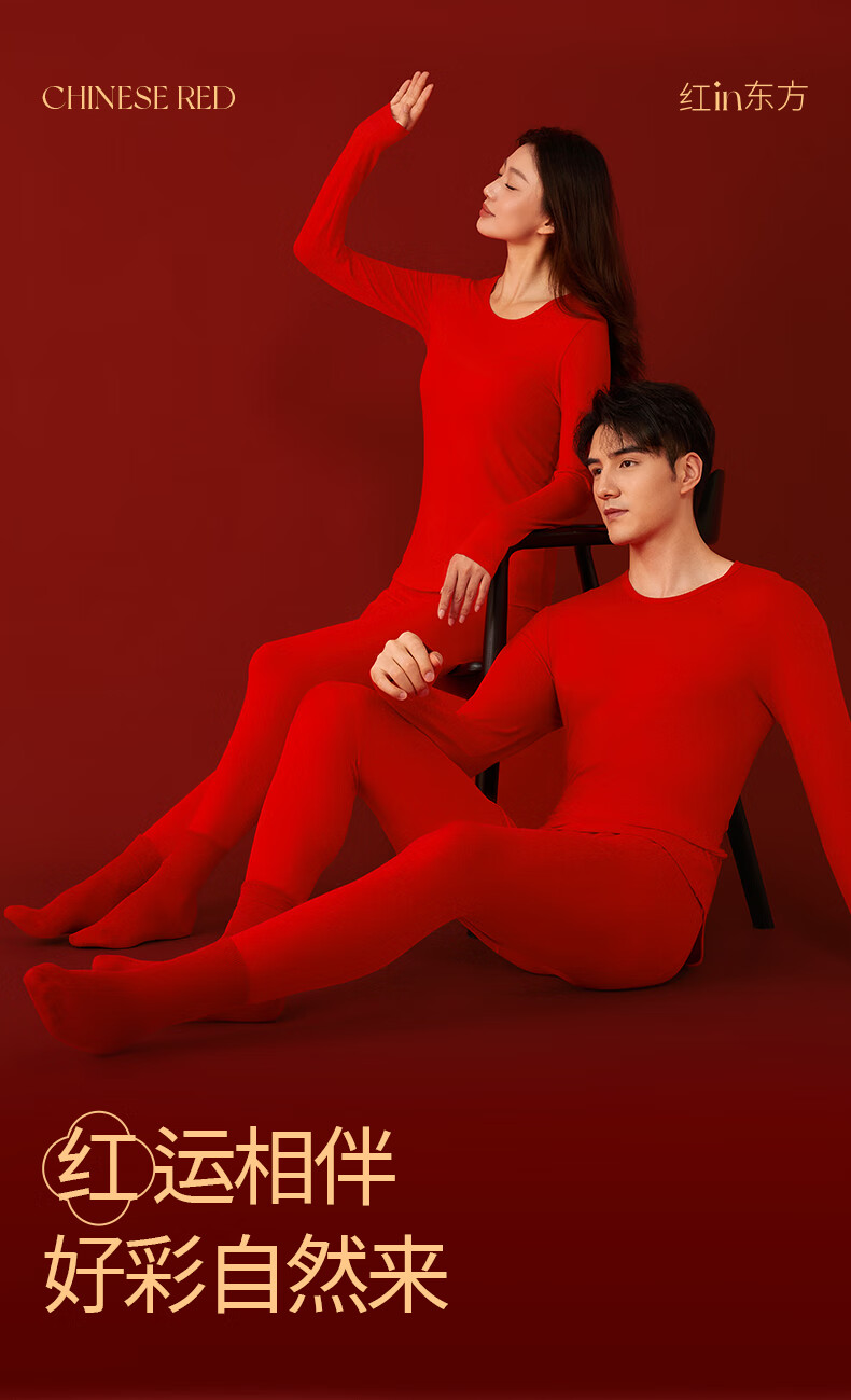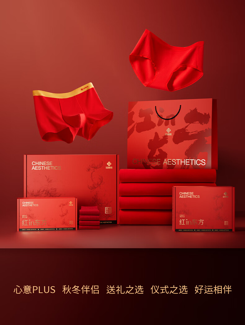洁丽雅本命年大红色结婚男女士保暖内衣内衣内裤袜子纯棉套装礼盒送礼 【女士】纯棉保暖套装 +内裤1条+袜子1双 L