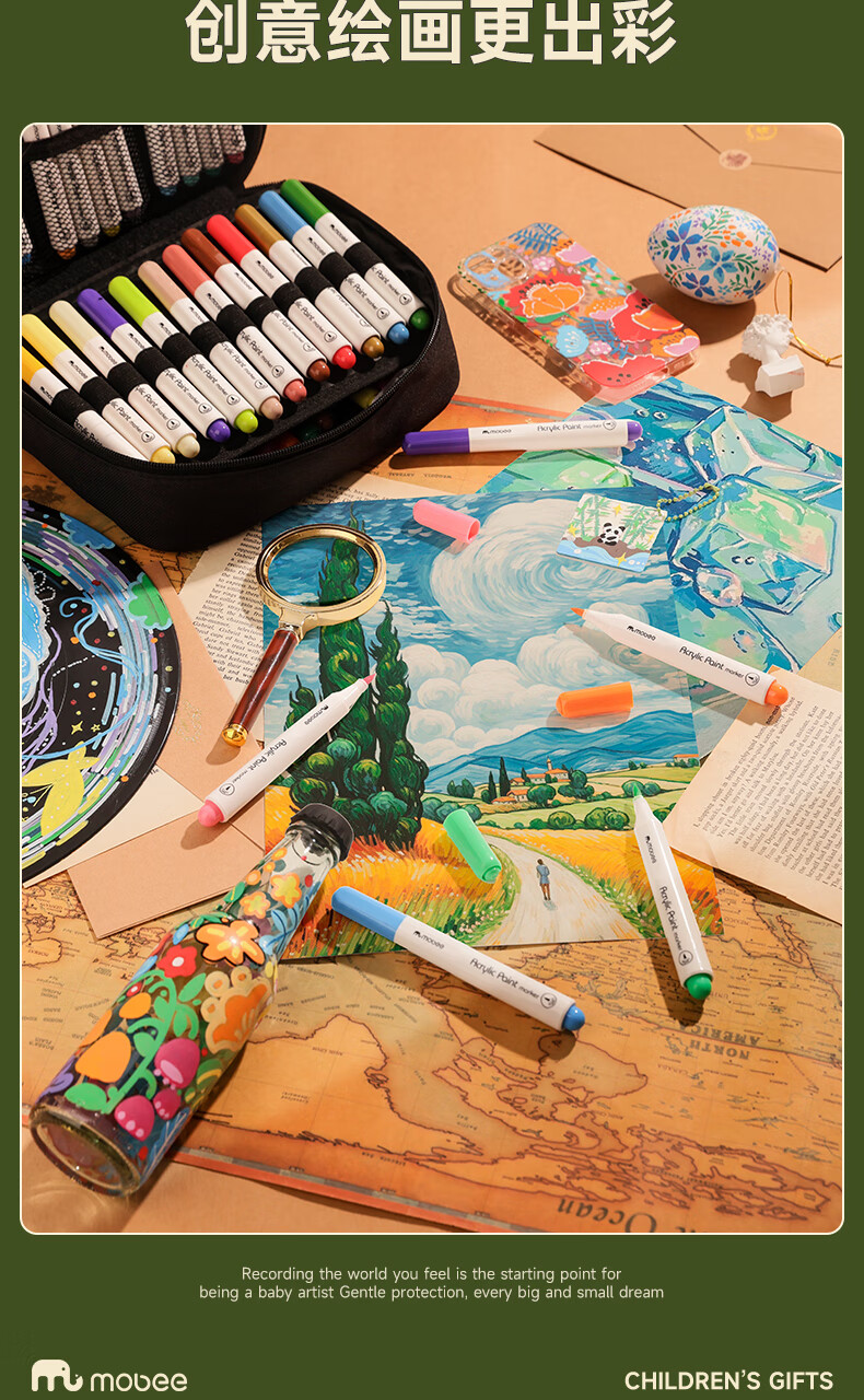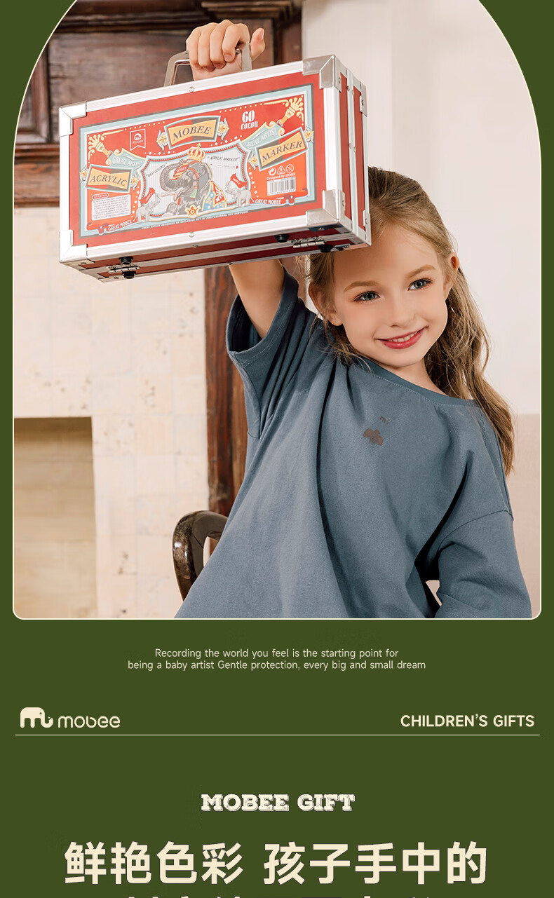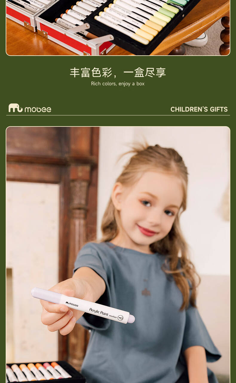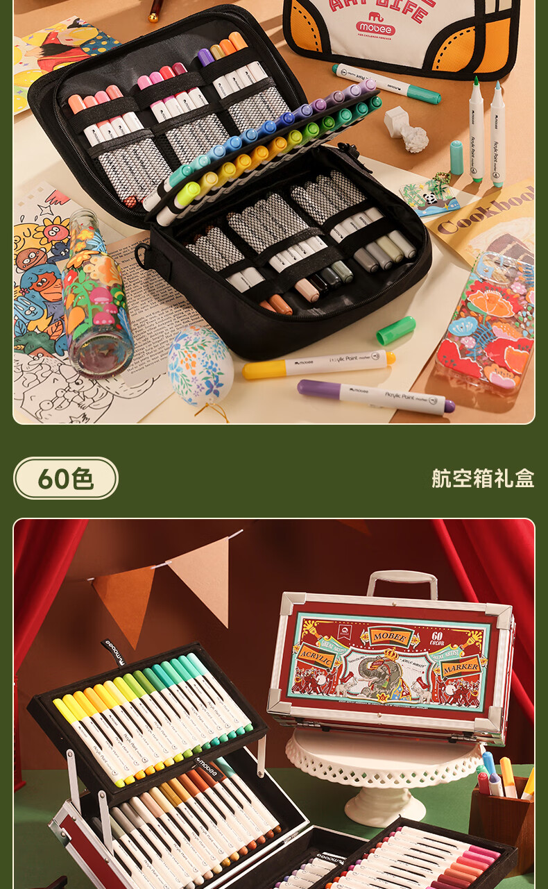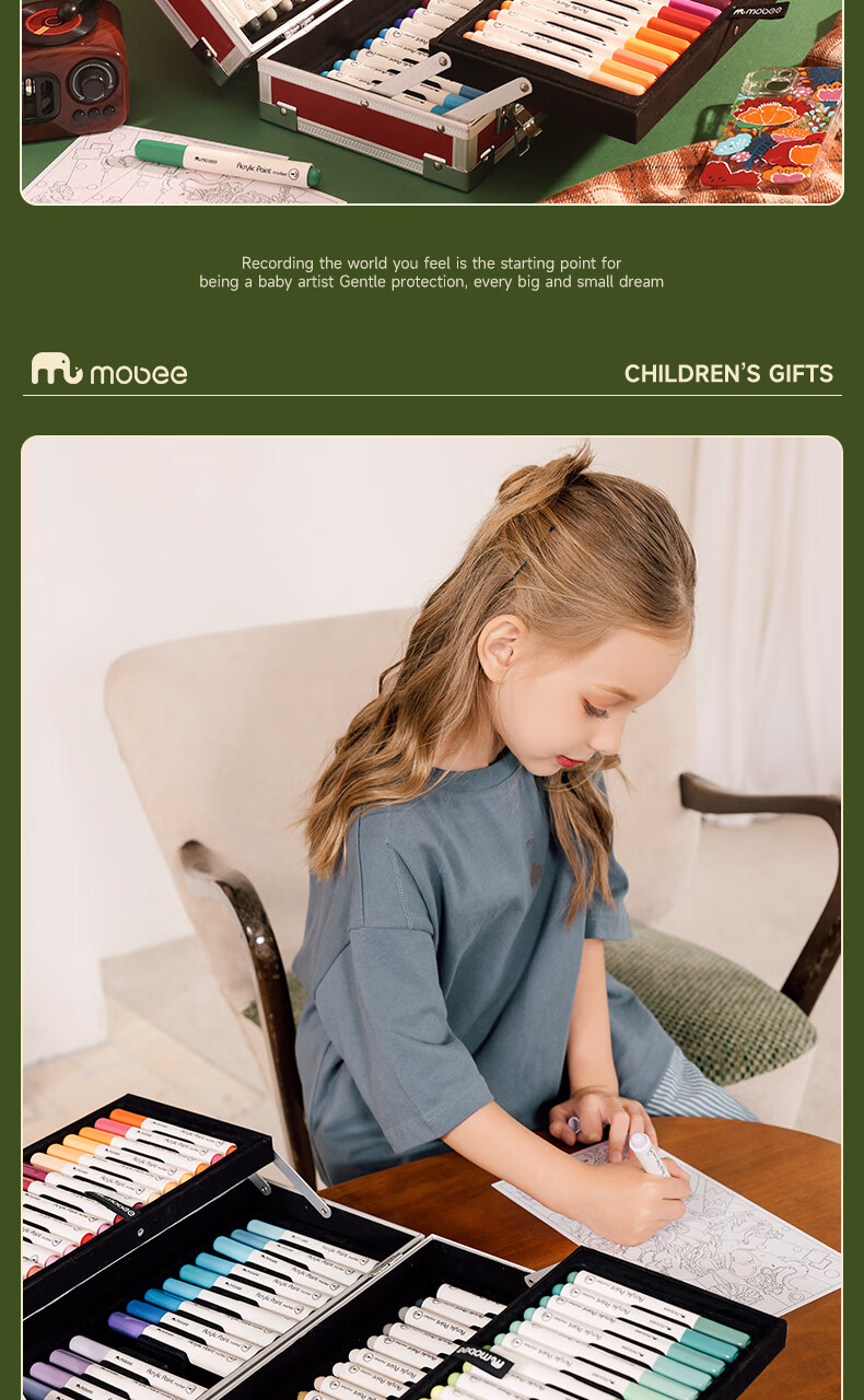 mobee我的第一个画笔礼箱 儿童丙烯水彩笔画笔绘画套装儿童生日礼盒节日礼物马年新年货安全无毒 来福款【60色】丙烯笔礼箱 高覆盖率 多材质可画