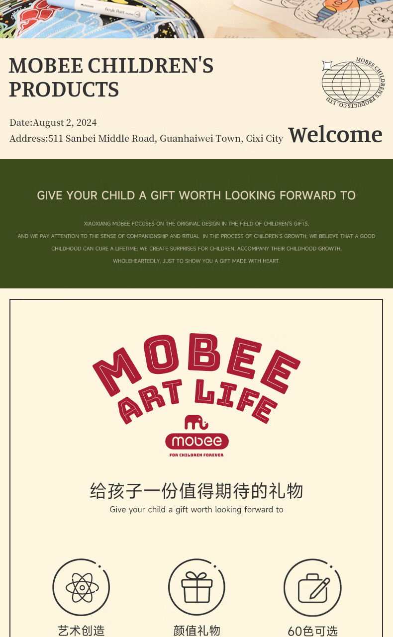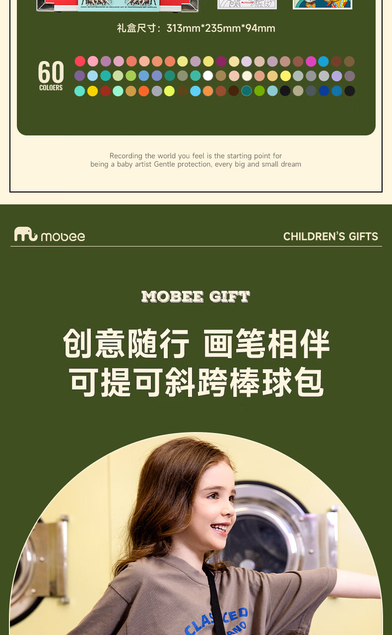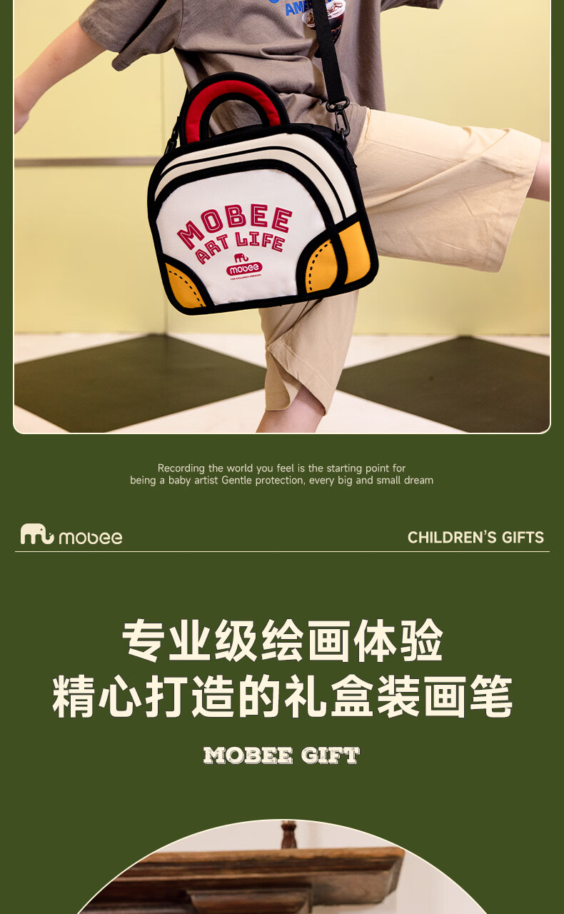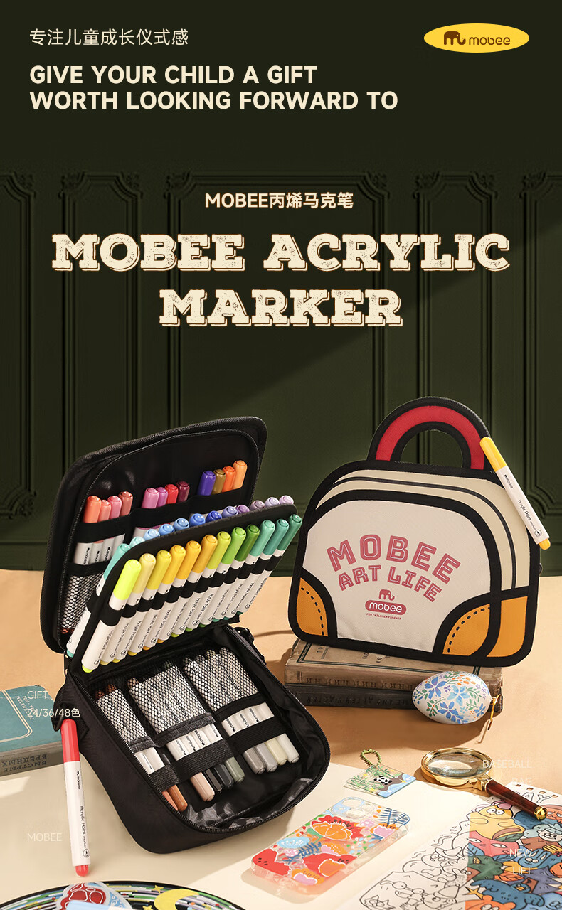 mobee我的第一个画笔礼箱 儿童丙烯水彩笔画笔绘画套装儿童生日礼盒节日礼物马年新年货安全无毒 来福款【60色】丙烯笔礼箱 高覆盖率 多材质可画