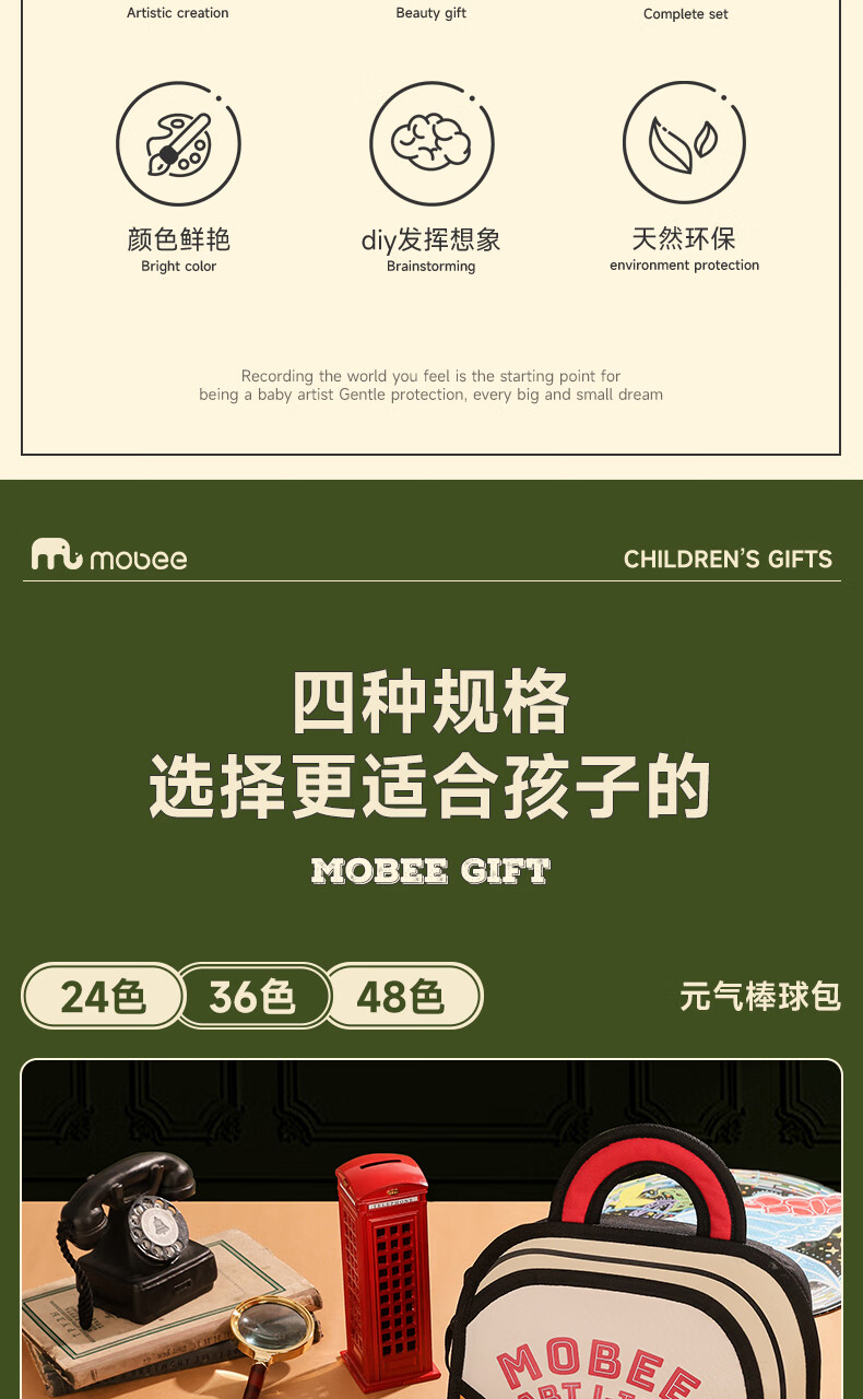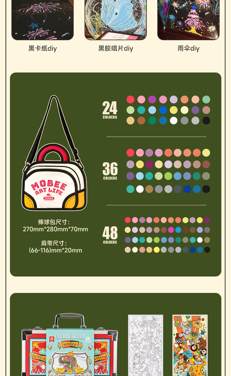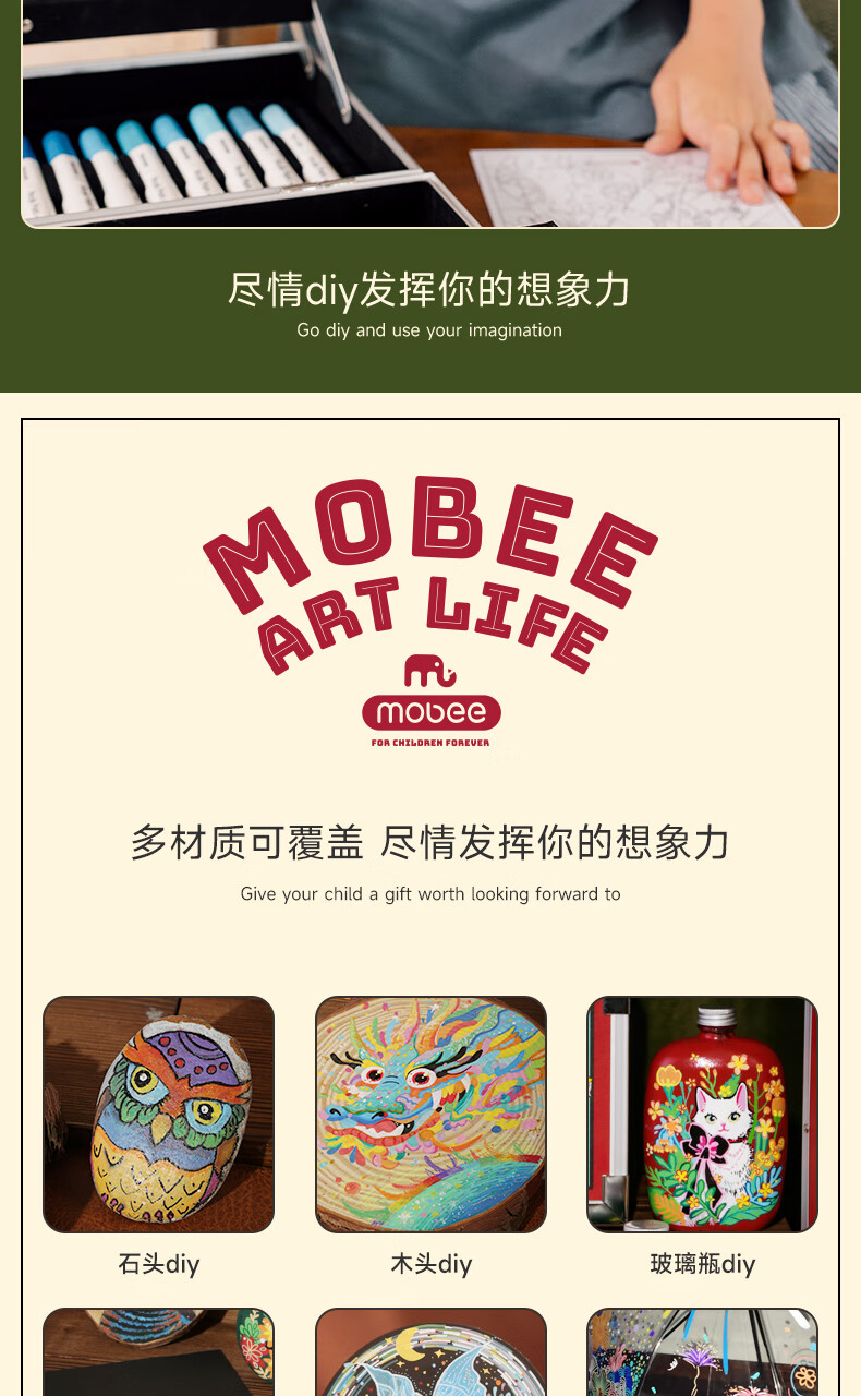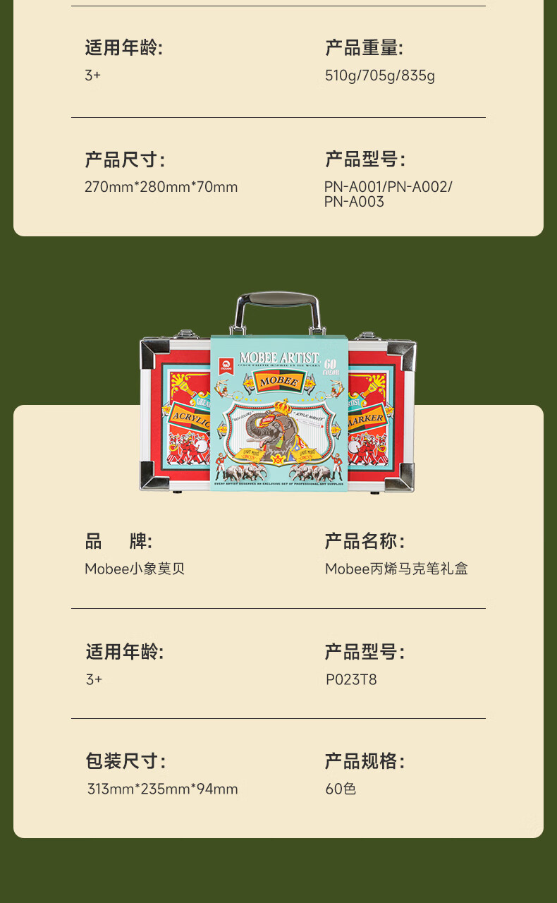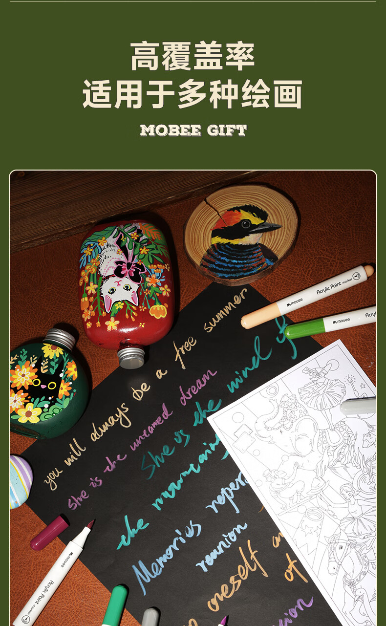 mobee我的第一个画笔礼箱 儿童丙烯水彩笔画笔绘画套装儿童生日礼盒节日礼物马年新年货安全无毒 来福款【60色】丙烯笔礼箱 高覆盖率 多材质可画