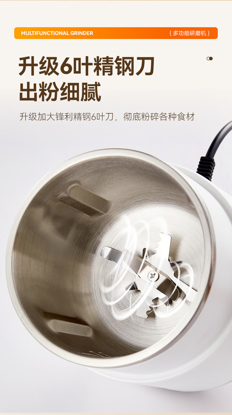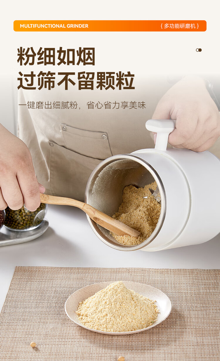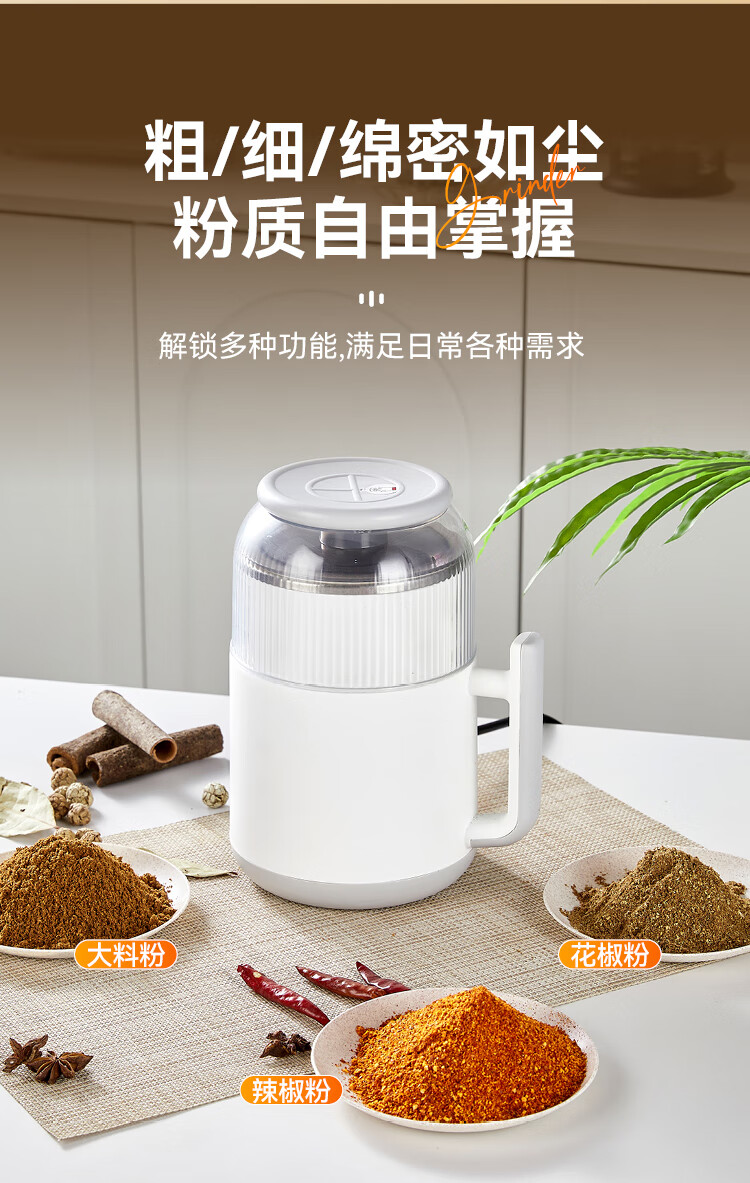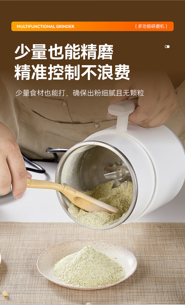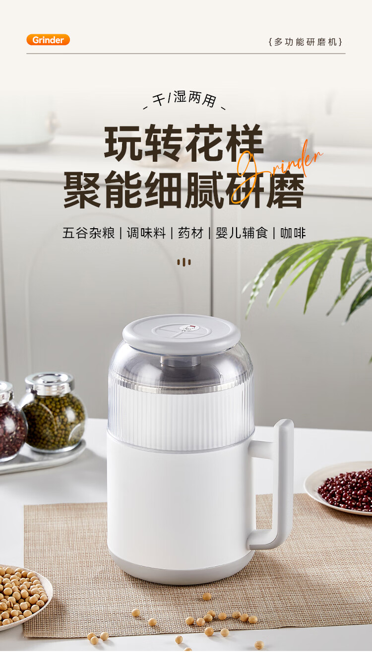 SPOUNR正品苏泊磨粉机超细打粉机小型电动干湿两用五谷杂粮研磨机料理机 珍珠白(一套备用刀)+赠品(可打豆类/药材)干湿两用
