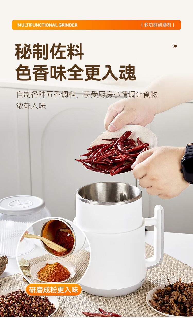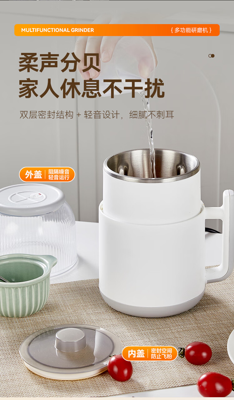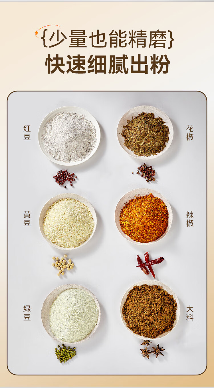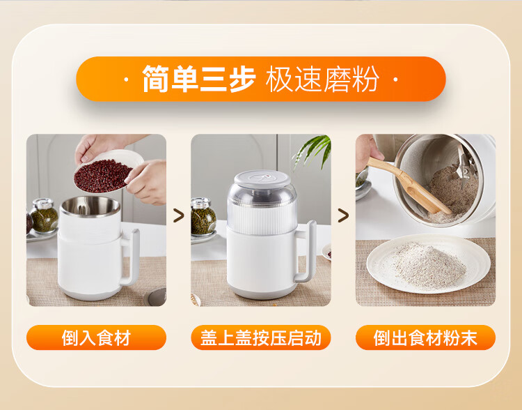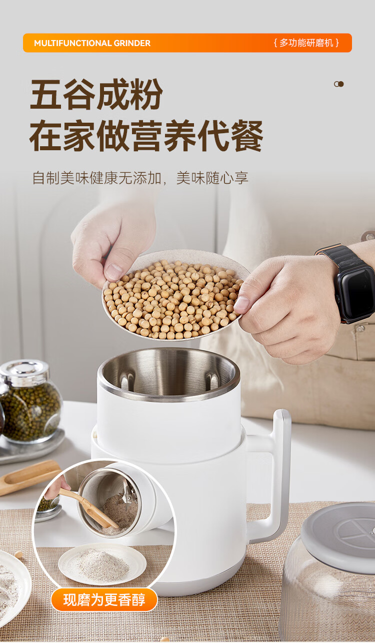 SPOUNR正品苏泊磨粉机超细打粉机小型电动干湿两用五谷杂粮研磨机料理机 珍珠白(一套备用刀)+赠品(可打豆类/药材)干湿两用