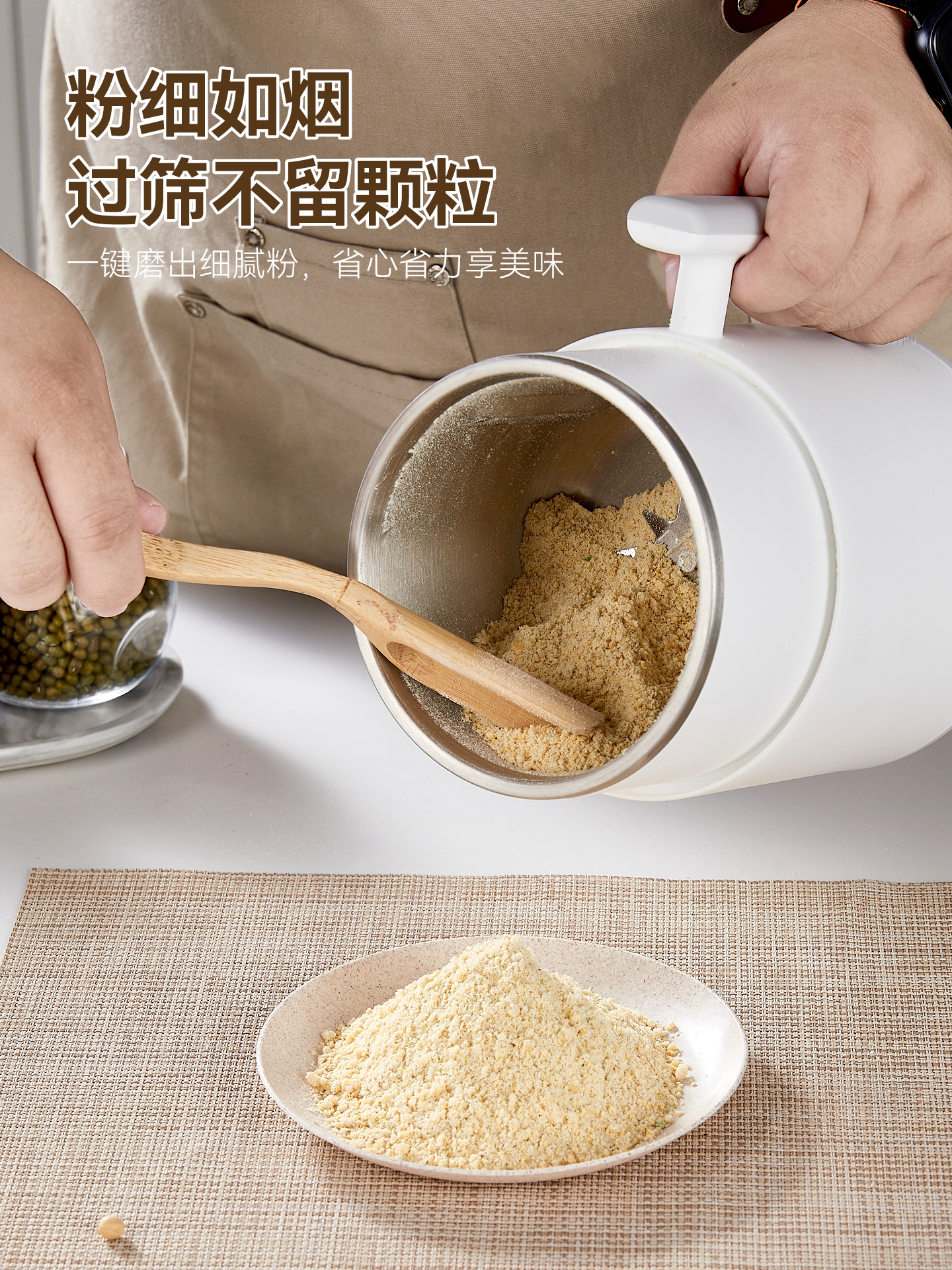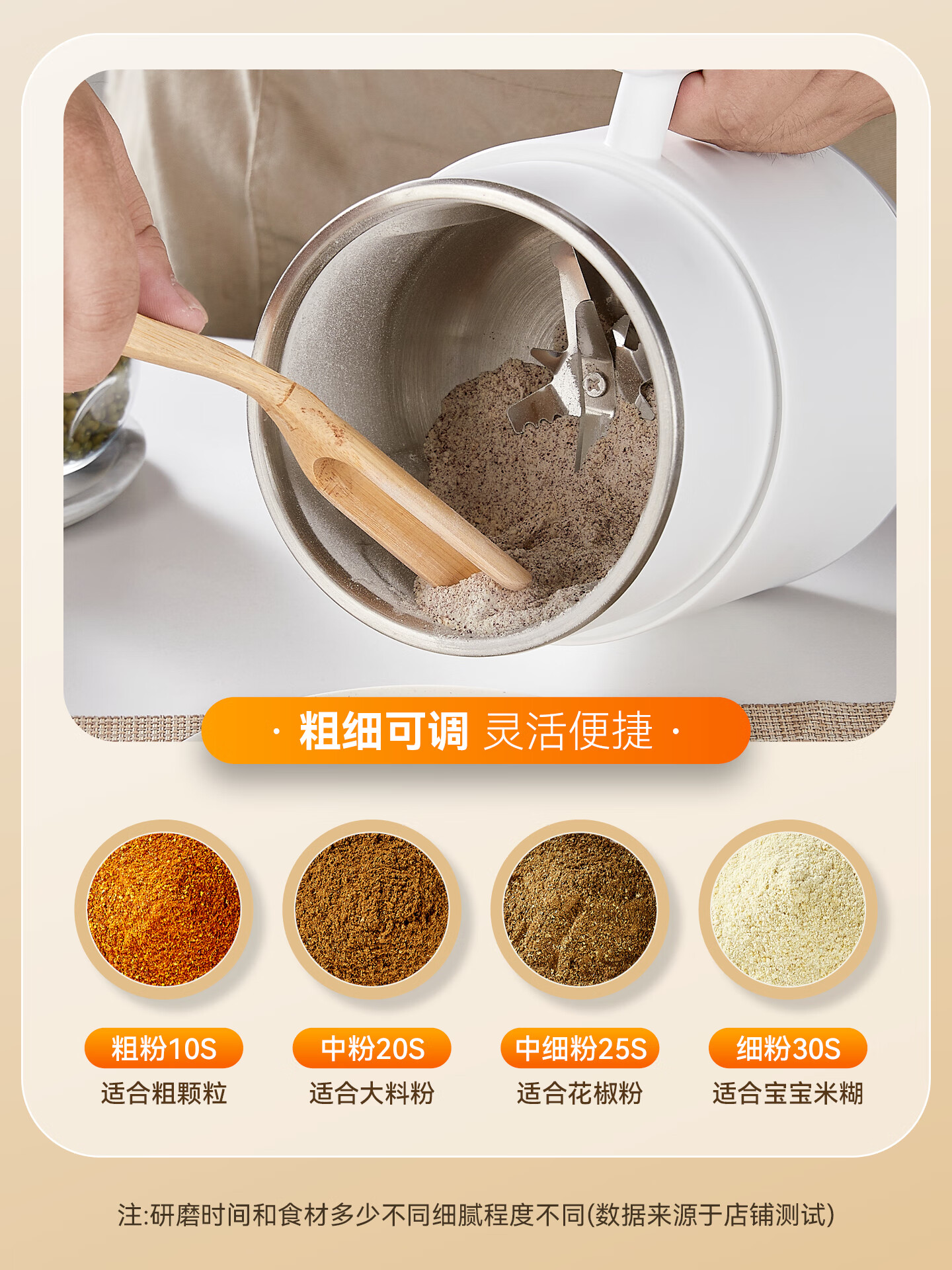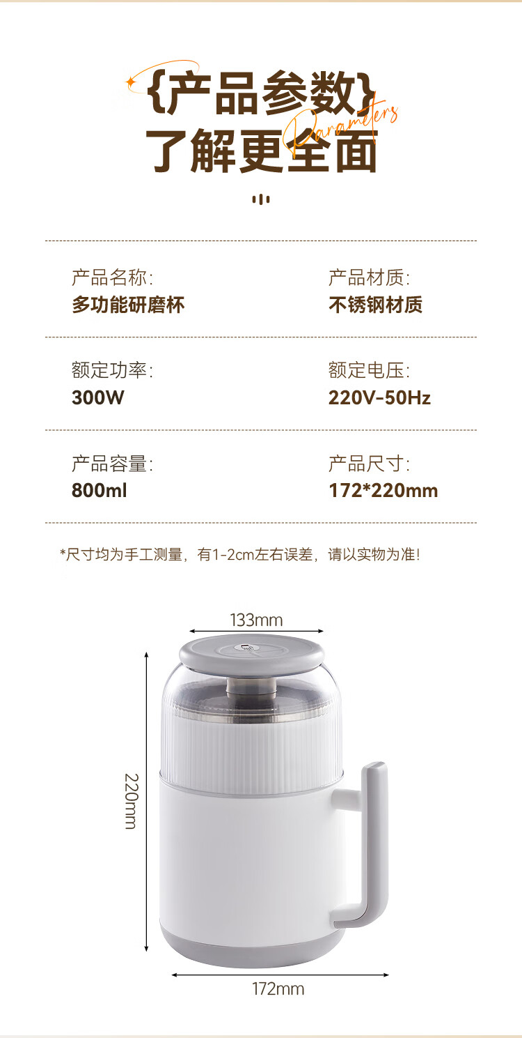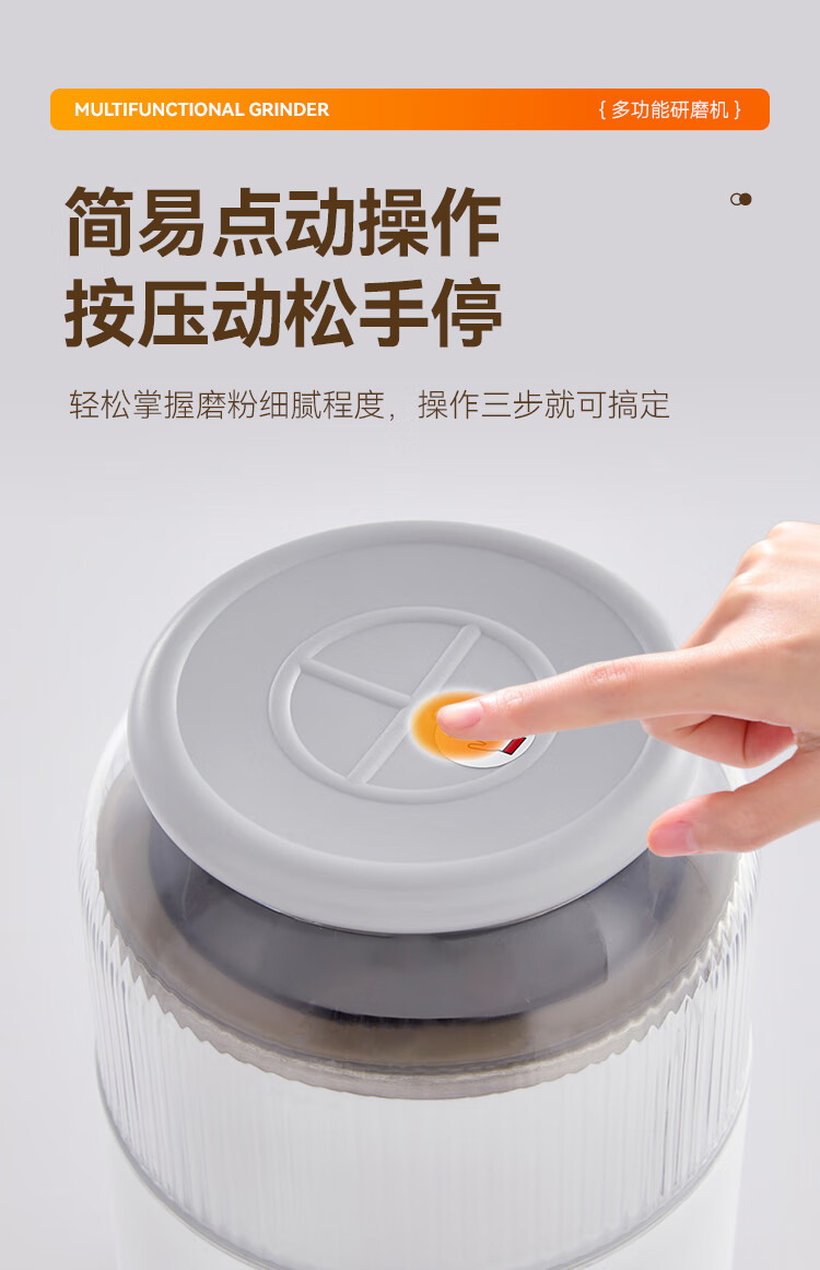 SPOUNR正品苏泊磨粉机超细打粉机小型电动干湿两用五谷杂粮研磨机料理机 珍珠白(一套备用刀)+赠品(可打豆类/药材)干湿两用
