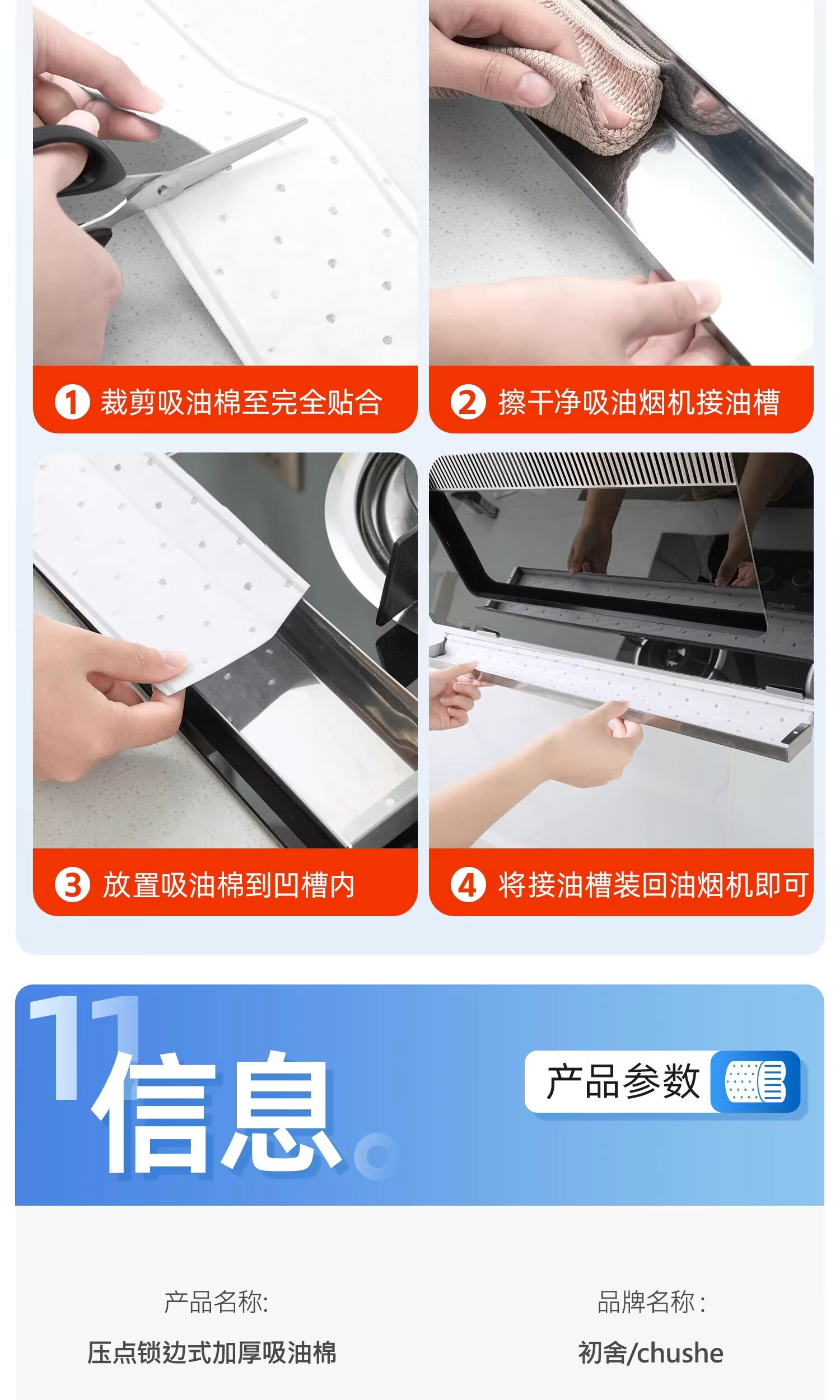 初舍(CHUSHE)抽油烟机吸油棉条通用厨房加厚防油贴纸集成灶油槽专用过滤垫油纸