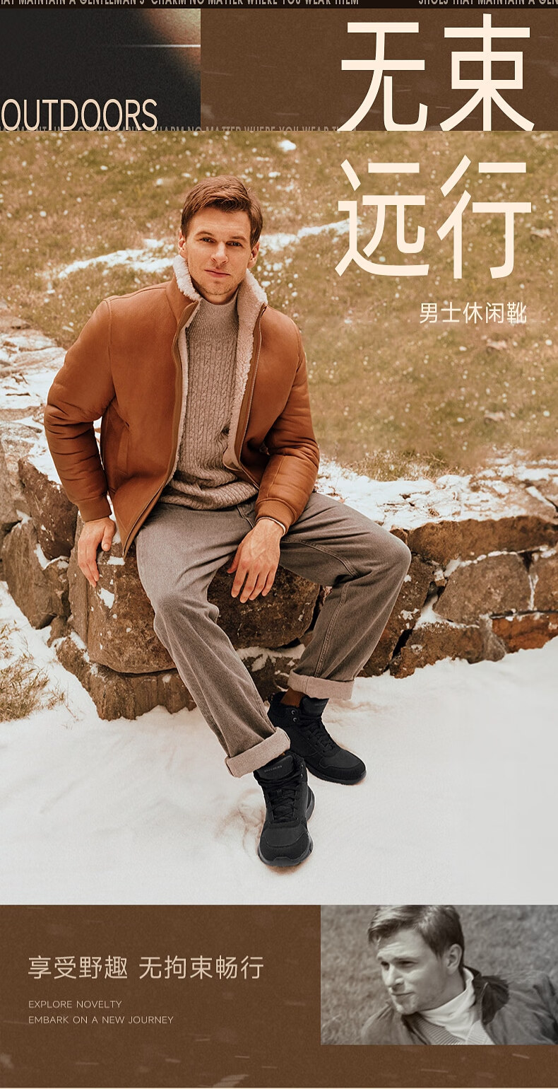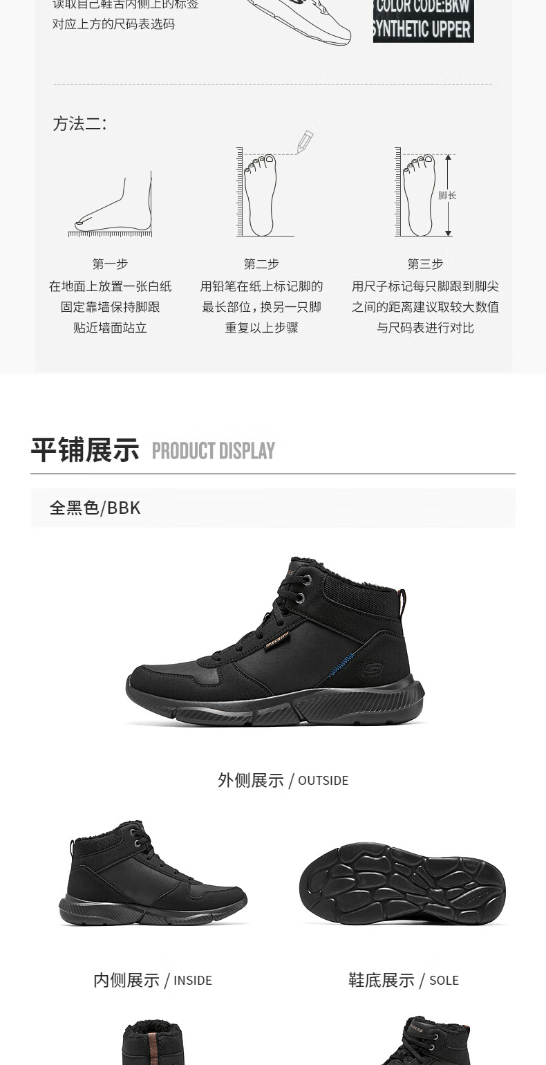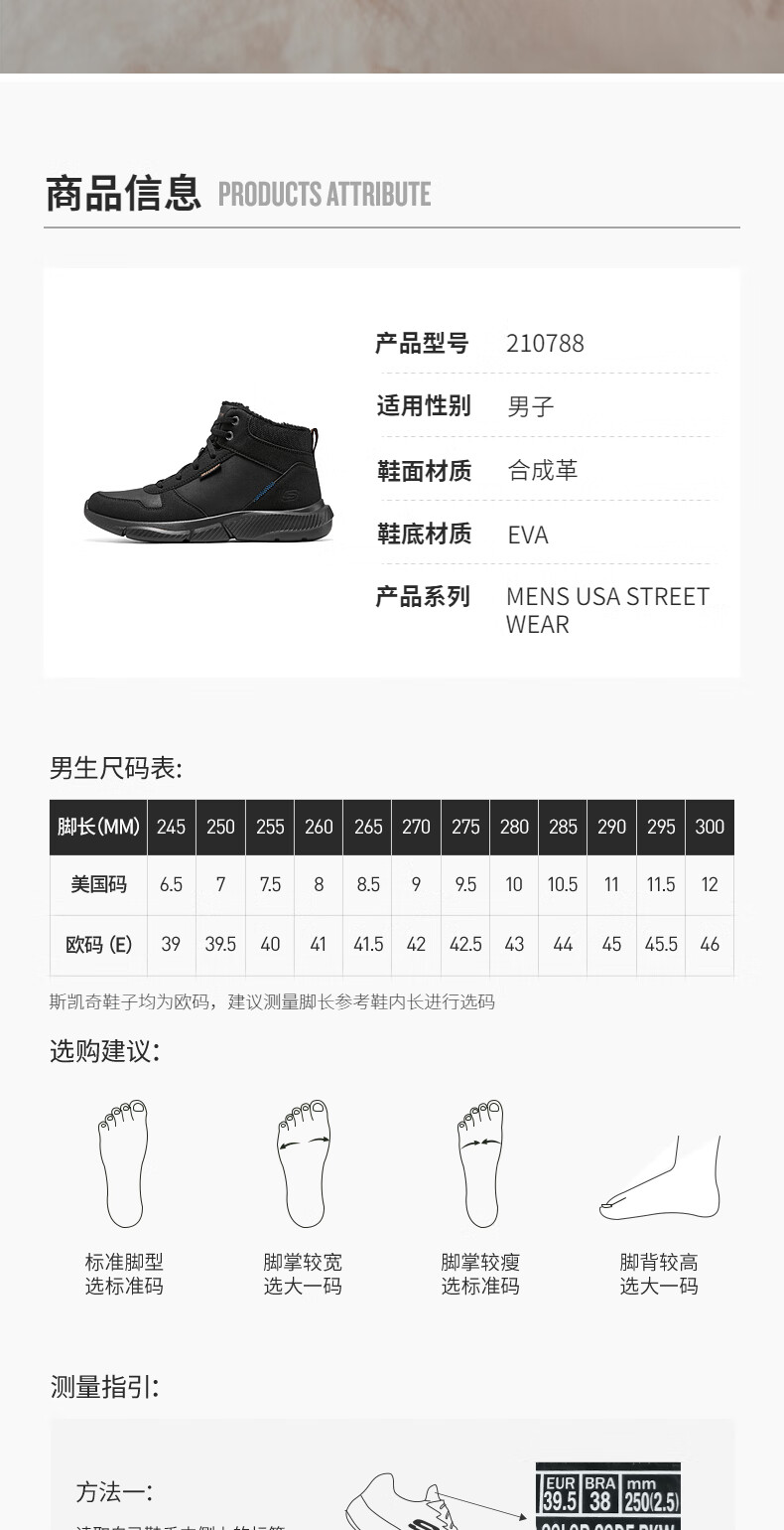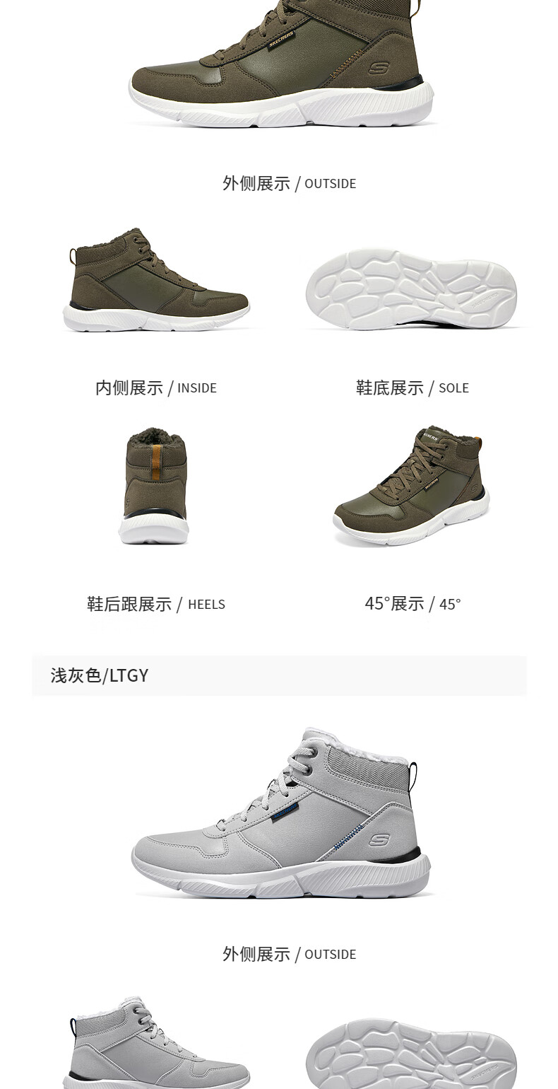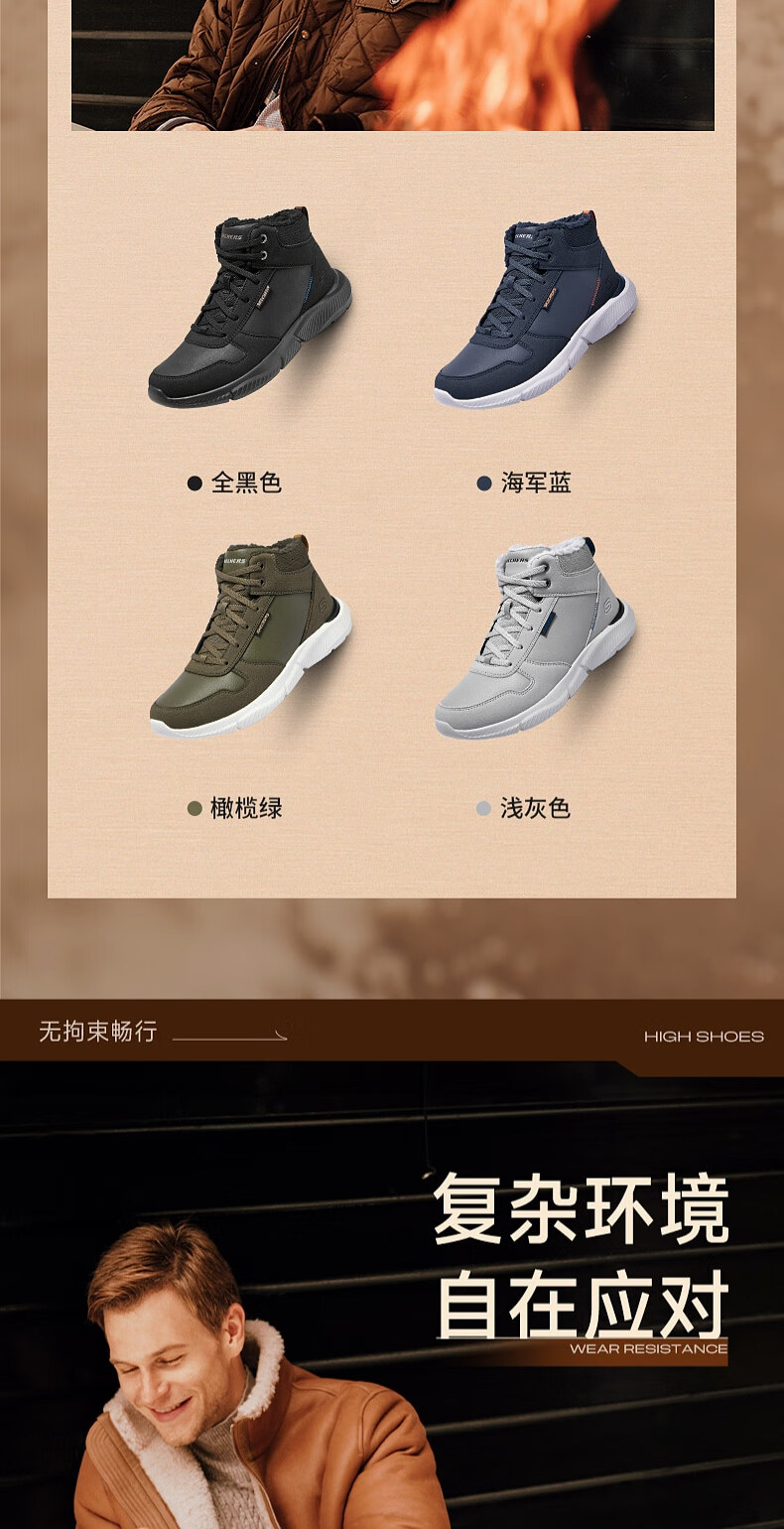 斯凯奇(Skechers)新年礼物男鞋时尚百搭高帮鞋户外鞋软底缓震休闲男靴工作鞋210788