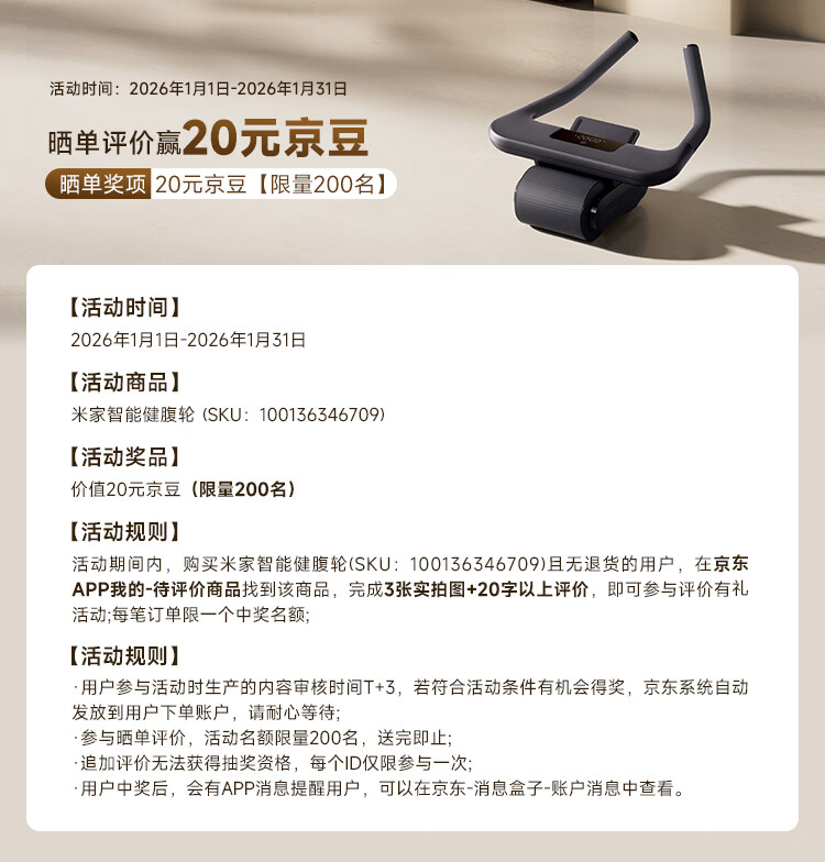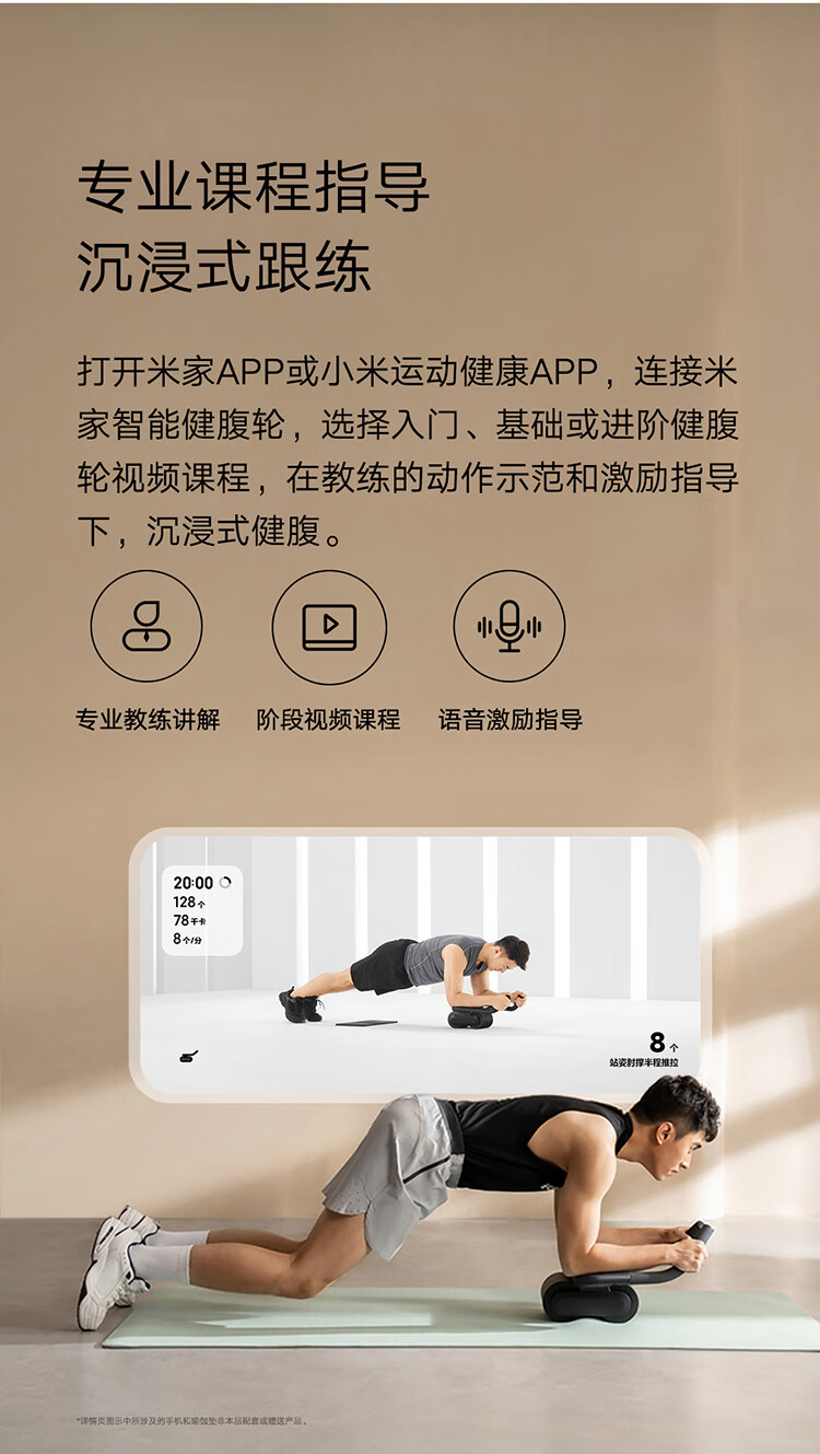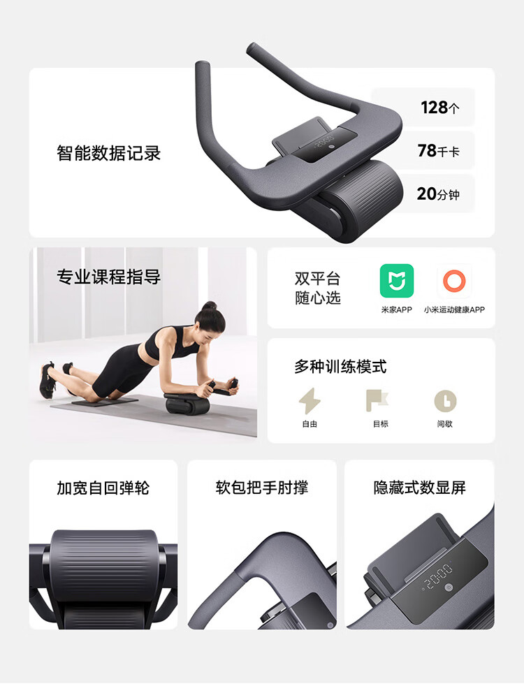 米家(MIJIA)小米智能健腹轮加宽自动回弹肘撑腹肌轮平板支撑健身卷腹男女滚轮