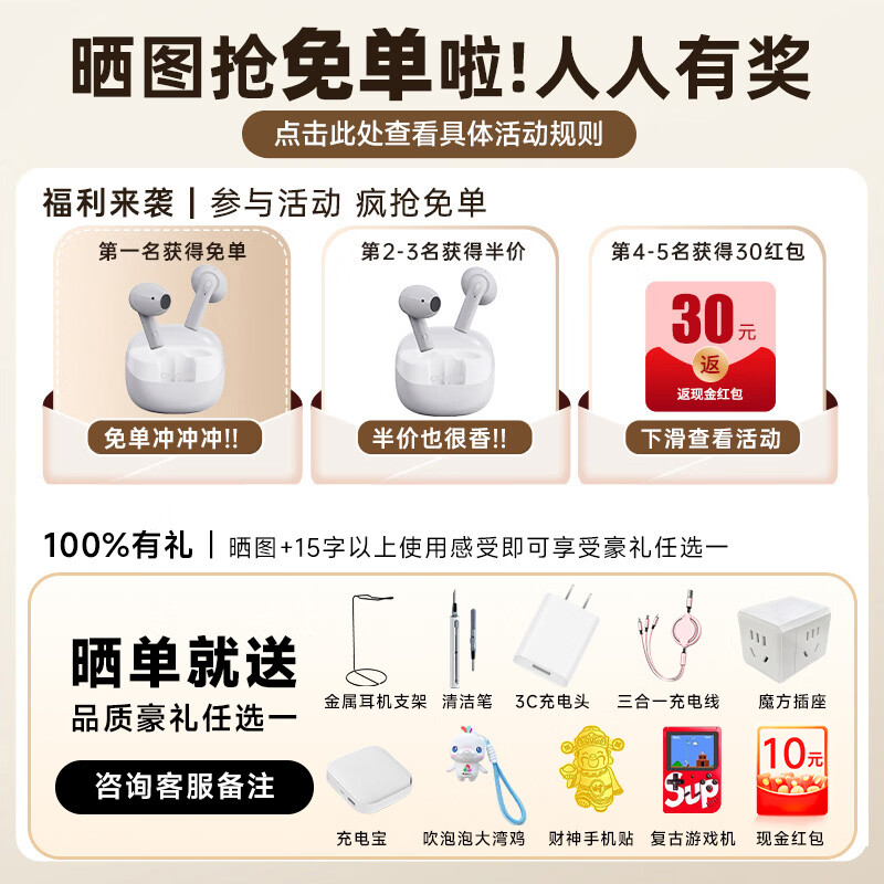 瓷音未来Mars 2蓝牙耳机半入耳式真无线智能降噪HIFI高音质超长续航低延迟游戏跑步运动音乐耳麦大湾鸡礼物 云雾白+晒单赠10元红包