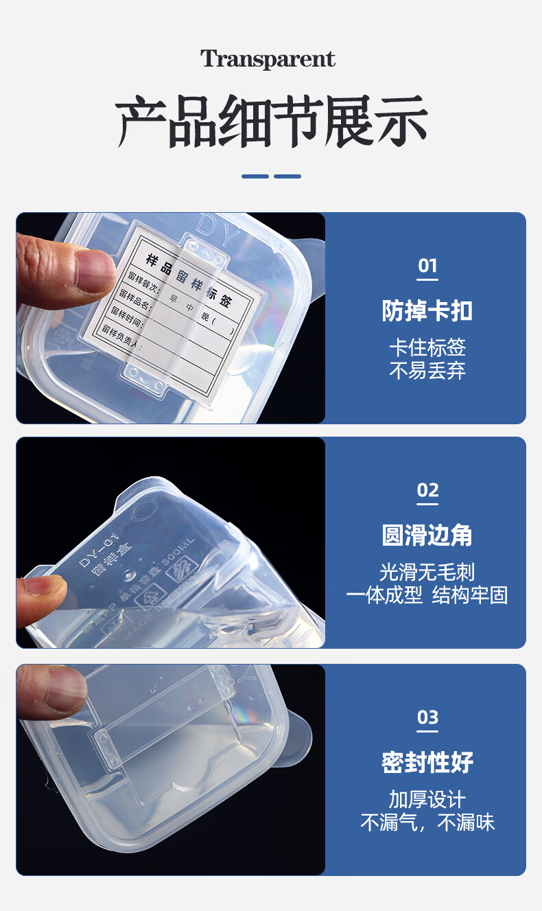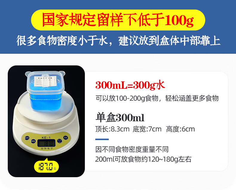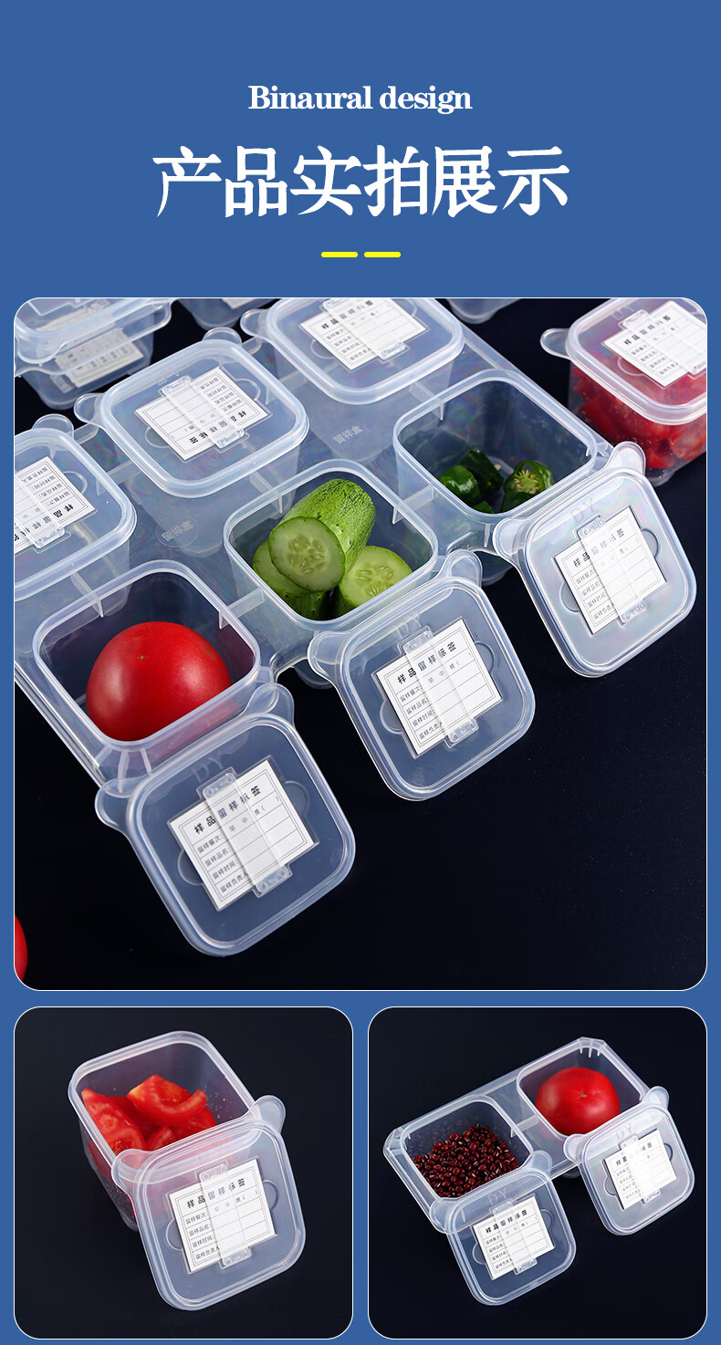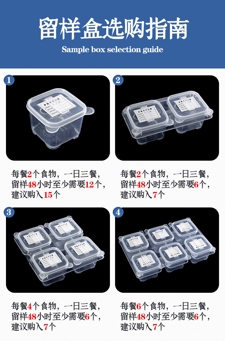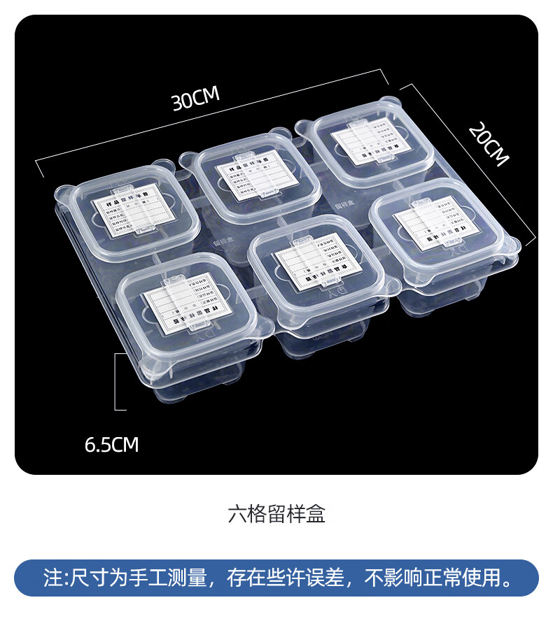 梦庭食品留样盒幼儿园学校酒店保鲜取样盒6格组合1800ml(配标签)