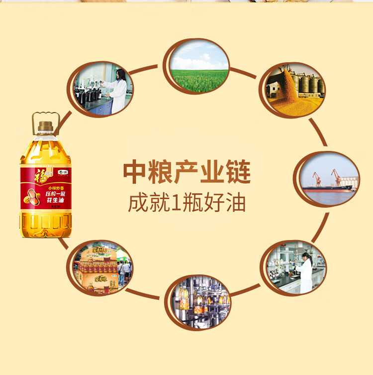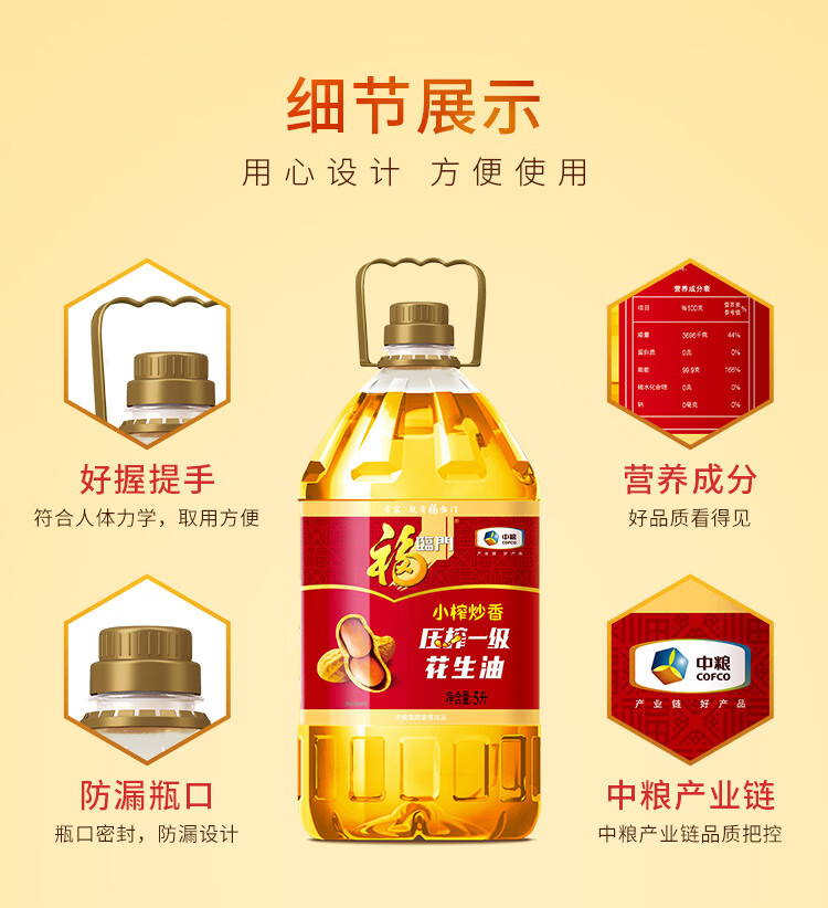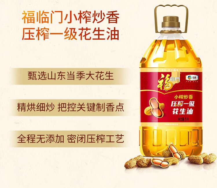 福临门食用油 小榨炒香压榨一级 花生油5L【保真花生油】 中粮出品