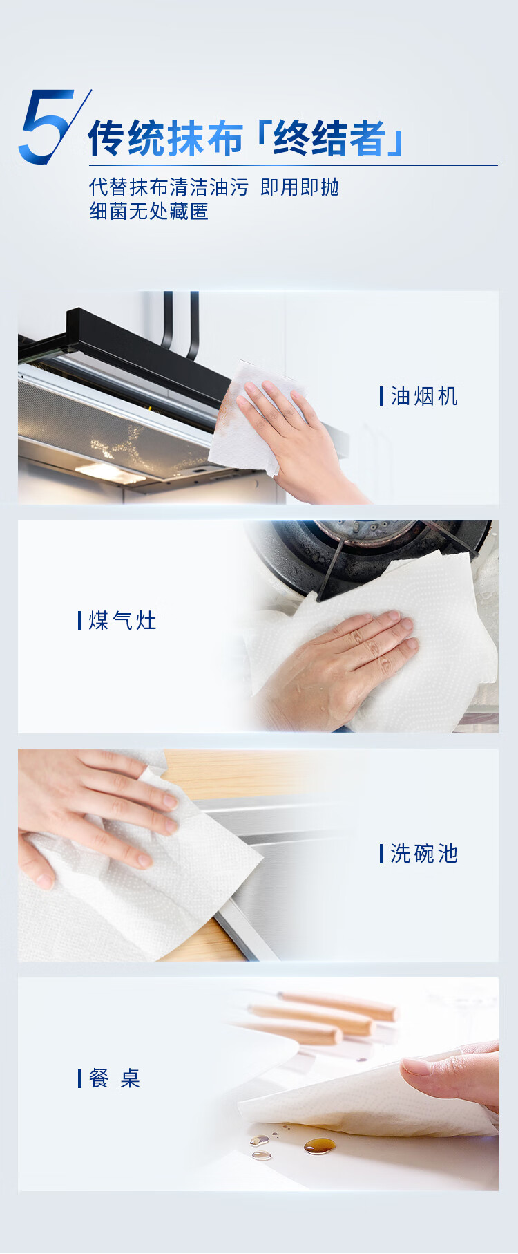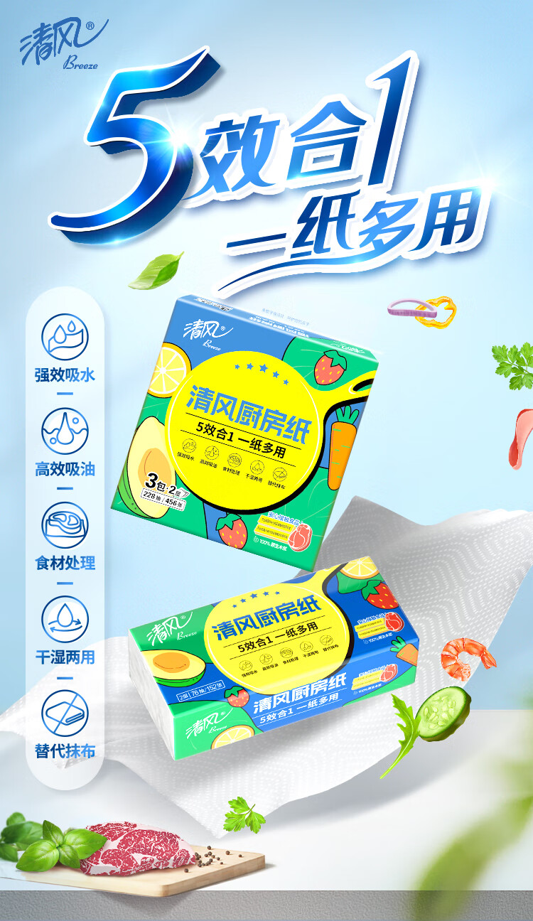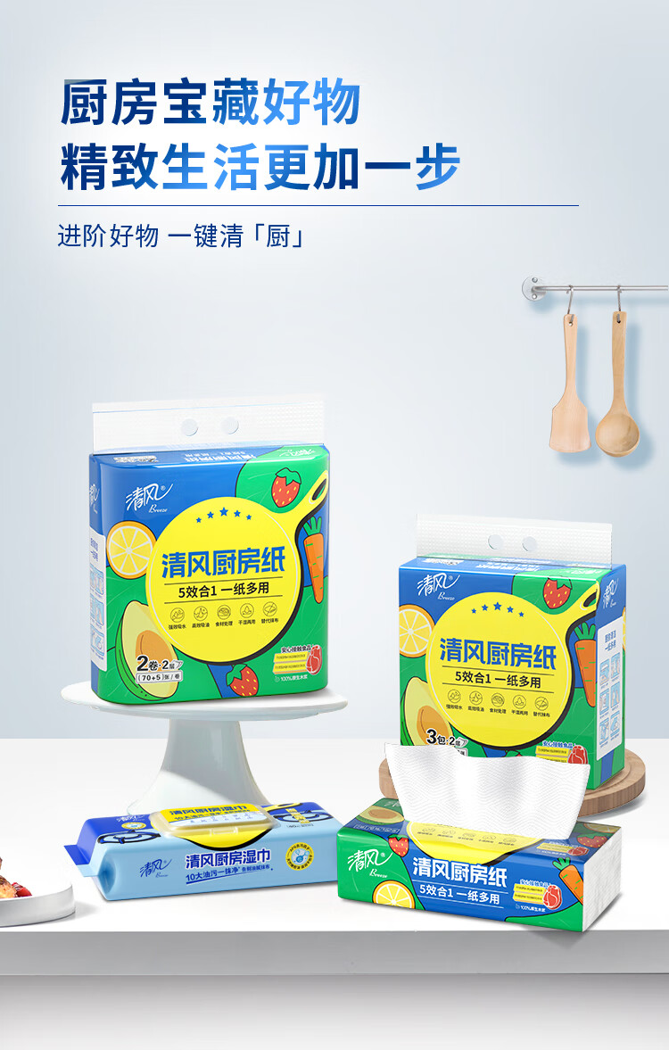 清风厨房抽纸76张*3包 加大加厚水油瞬吸 可接触食物级一次性懒人抹布