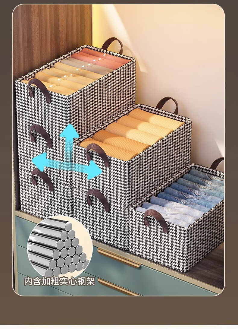 物物优收纳箱家用收纳衣服物裤子抽屉式布艺整理储物箱柜分层神器收纳筐 【特大号47*28*20】 6个装 加强钢架【店长】