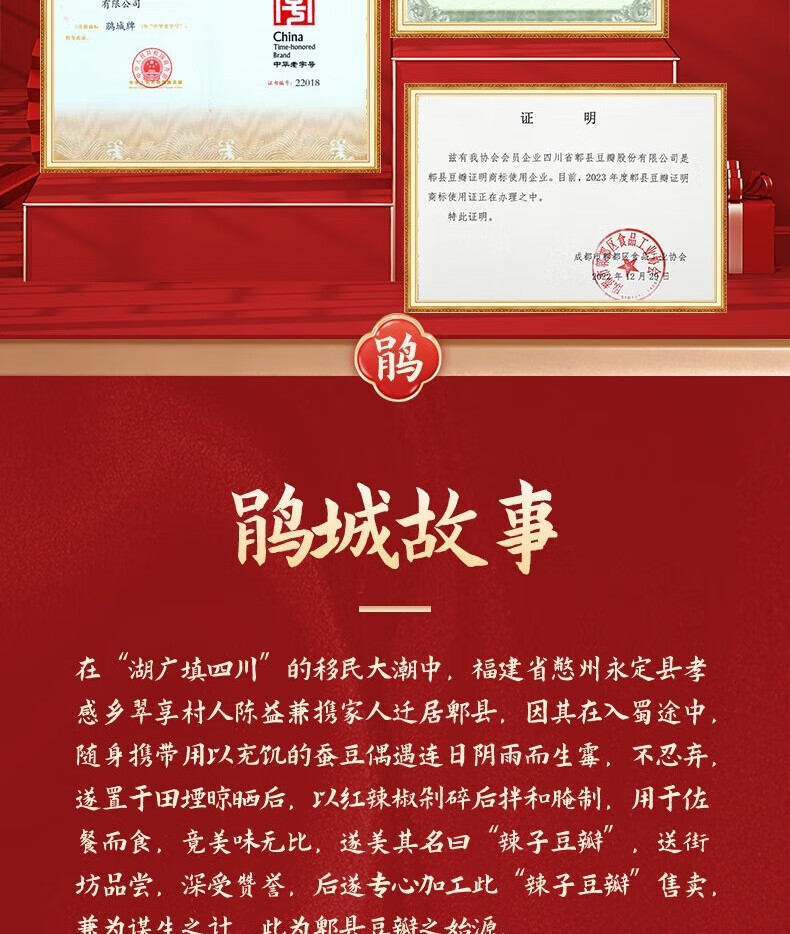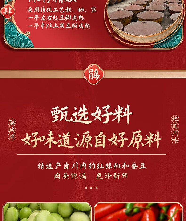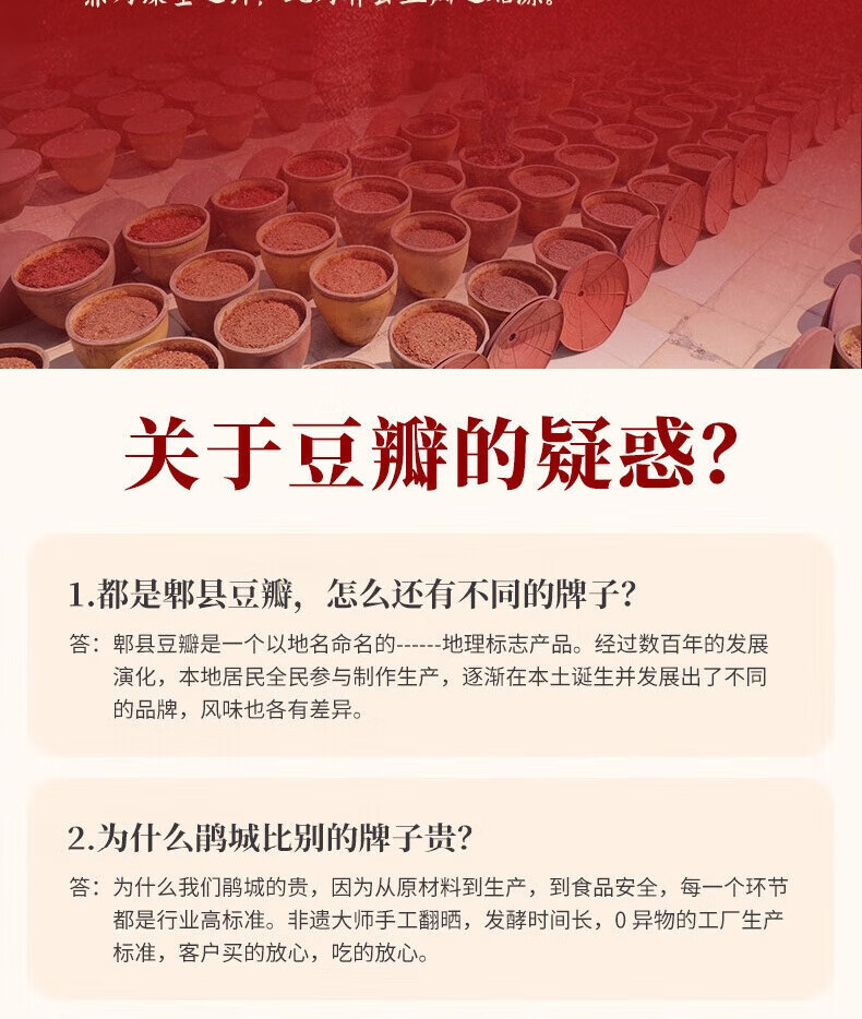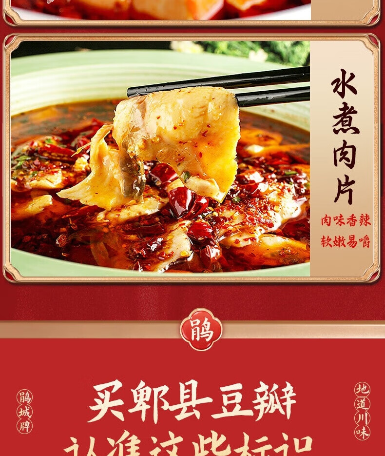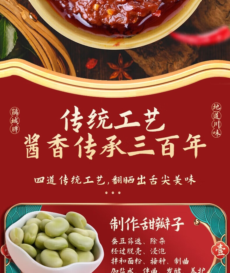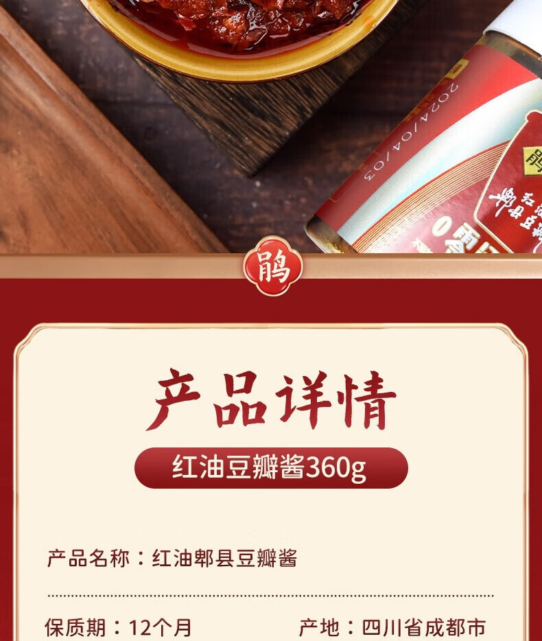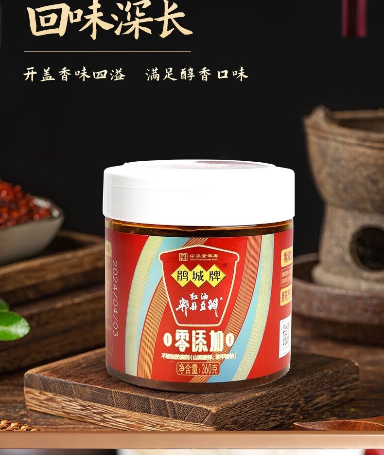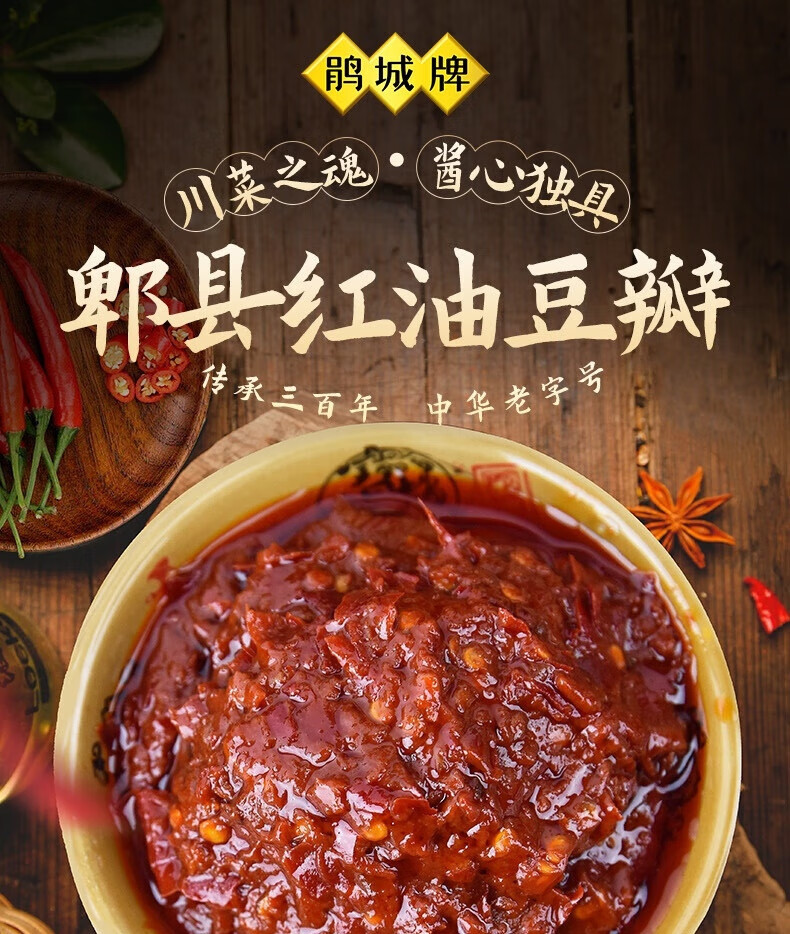 鹃城牌 0添加红油郫县豆瓣酱360g 辣椒酱 川菜酱 中华老字号