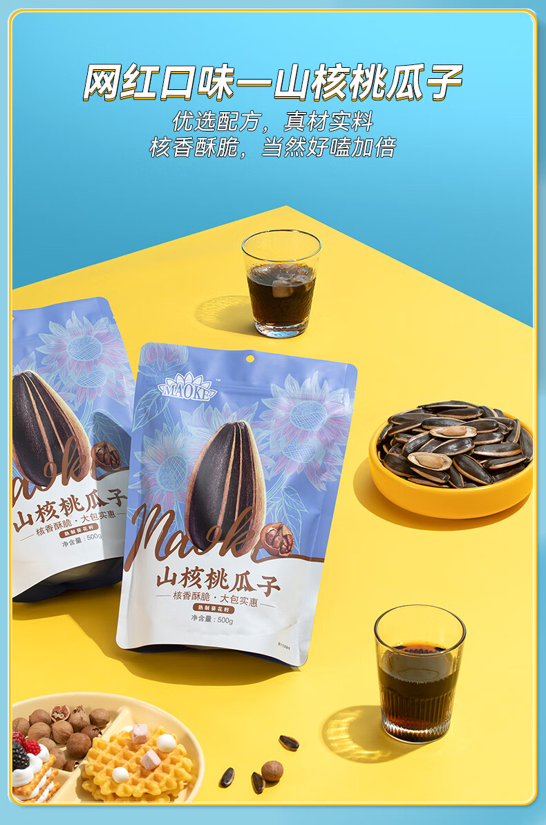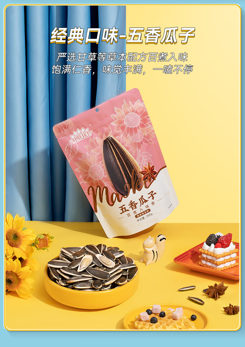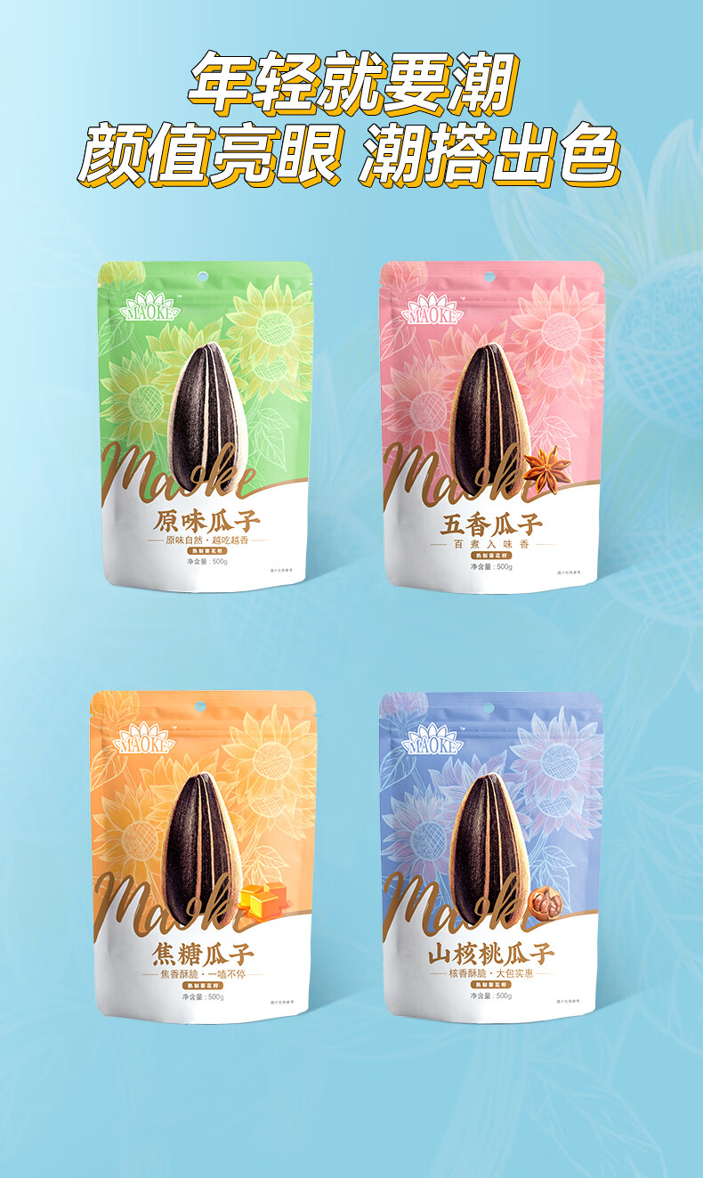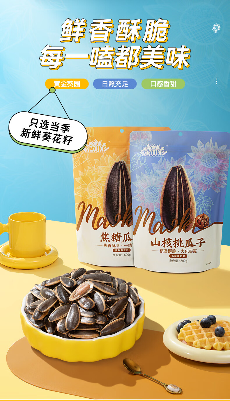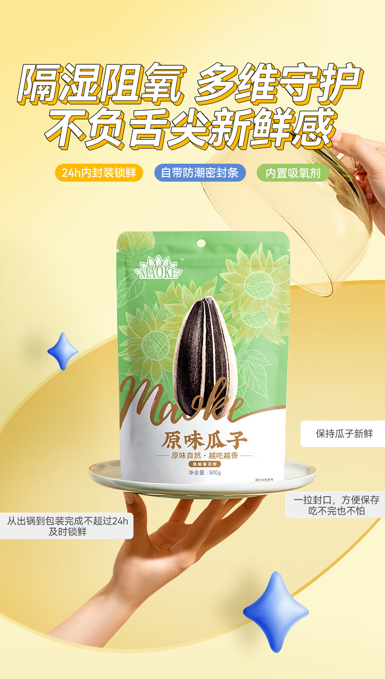 MAOKE毛嗑原味瓜子葵花籽大颗粒网红休闲追剧零食恰恰500g大包装囤