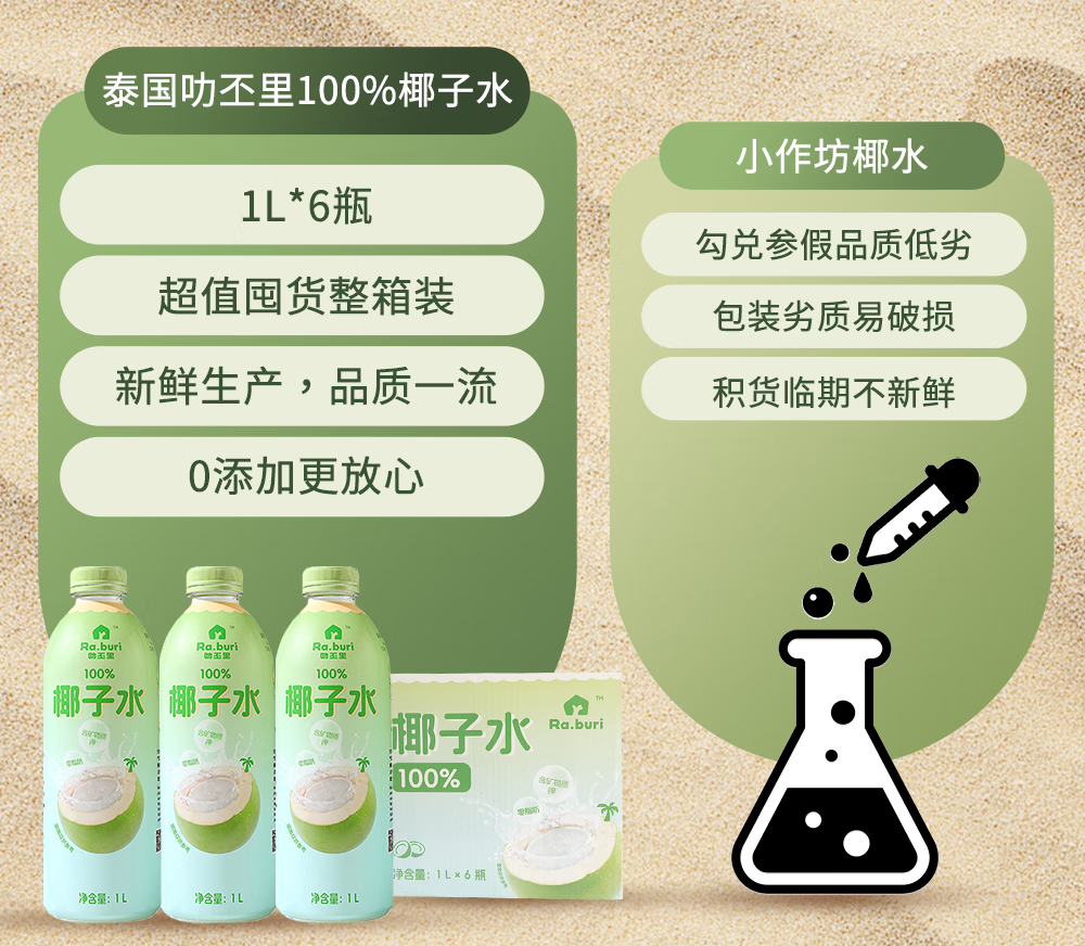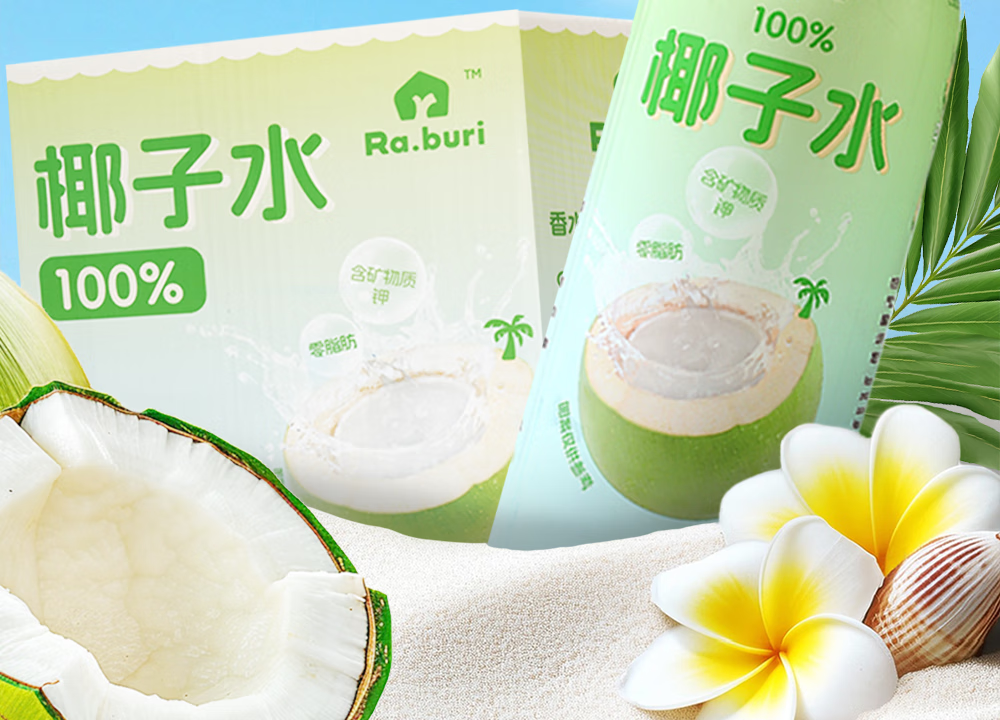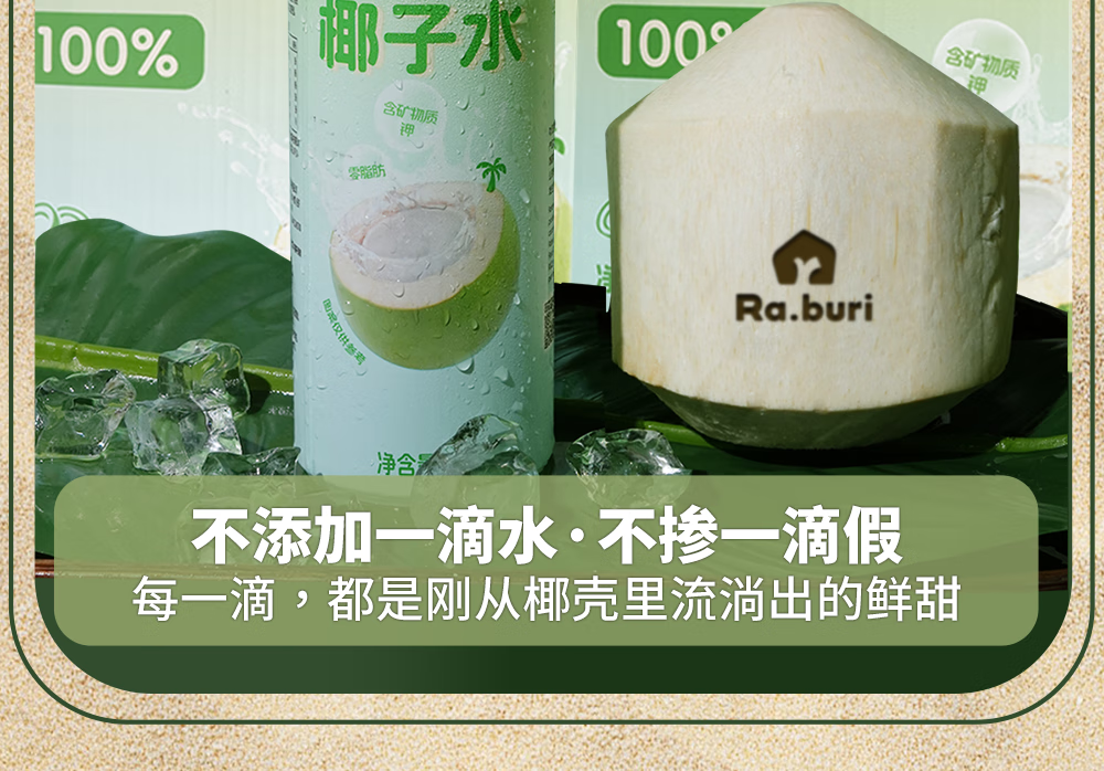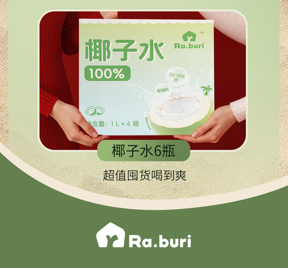 RA.BURI叻丕里泰国NFC100%纯椰子水0添加孕妇火锅果汁饮料1L*6瓶年货整箱