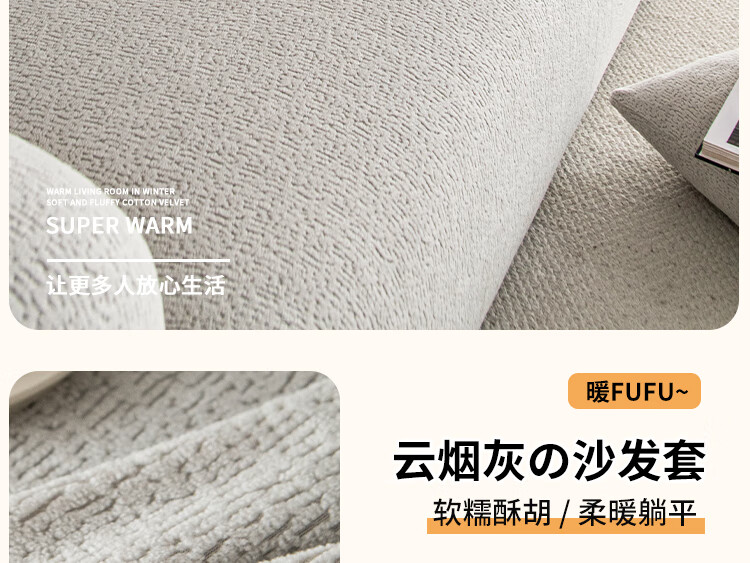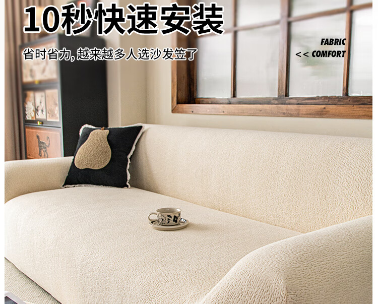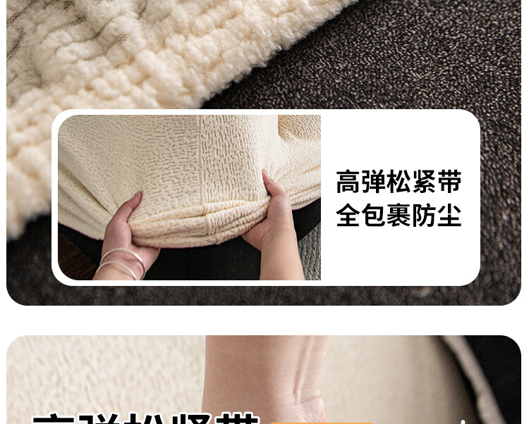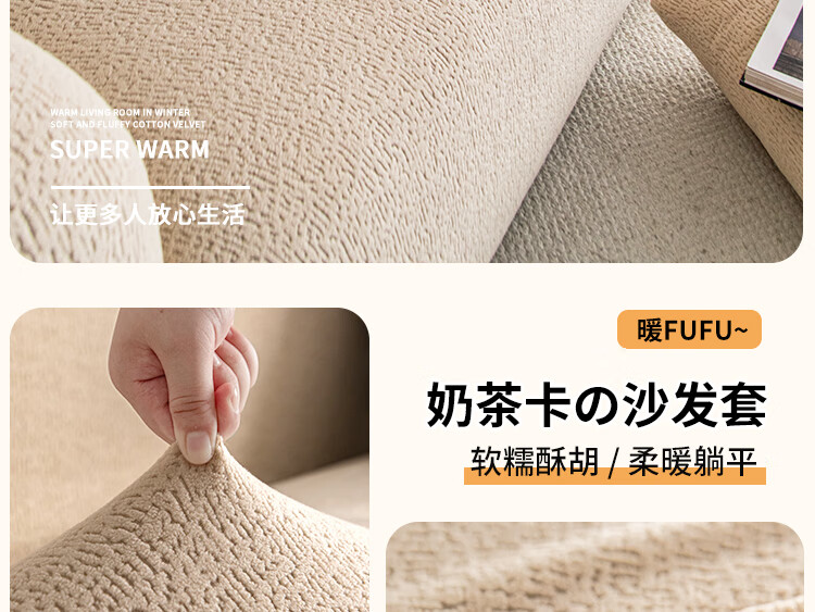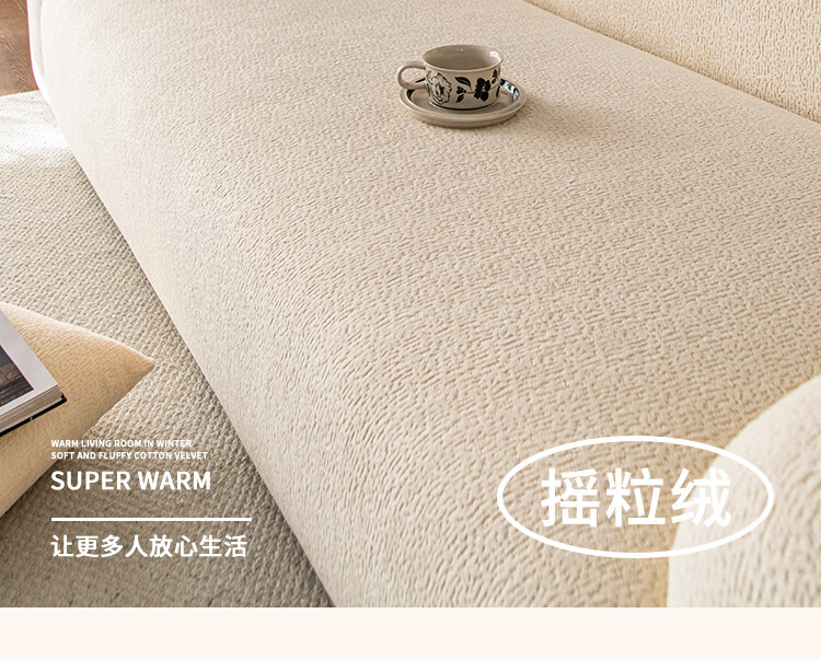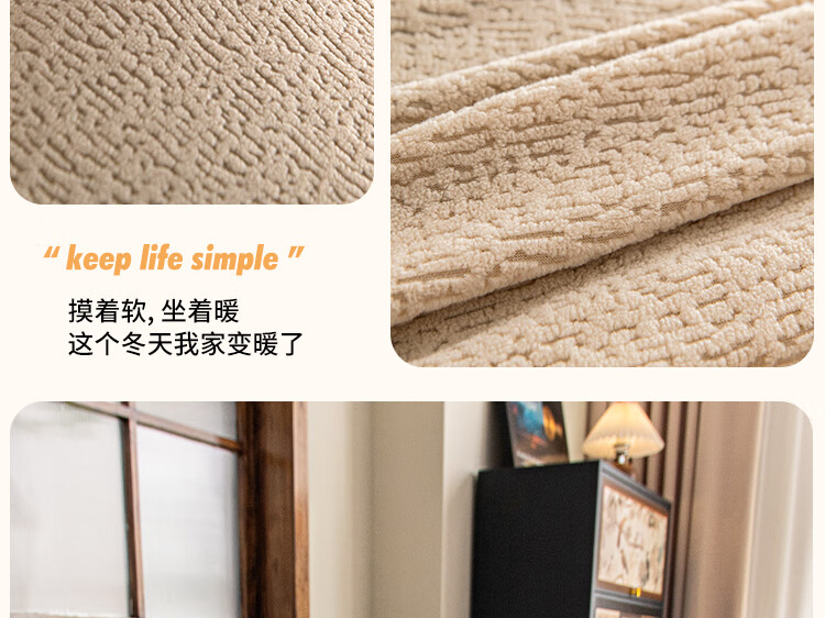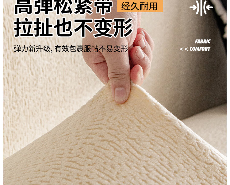 无印良品沙发套冬季加厚毛绒沙发罩全包万能套直排沙发套罩防猫抓保护套 简绒-象牙白 【建议拍大一码尺寸|弹力全包防猫抓】 三人位 【适用长190-230cm】