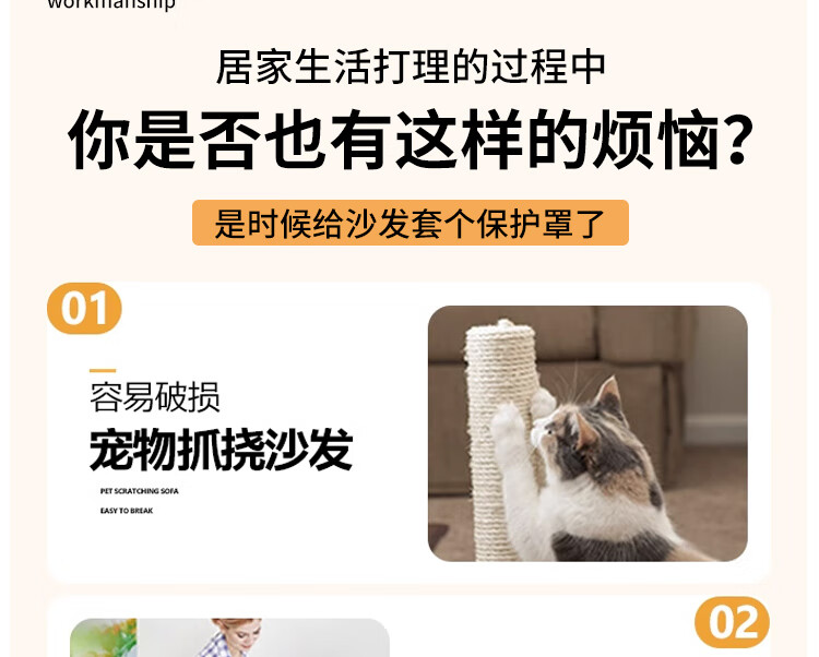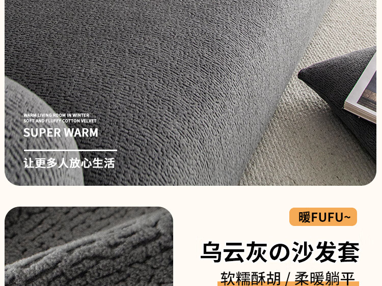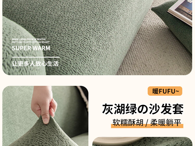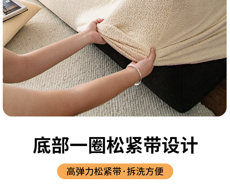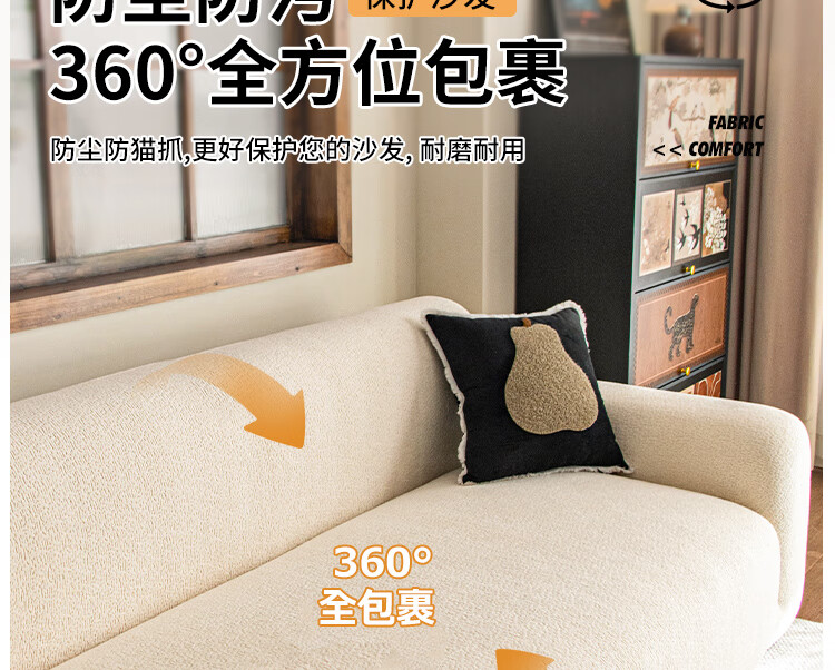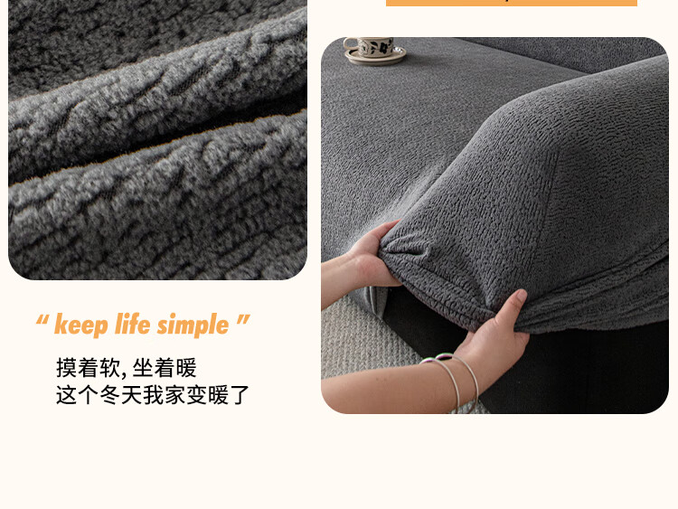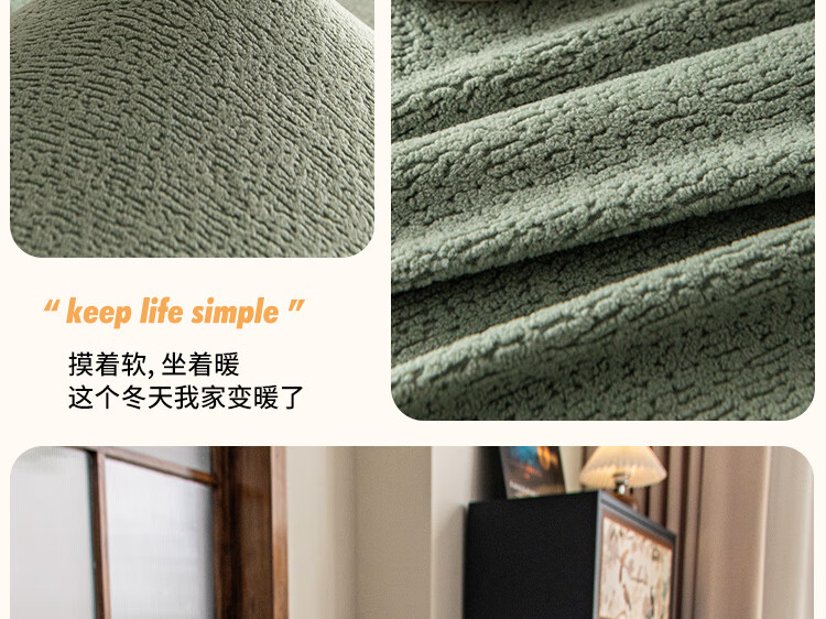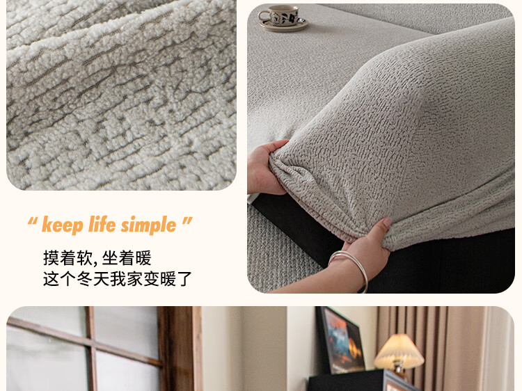 无印良品沙发套冬季加厚毛绒沙发罩全包万能套直排沙发套罩防猫抓保护套 简绒-象牙白 【建议拍大一码尺寸|弹力全包防猫抓】 三人位 【适用长190-230cm】