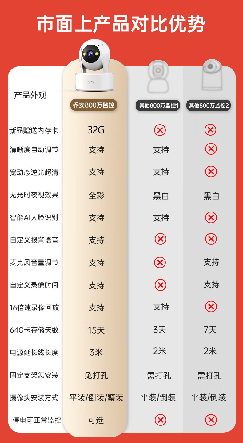 乔安(JOOAN)800万像素摄像头监控无线wifi网络高清夜视监控器360度无死角带夜视全景云台家用AI监控手机远程