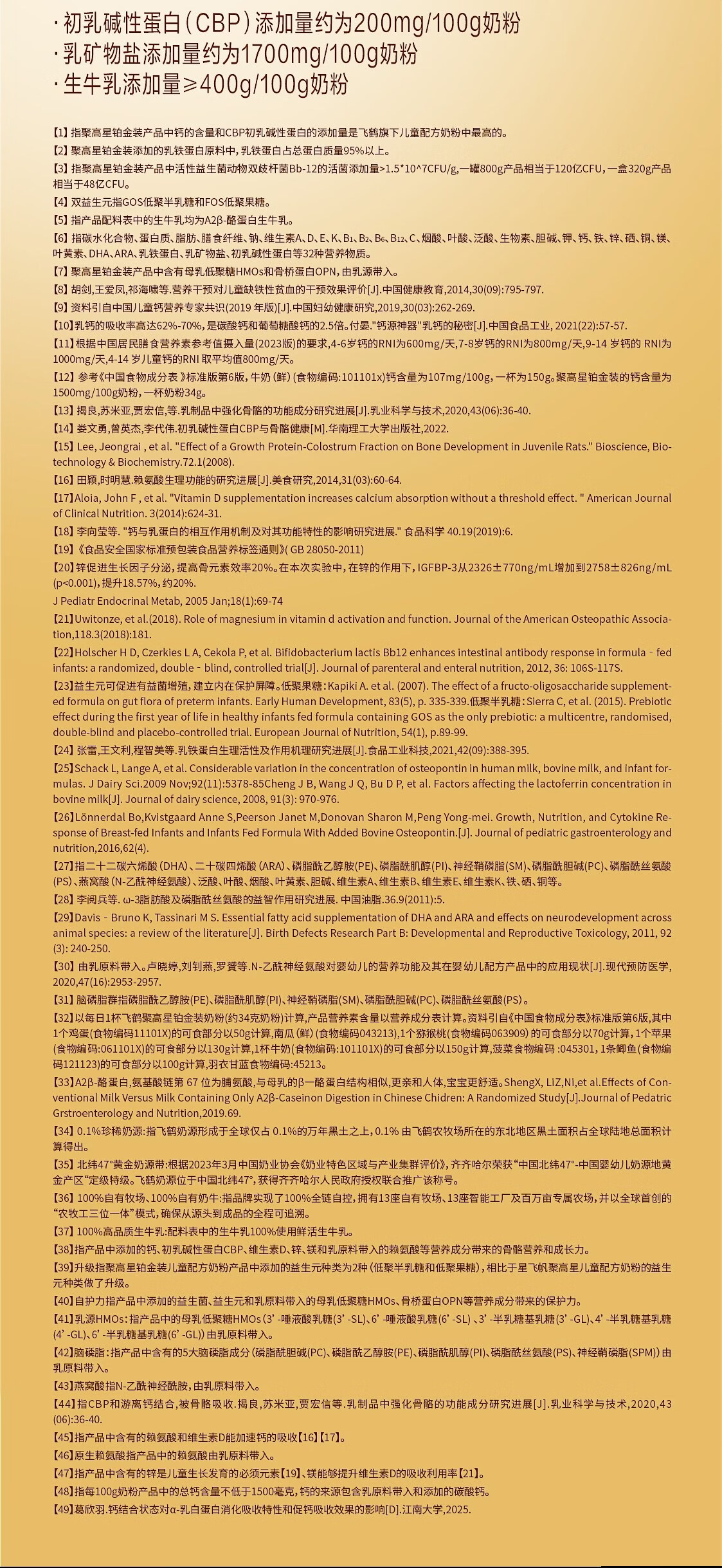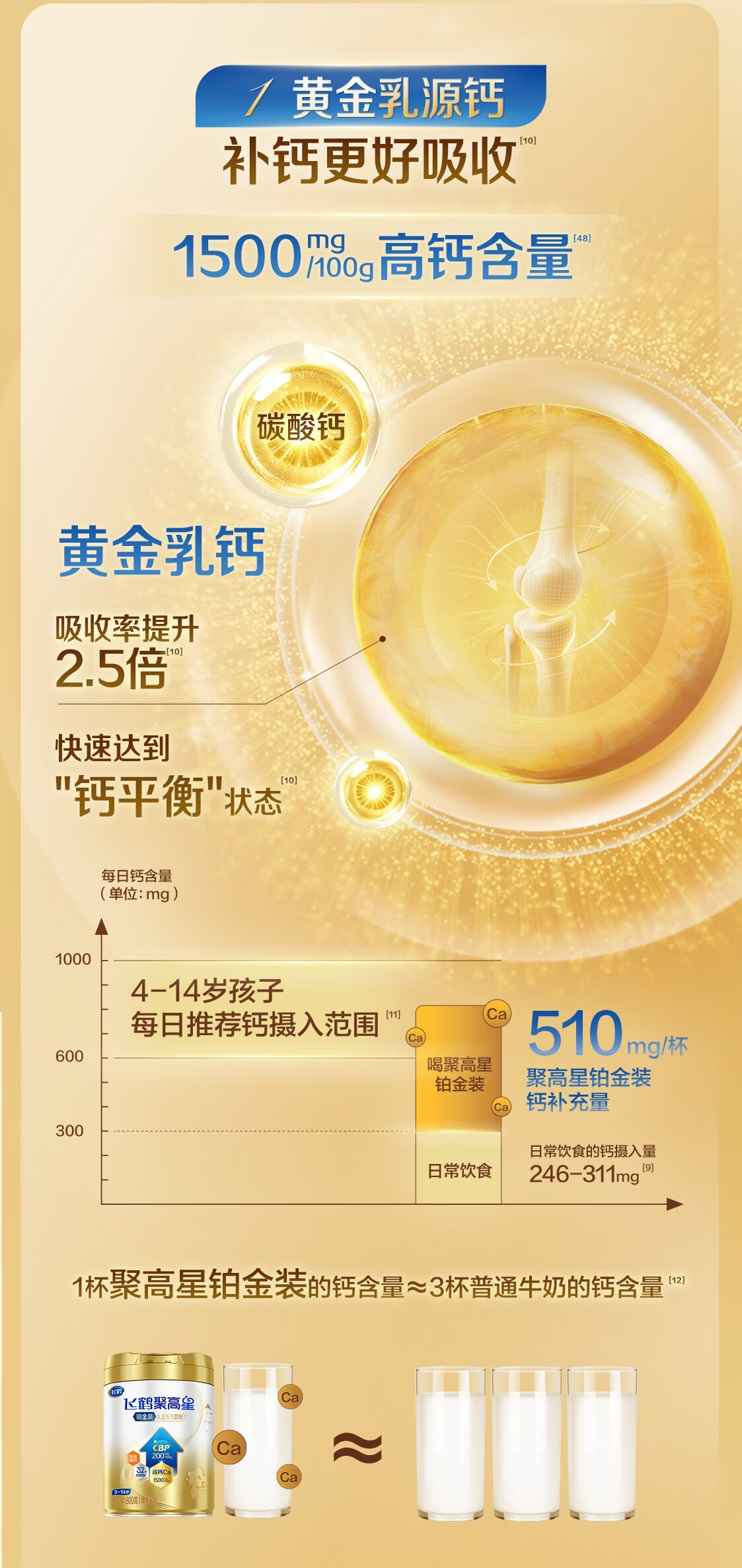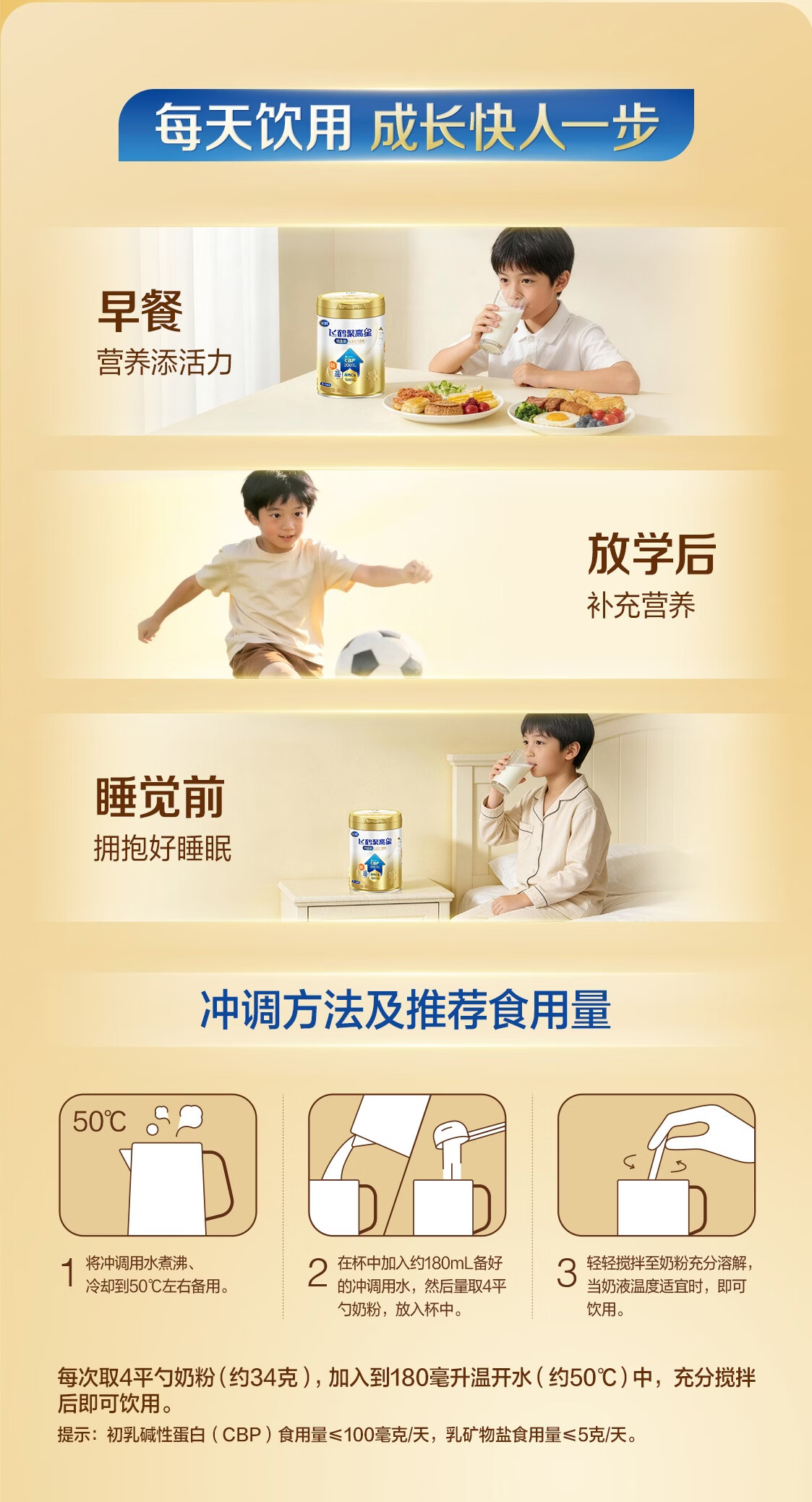飞鹤聚高星铂金CBP骨骼发育乳铁蛋白儿童成长奶粉4段(3-14岁)800g*1罐