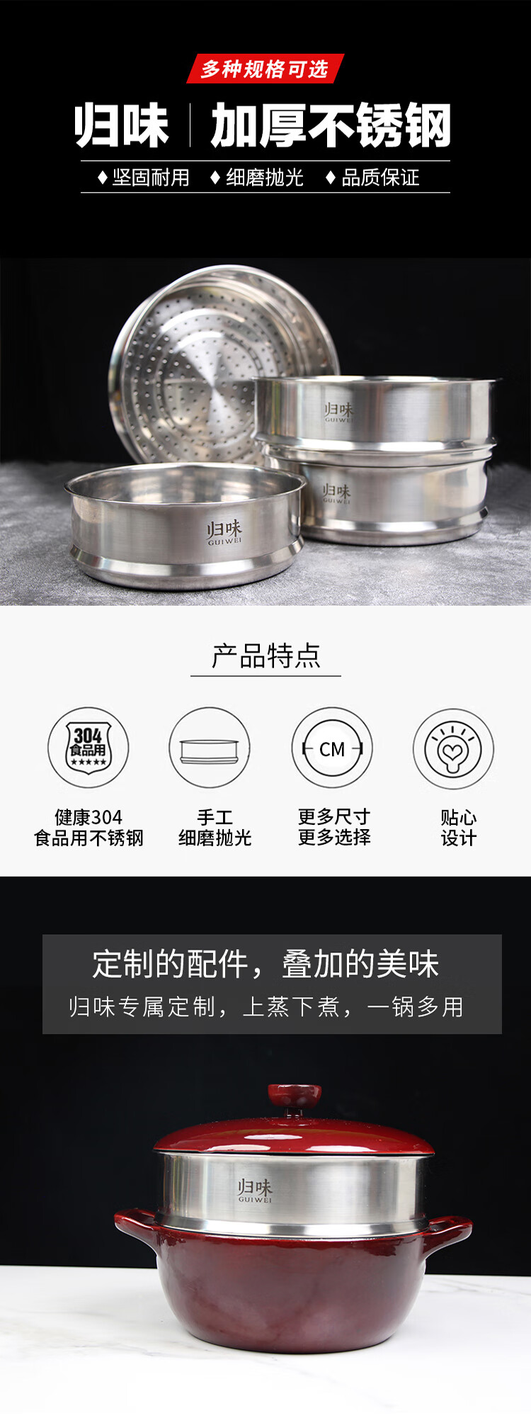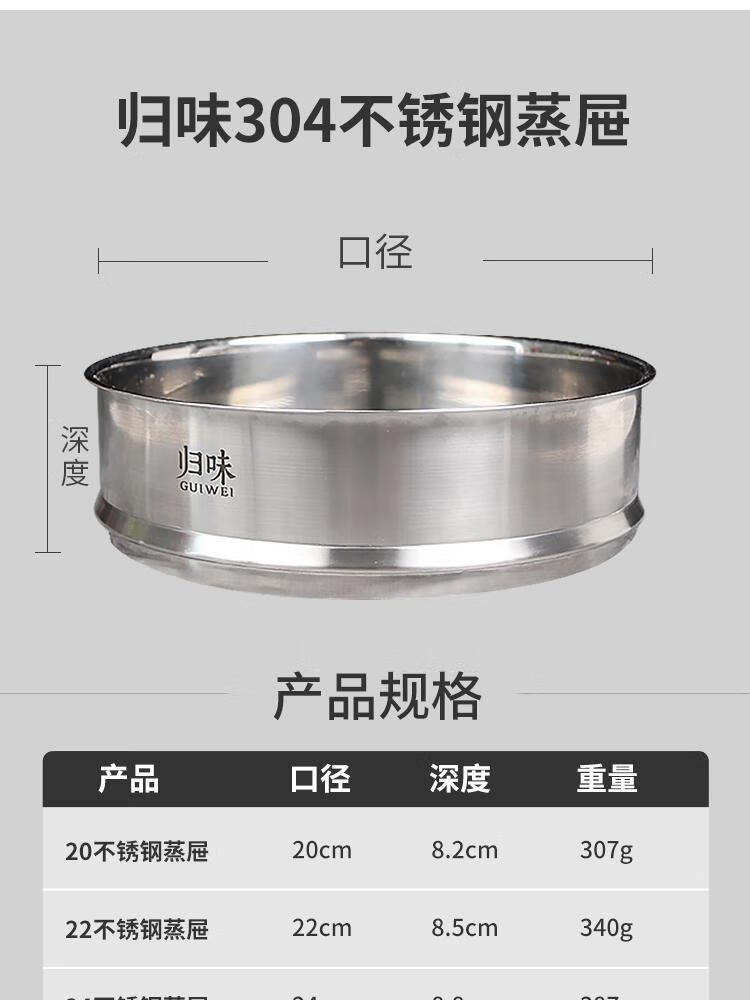 归味家用加深加厚304不锈钢蒸屉蒸笼蒸格蒸架锅具配件 28cm【304加厚】