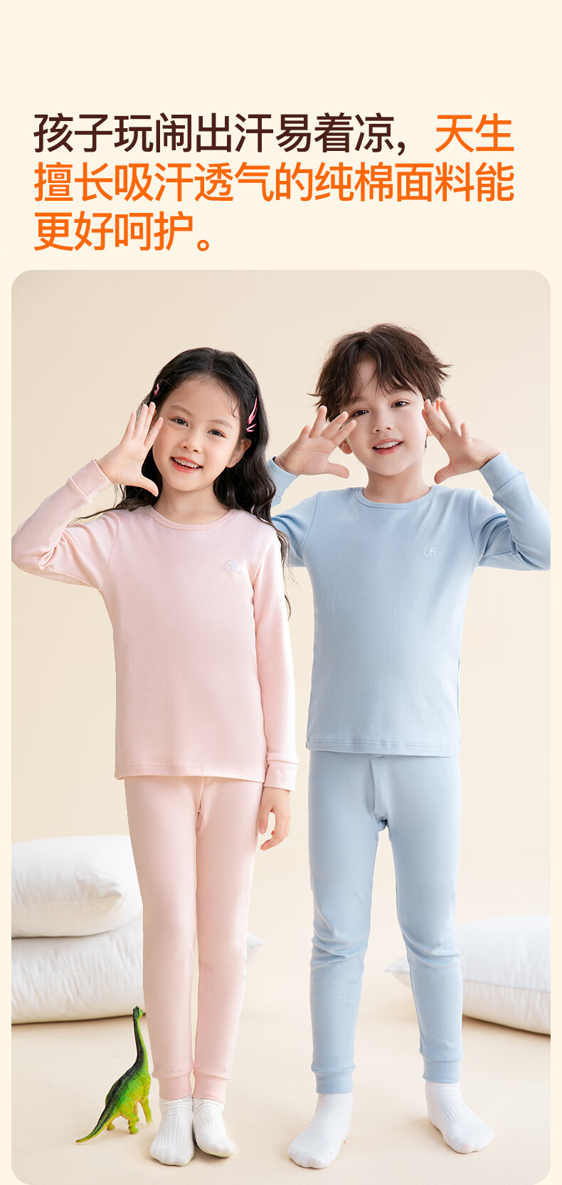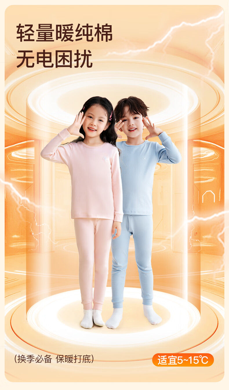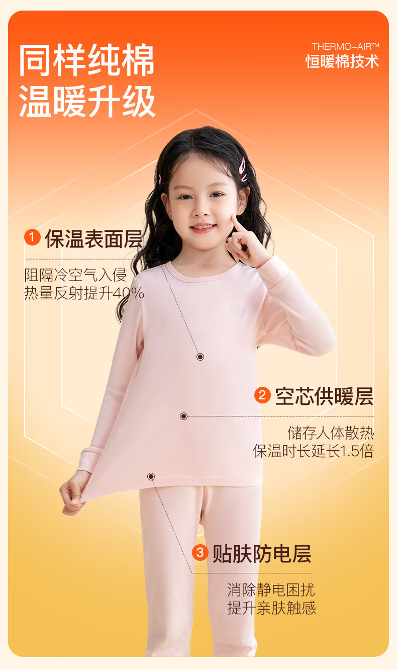 芬腾保暖内衣女童纯棉秋防静电保暖打底睡衣套装儿童柔暖秋衣 女童-粉橙 150