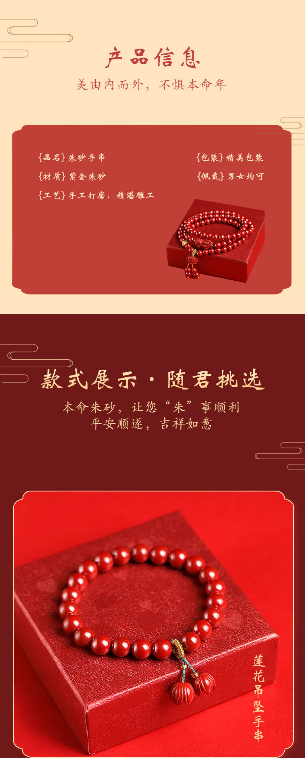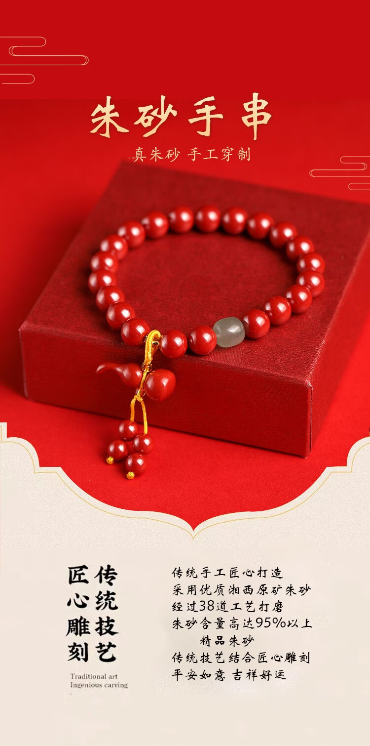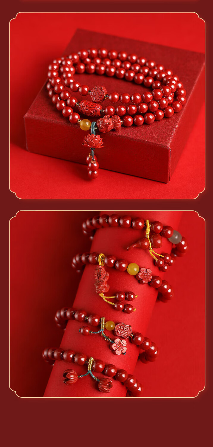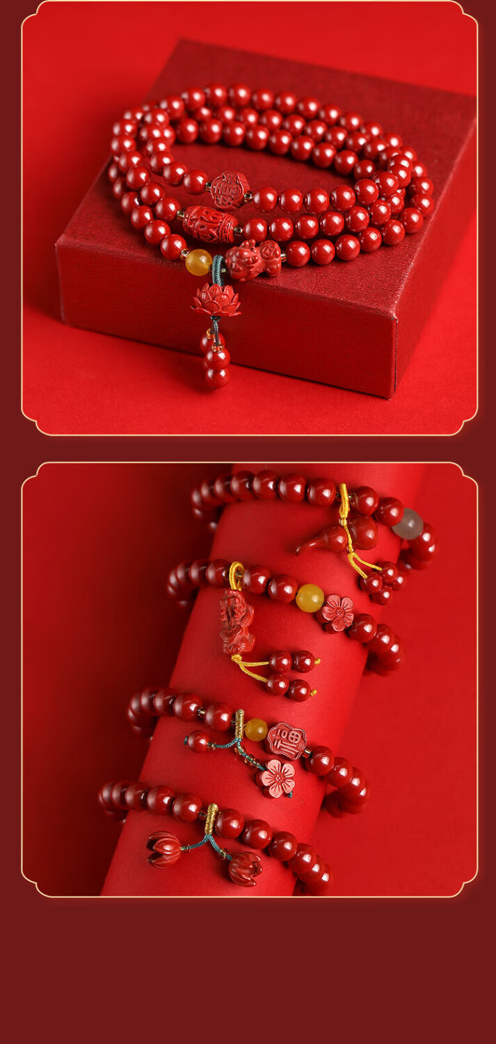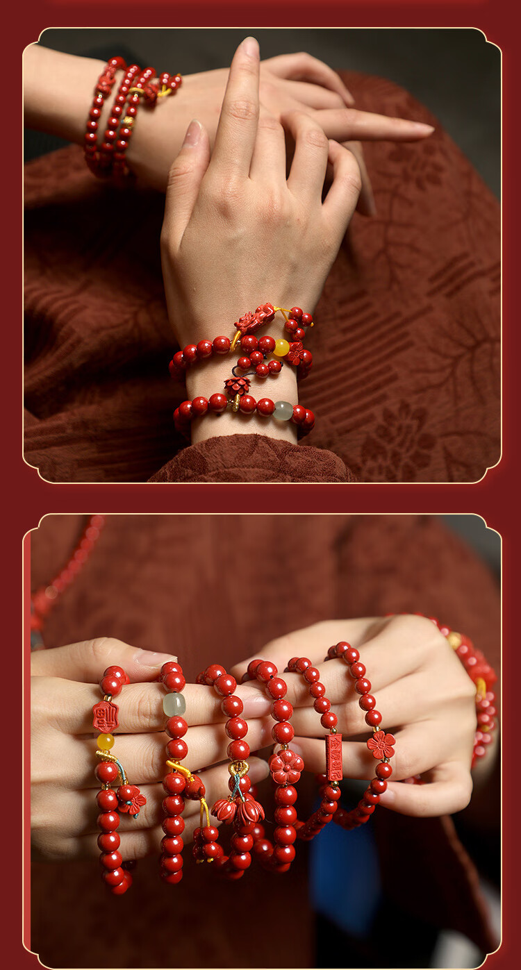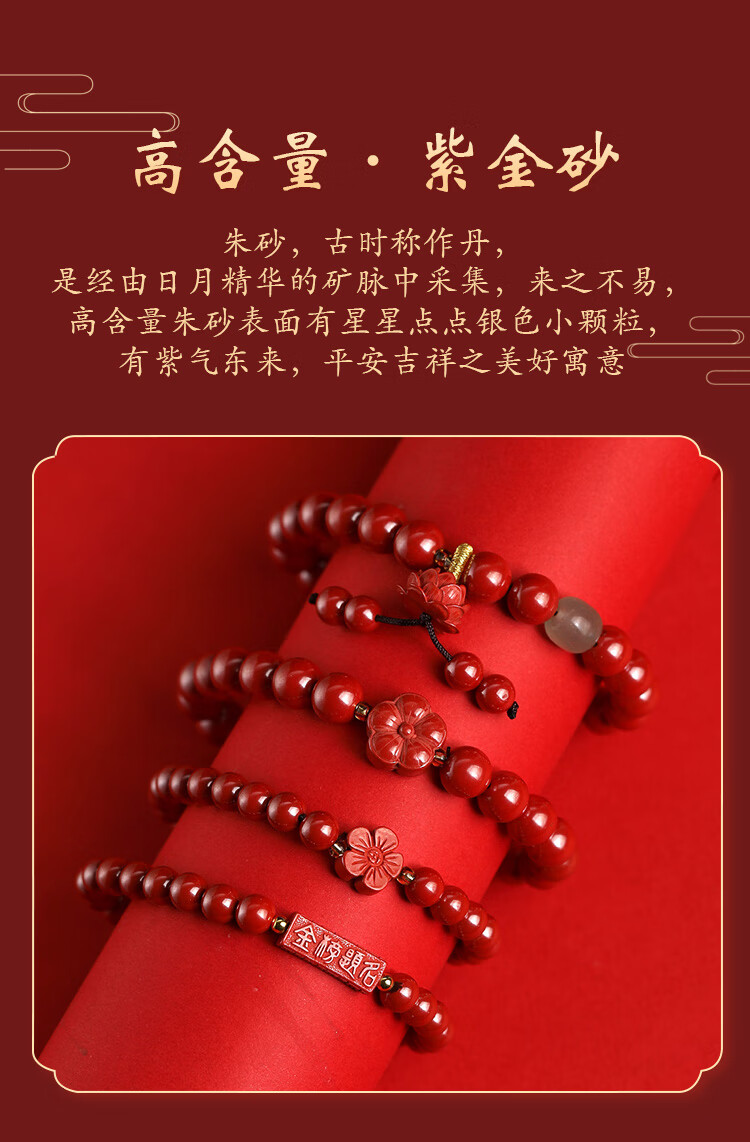 落恋原矿朱砂手链女款三圈朱砂多圈帝王砂生肖护身符手串本命年男女 6mm帝王砂三圈 步步生莲