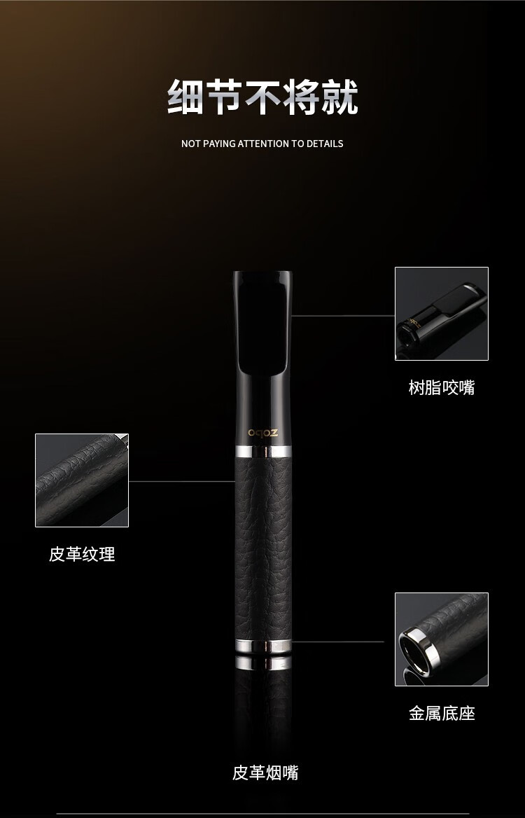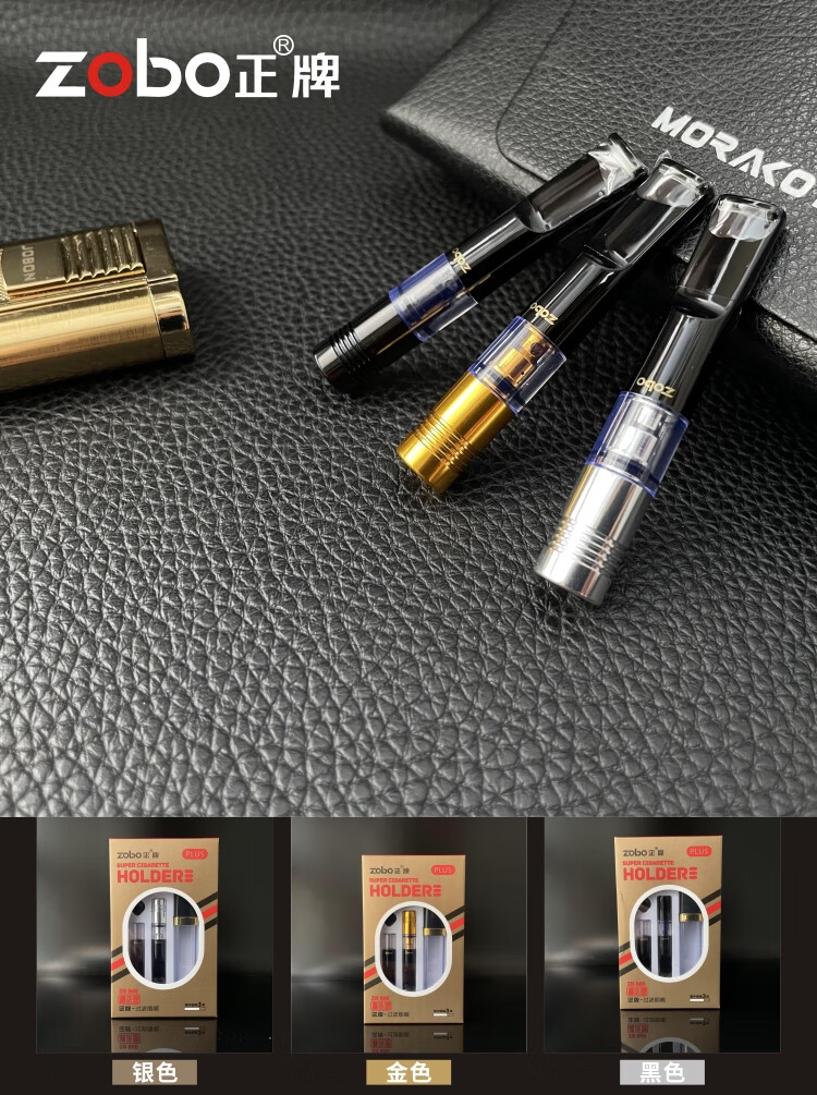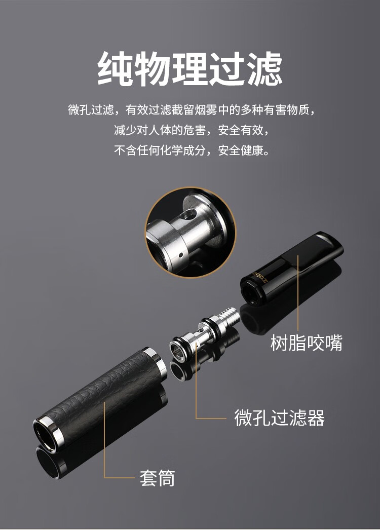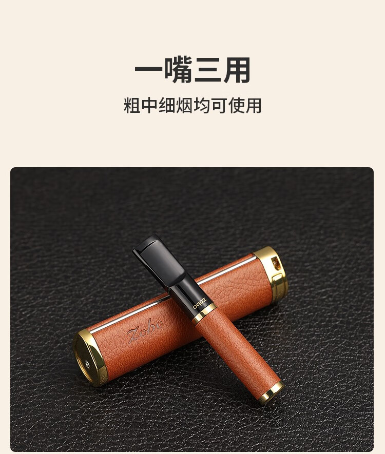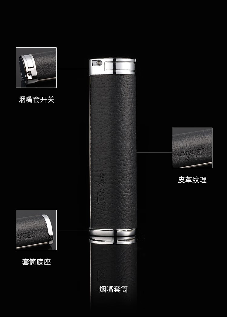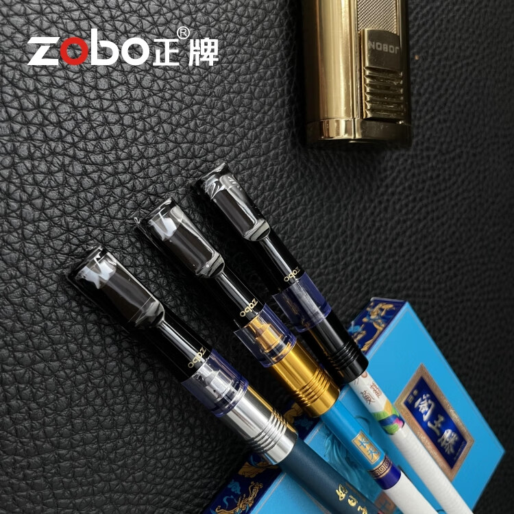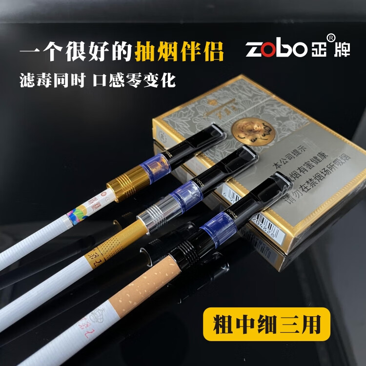 正牌zobo循环型可清洗过滤烟嘴粗中细支三用烟嘴过滤器过滤嘴礼盒套装 075黑皮纹-粗中细三用烟嘴