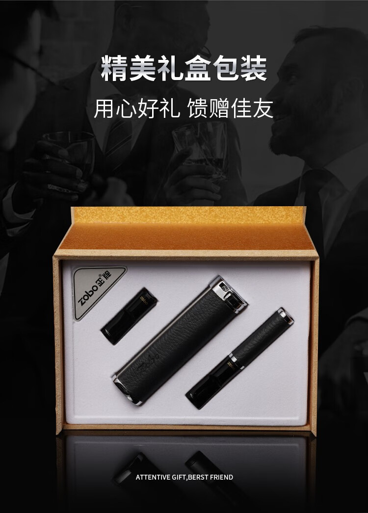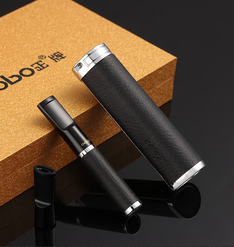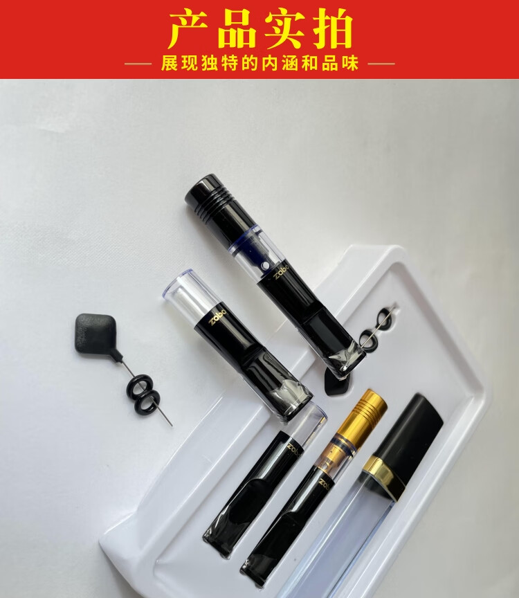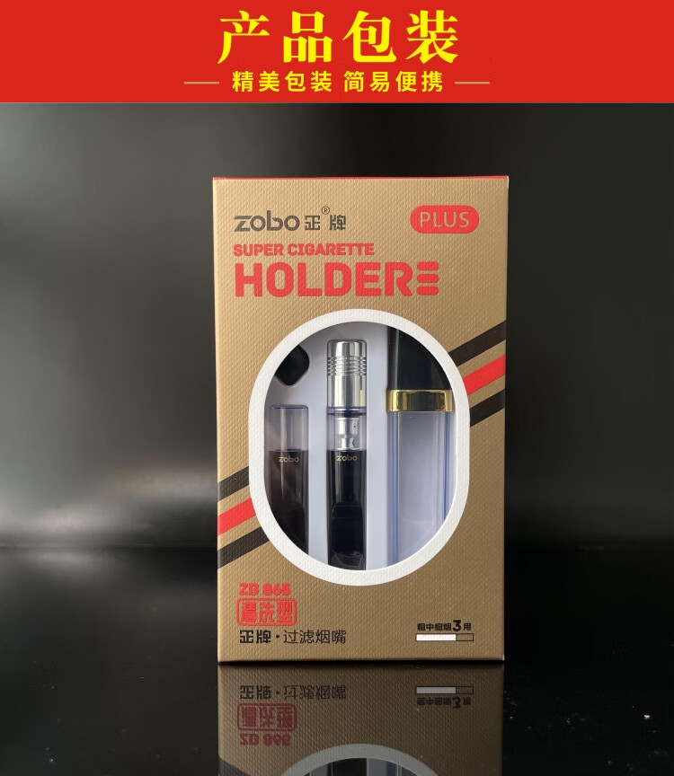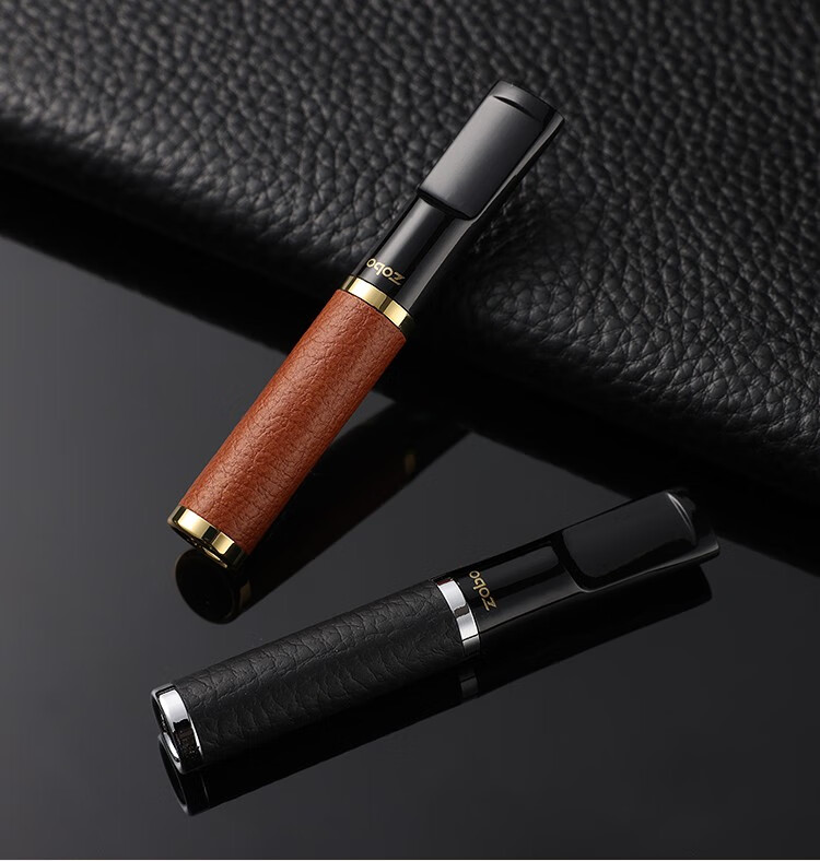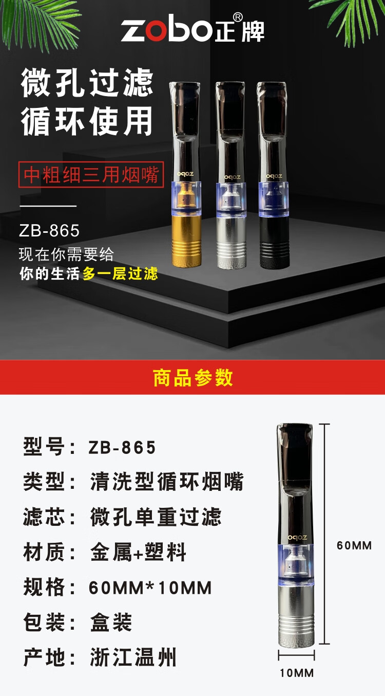 正牌zobo循环型可清洗过滤烟嘴粗中细支三用烟嘴过滤器过滤嘴礼盒套装 075黑皮纹-粗中细三用烟嘴