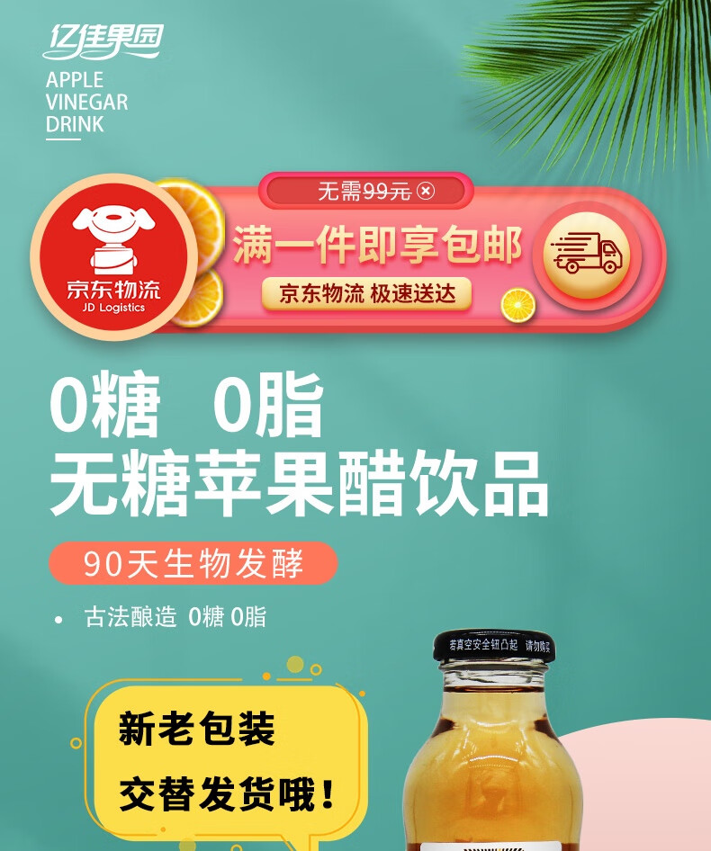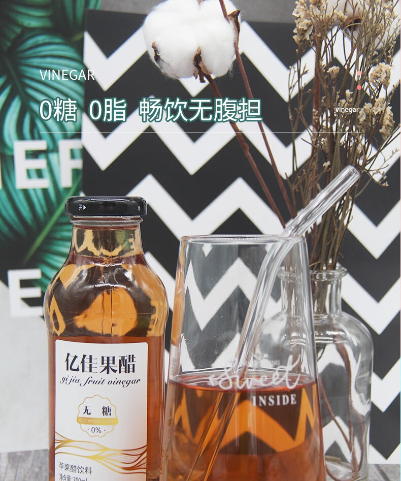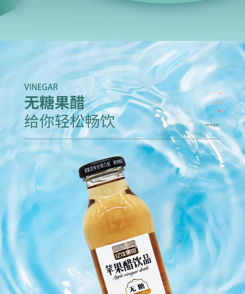 亿佳果园 苹果醋无糖饮料整箱家庭装300ml*12玻璃瓶生物发酵非勾兑