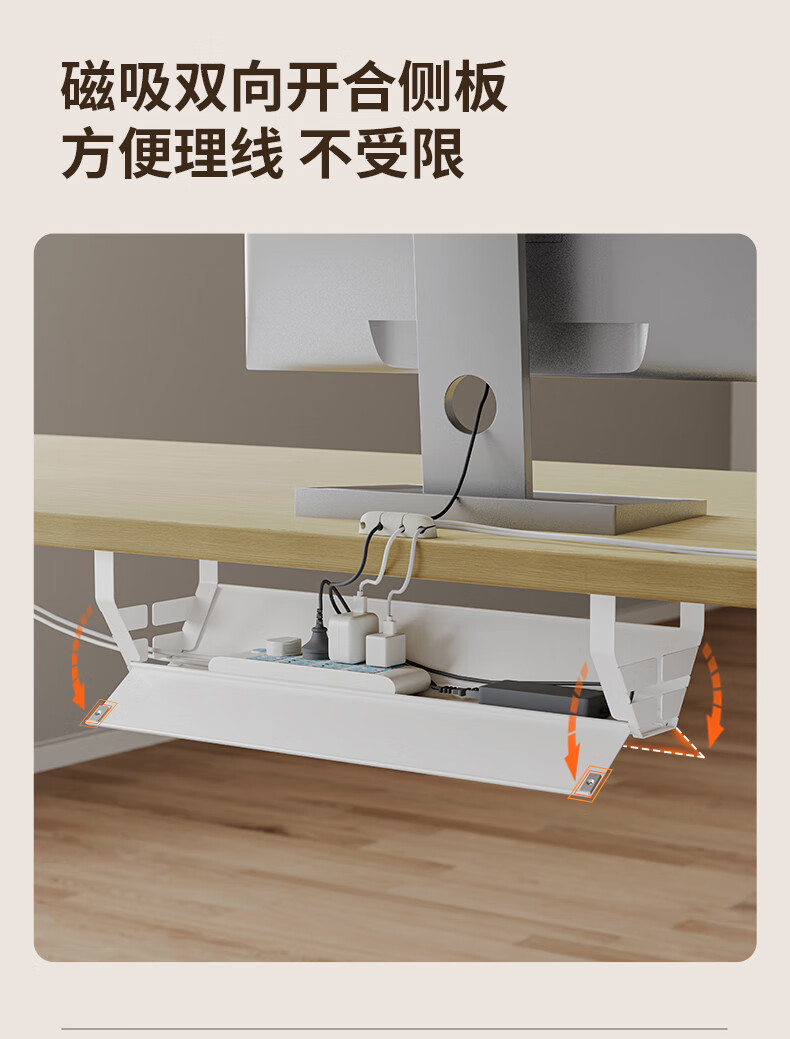 AGILESTIC桌下理线架理线器槽盒插排路由器收纳架桌面数据线电线置物架 酷黑 【45cm通用款】桌下理线盒