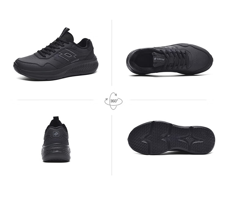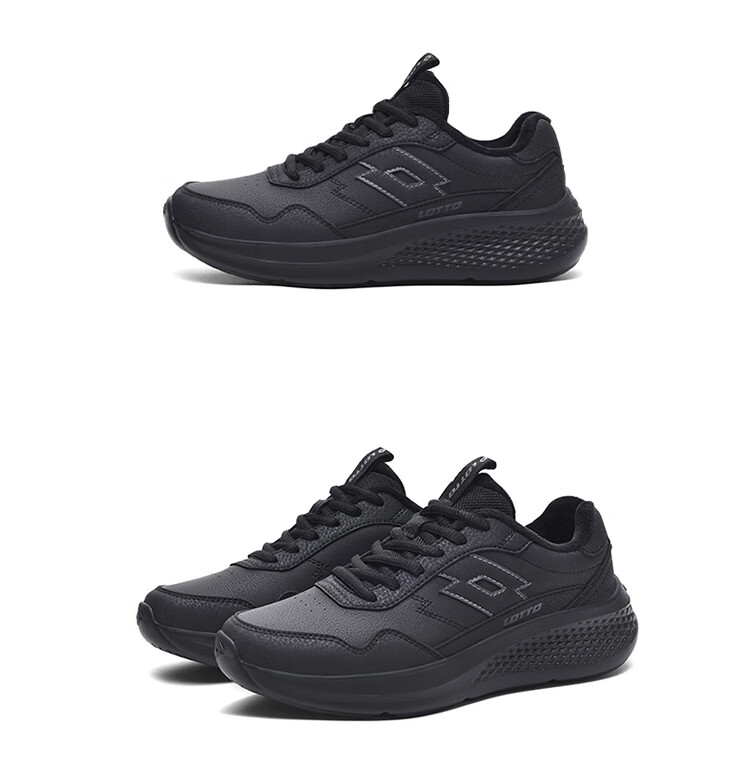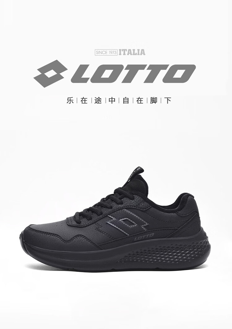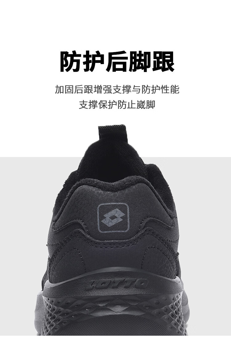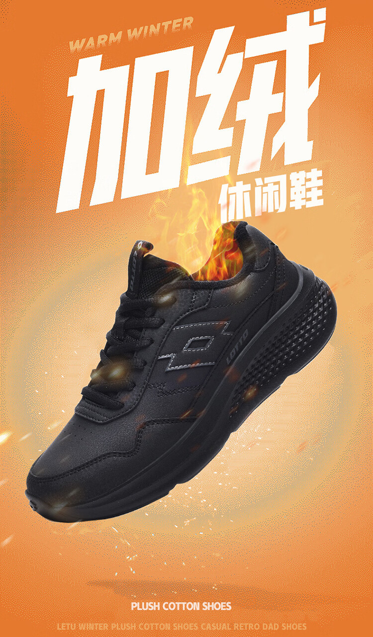 乐途(LOTTO)男鞋跑步鞋男皮面加绒保暖轻弾舒适缓震防滑户外运动休闲鞋女 黑色加绒【男女同款】 42