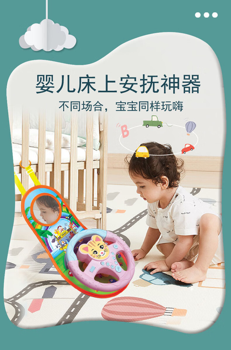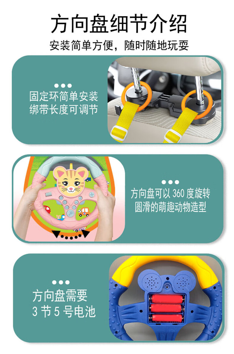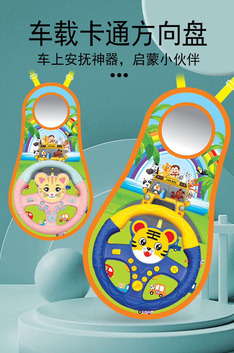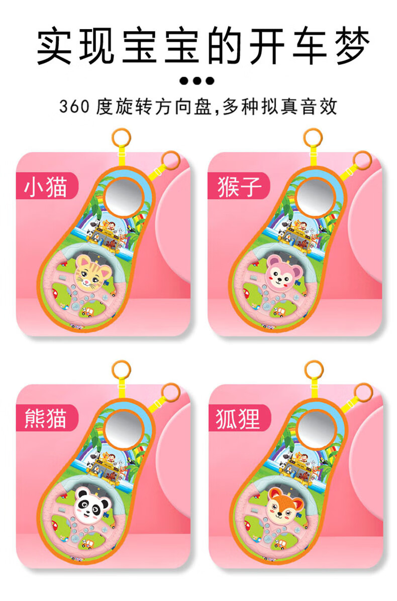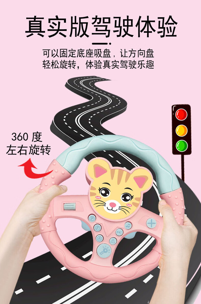 TKHE方向盘玩具 安全座椅 方向盘玩具 后座儿童方向盘副驾驶汽车 粉色卡通带挂毯【适合后座】