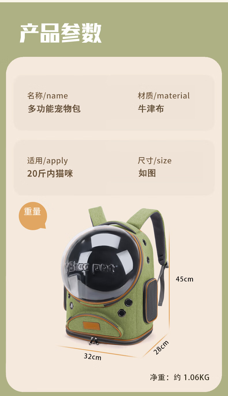 悦佰兔航空箱猫笼子猫包狗笼太空舱狗笼子外出包透气宠物包宠物书包 耐抓耐磨大容量透气(18斤内)绿色