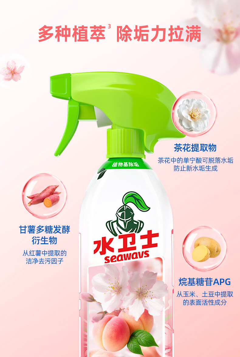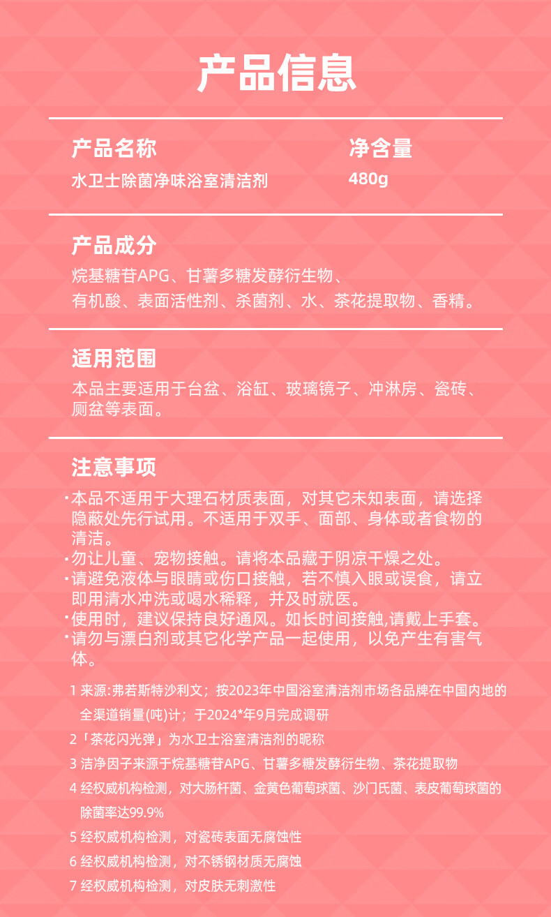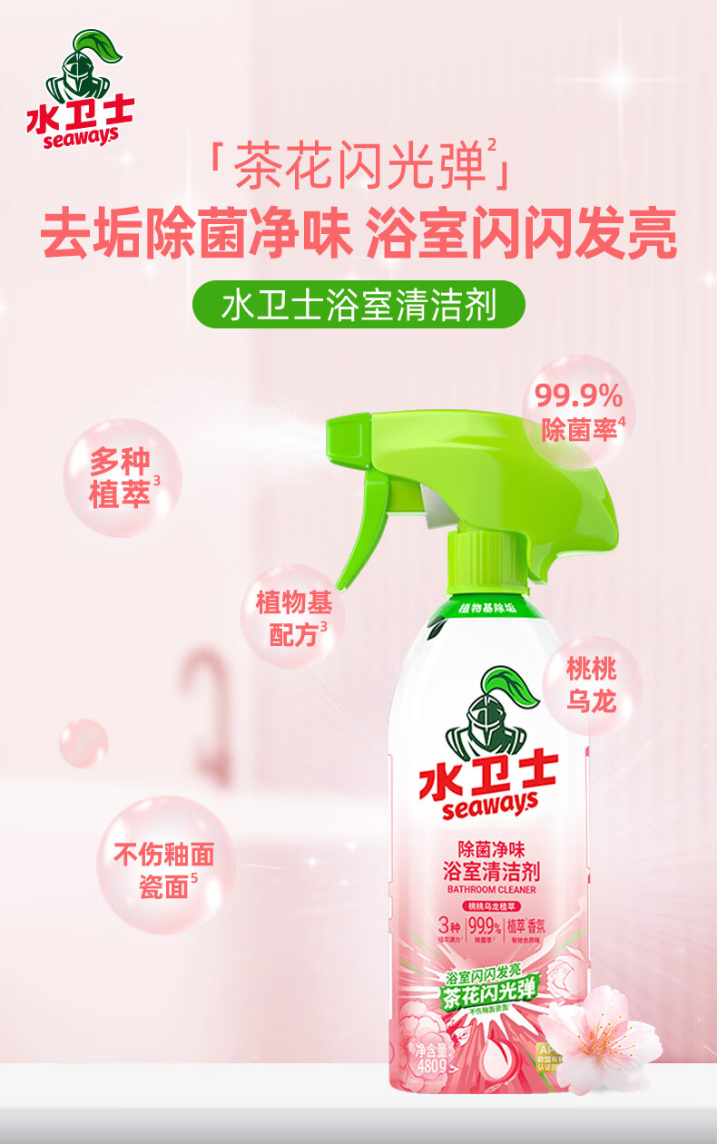 水卫士浴室清洁剂 玻璃清洁剂瓷砖浴缸水龙头花洒除水垢清洁剂除水卫仕 浴室清洁剂*500g*3瓶