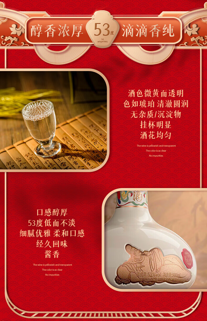 五粮浓香【五粮液出品】 福喜迎门 高度白酒 送礼宴饮 52度 500mL 2瓶 红色双瓶