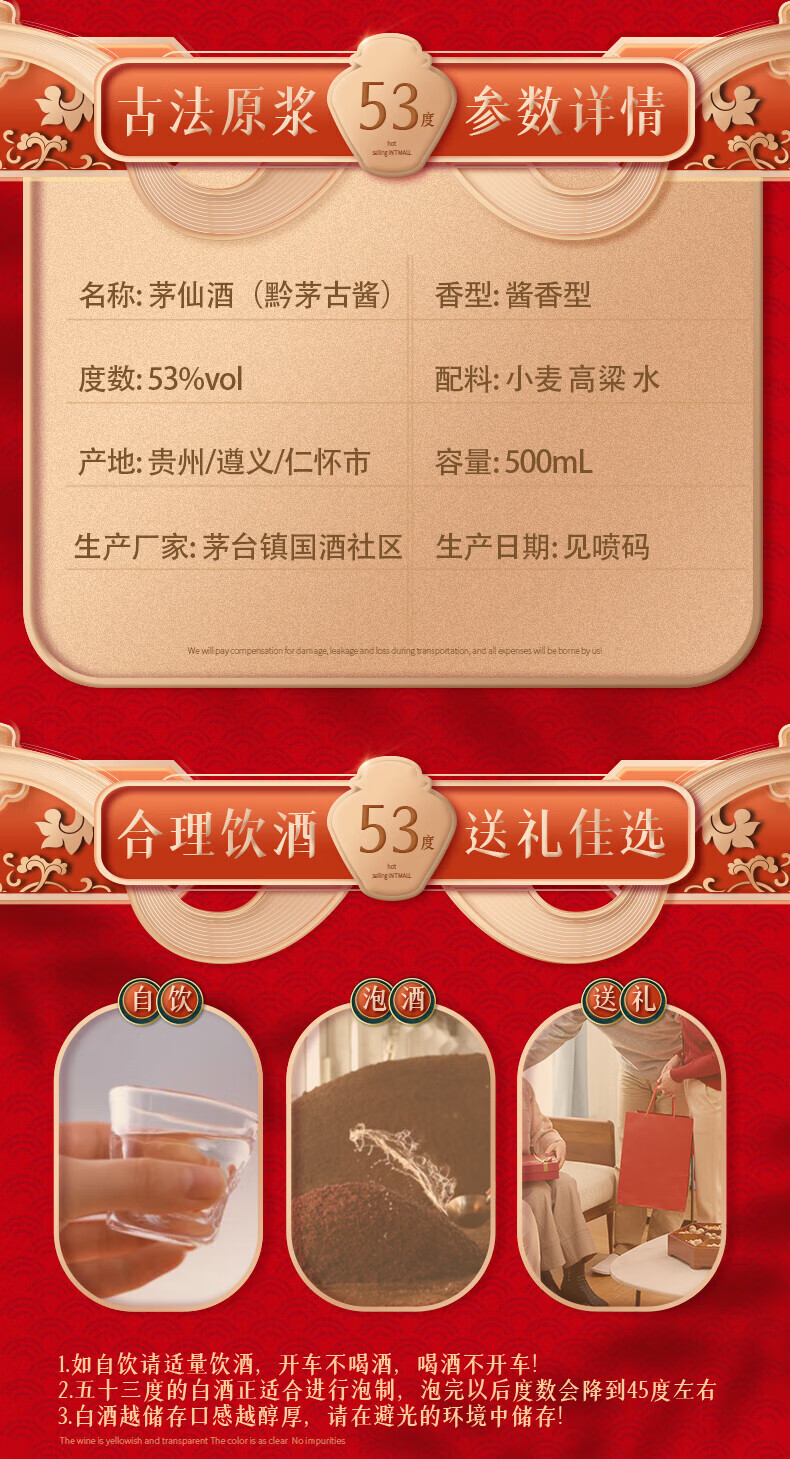 茅仙贵州茅台集团黔茅酒53度酱香型白酒 纯粮坤沙白酒 自喝送礼招待C 53度 500mL 6瓶 【茅台茅仙酒·黔茅古酱 6瓶原箱】