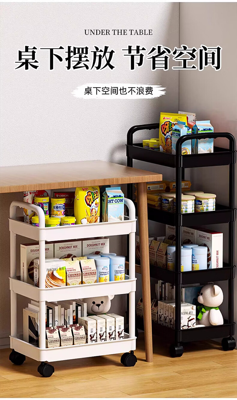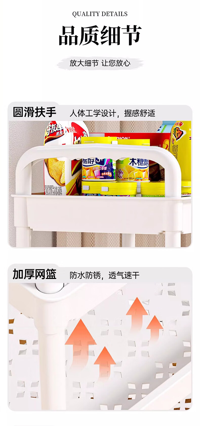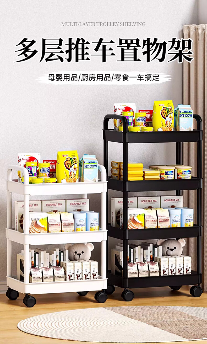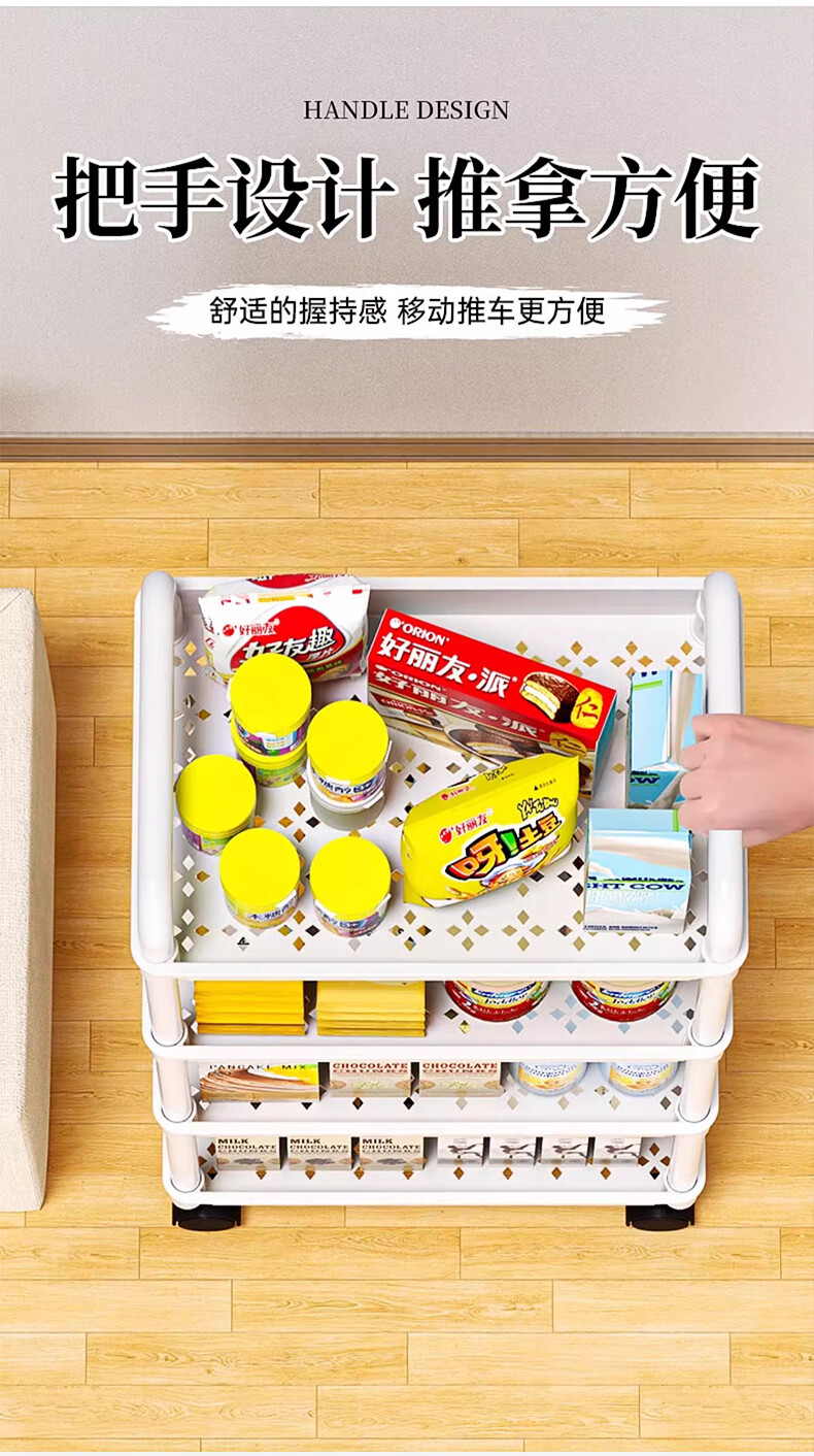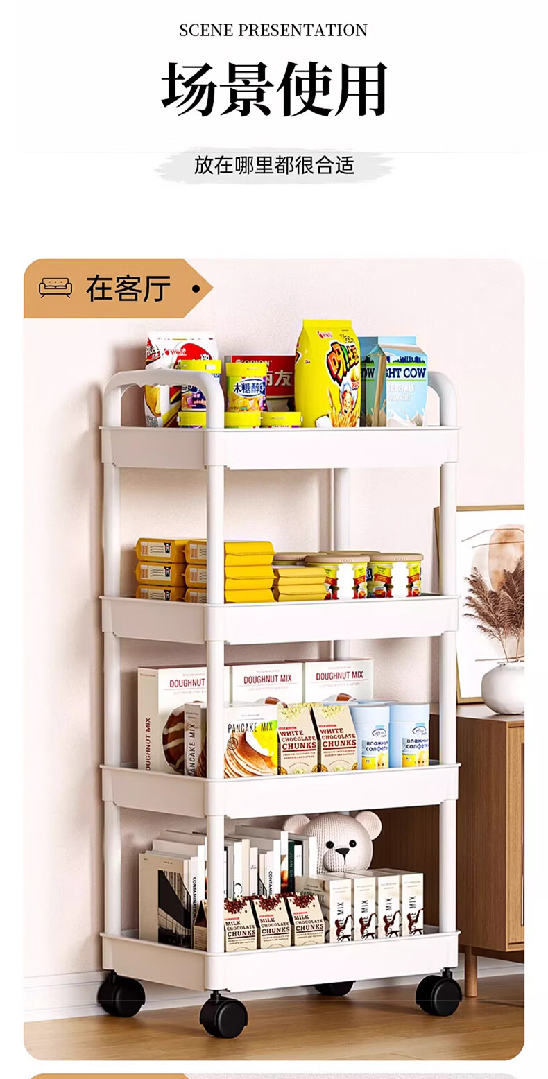 【精选百货】小推车置物架收纳用品多层落地厨房置物架客厅零食可 小推车白色三层